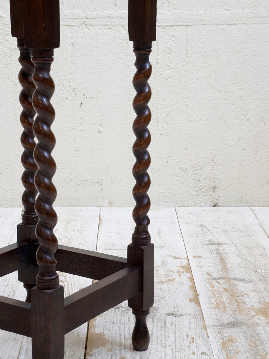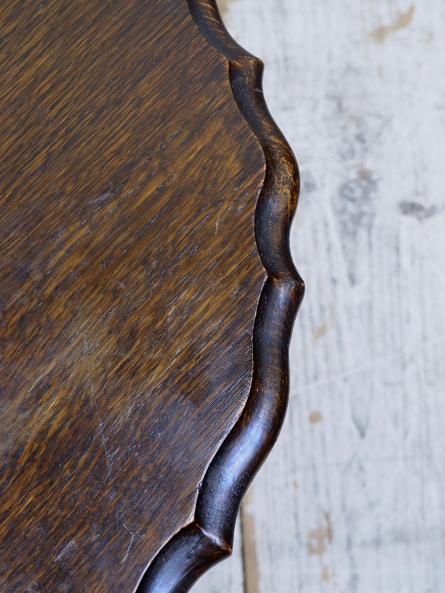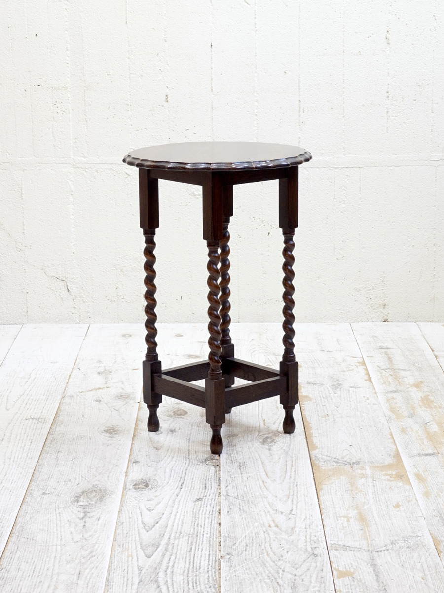 推定1930年代、イギリス製のアンティークオークオケージョナルテーブルです。オケージョナルとは「必要な時につかう」という意味で、その名の通りちょっとしたスペースで使うことができるよう軽くて持ち運びがしやすい小さめのテーブルです。高さがあり花台やサイドテーブルとしてなど様々な場所でご使用いただけます。日本の住まいにも取り入れやすくおすすめです。その他サイドテーブルはこちらから。