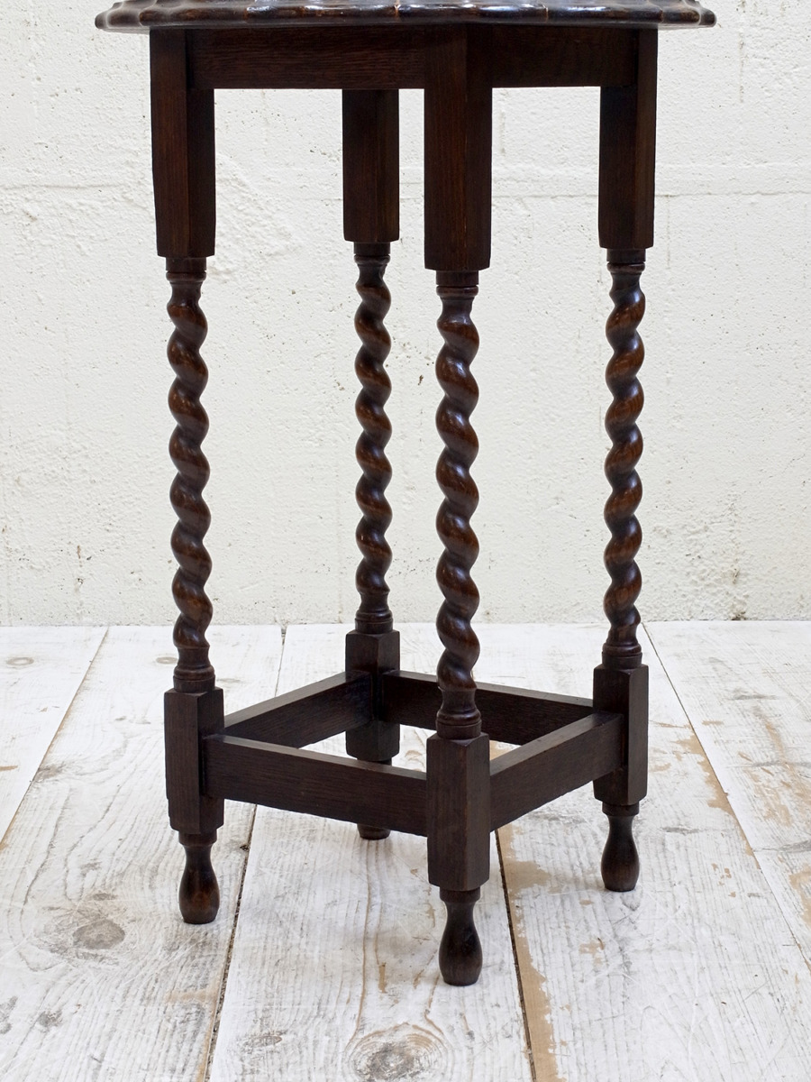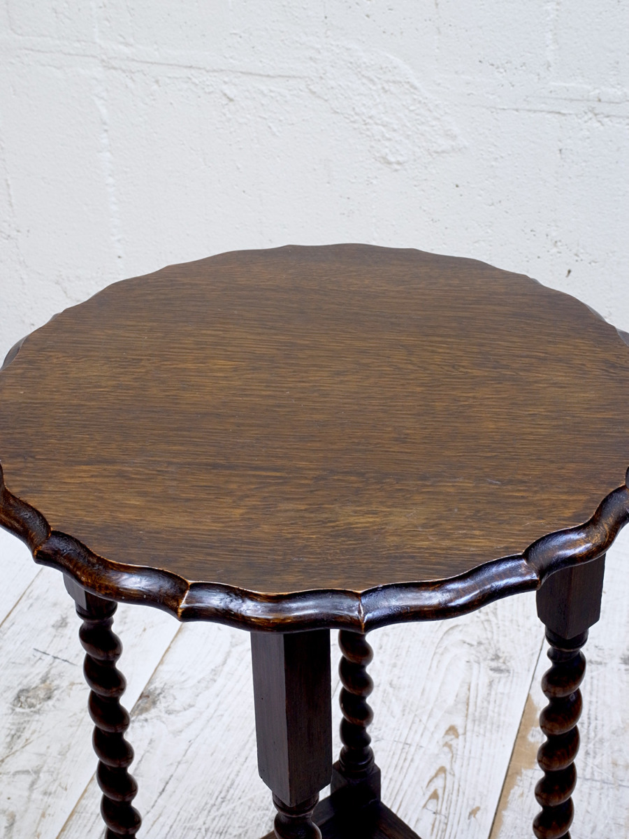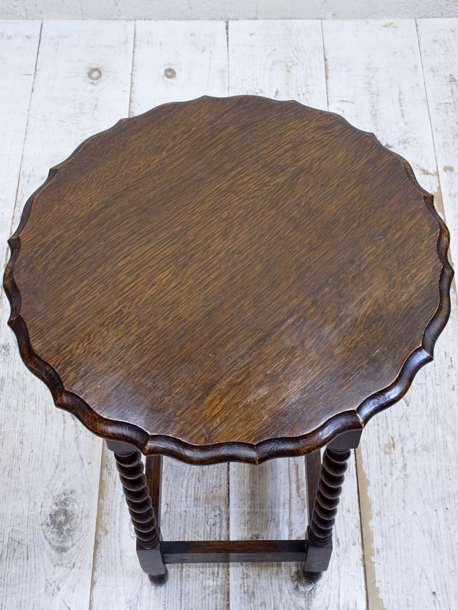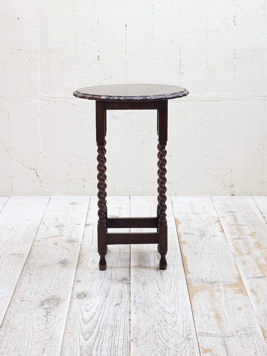 推定1930年代、イギリス製のアンティークオークオケージョナルテーブルです。オケージョナルとは「必要な時につかう」という意味で、その名の通りちょっとしたスペースで使うことができるよう軽くて持ち運びがしやすい小さめのテーブルです。高さがあり花台やサイドテーブルとしてなど様々な場所でご使用いただけます。日本の住まいにも取り入れやすくおすすめです。その他サイドテーブルはこちらから。