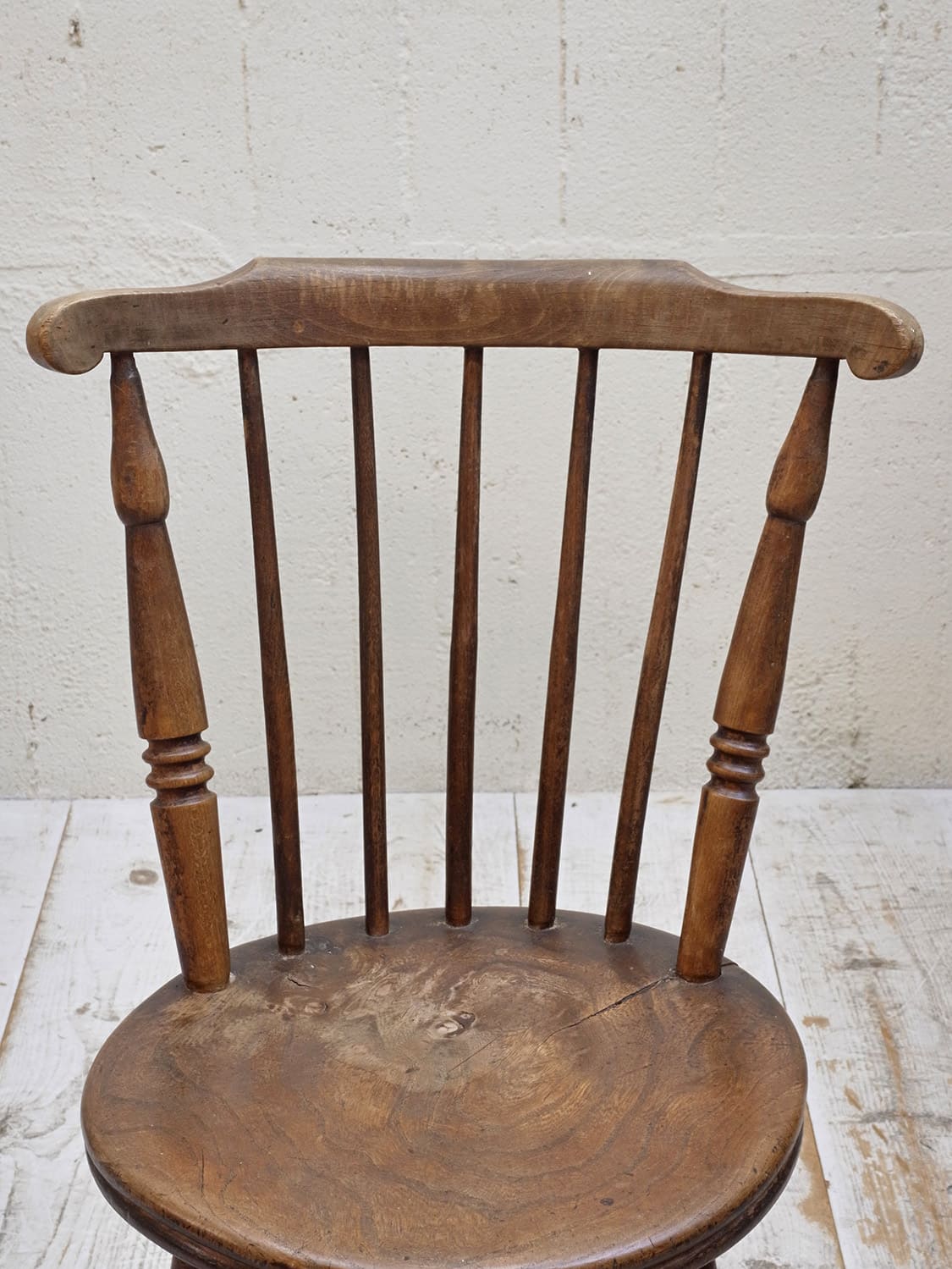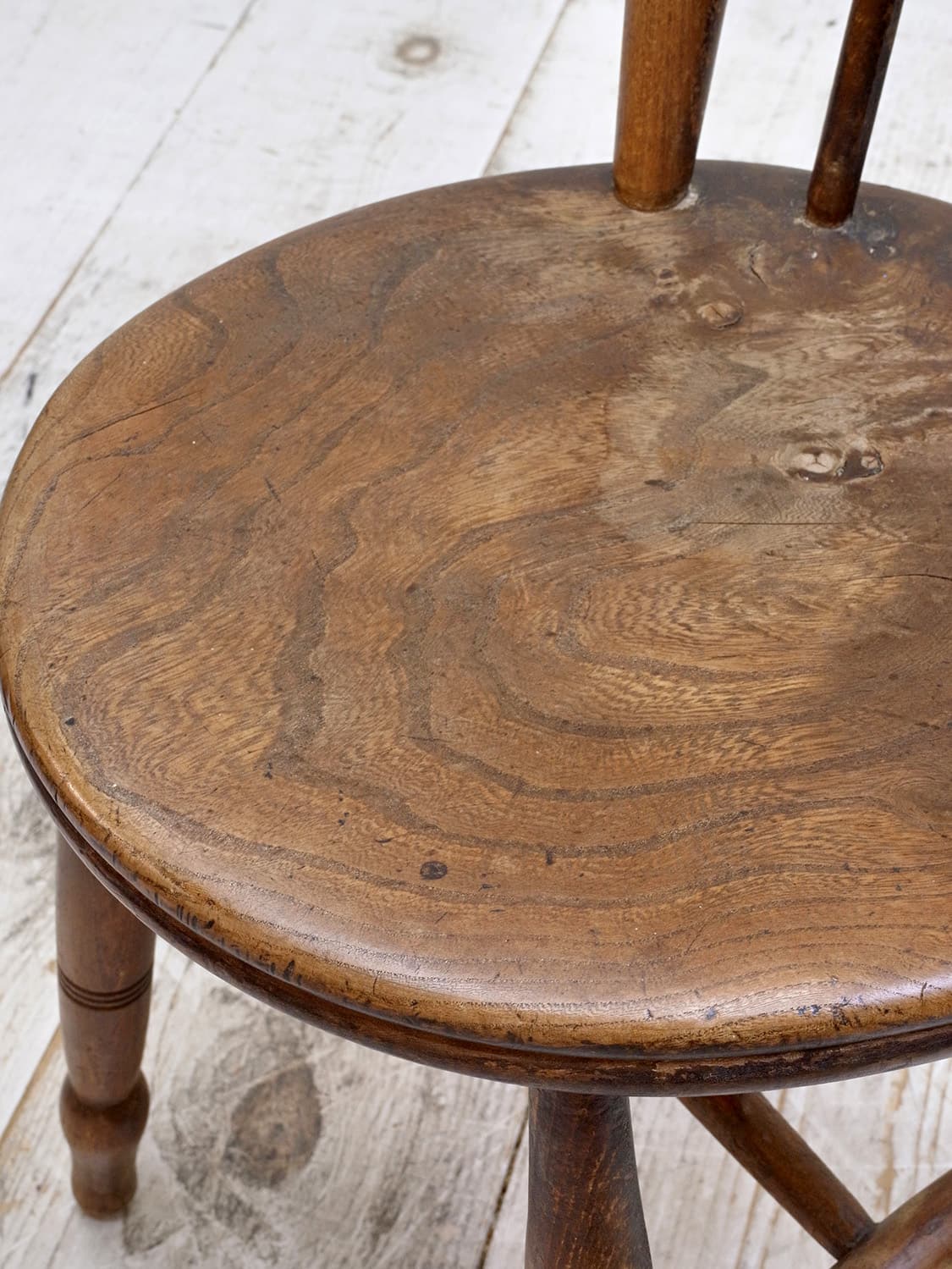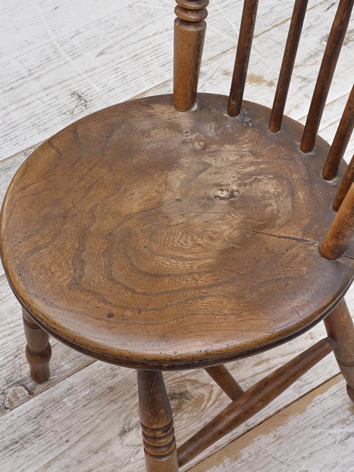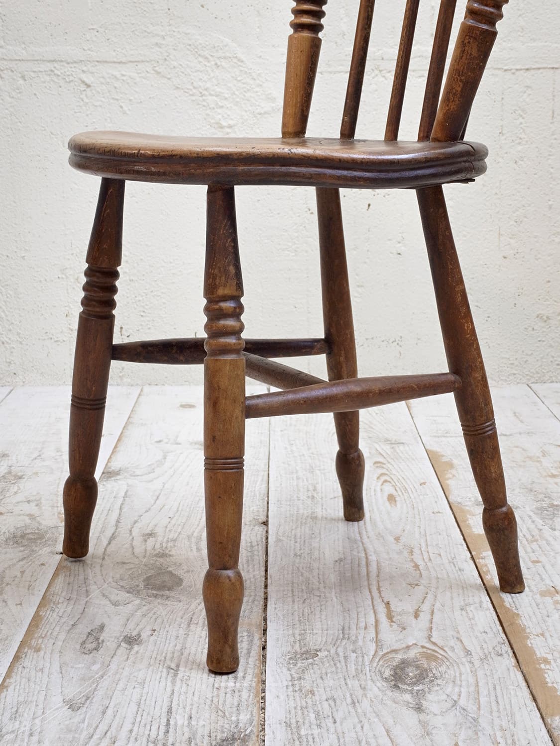 推定1930年代、イギリス製のキッチンチェアです。キッチンチェアとは文字通りキッチンで使う作業椅子のことでイギリスの農家(ファームハウス)や一般家庭で使われていました。こちらの椅子は通称ペニーチェアと呼ばれ座面が丸いのが特徴です。座面までの高さが高い場合、脚をカットすることもできます(お届け前でしたら無料にて承ります)。座面までの高さは45.5cmです。その他キッチンチェアの一覧はこちらから。
