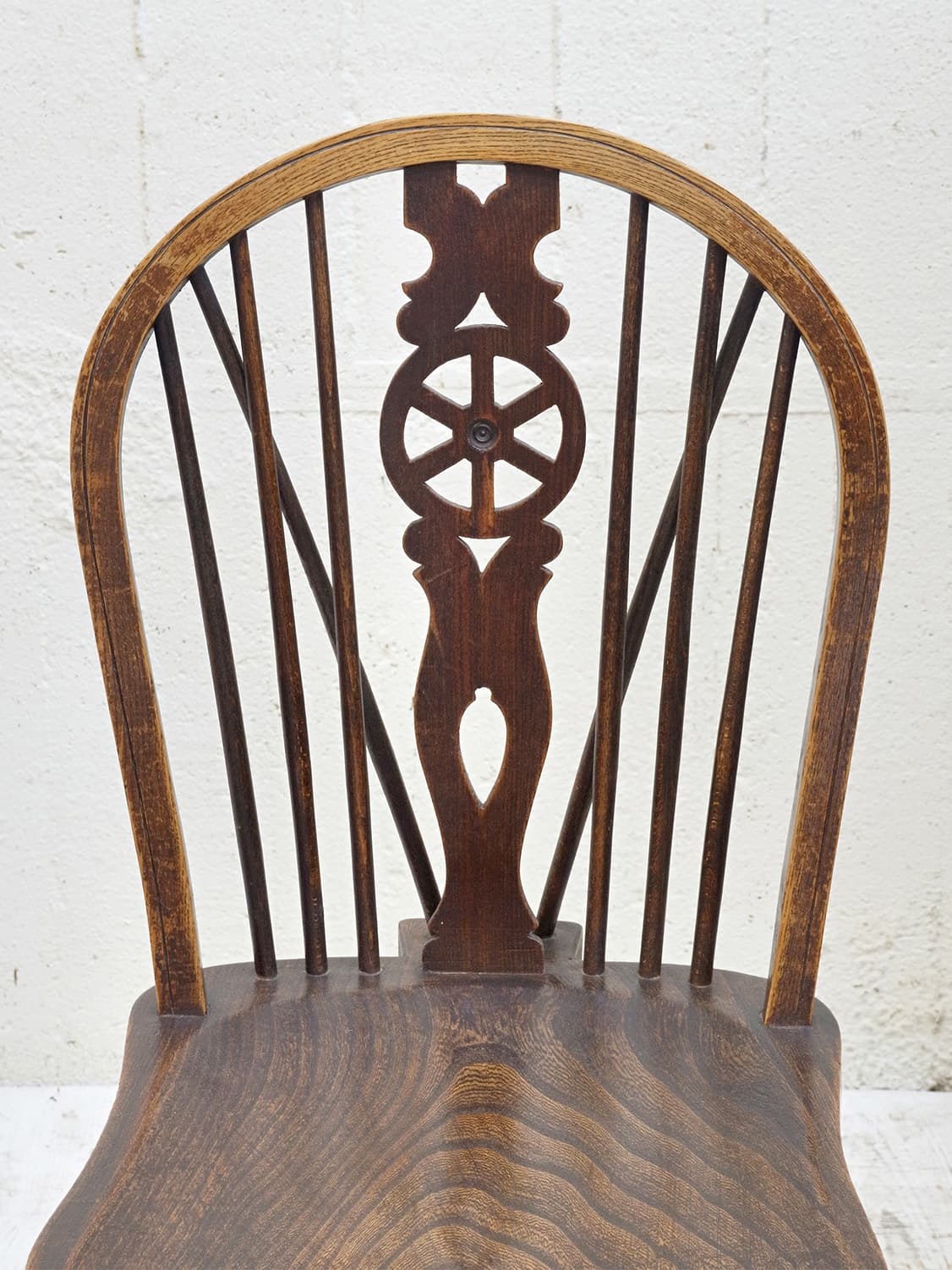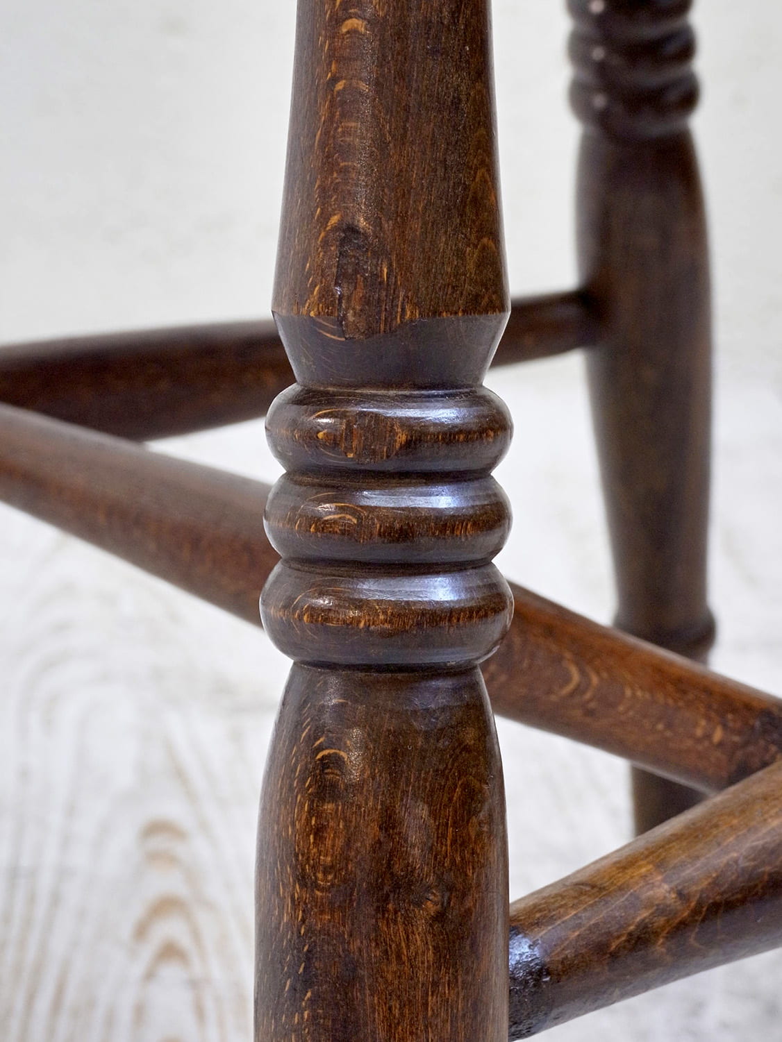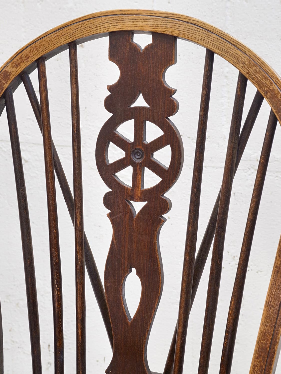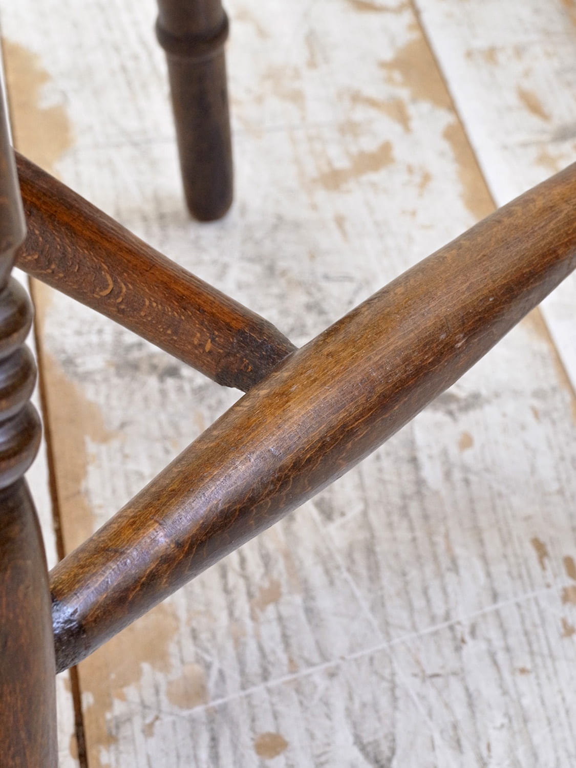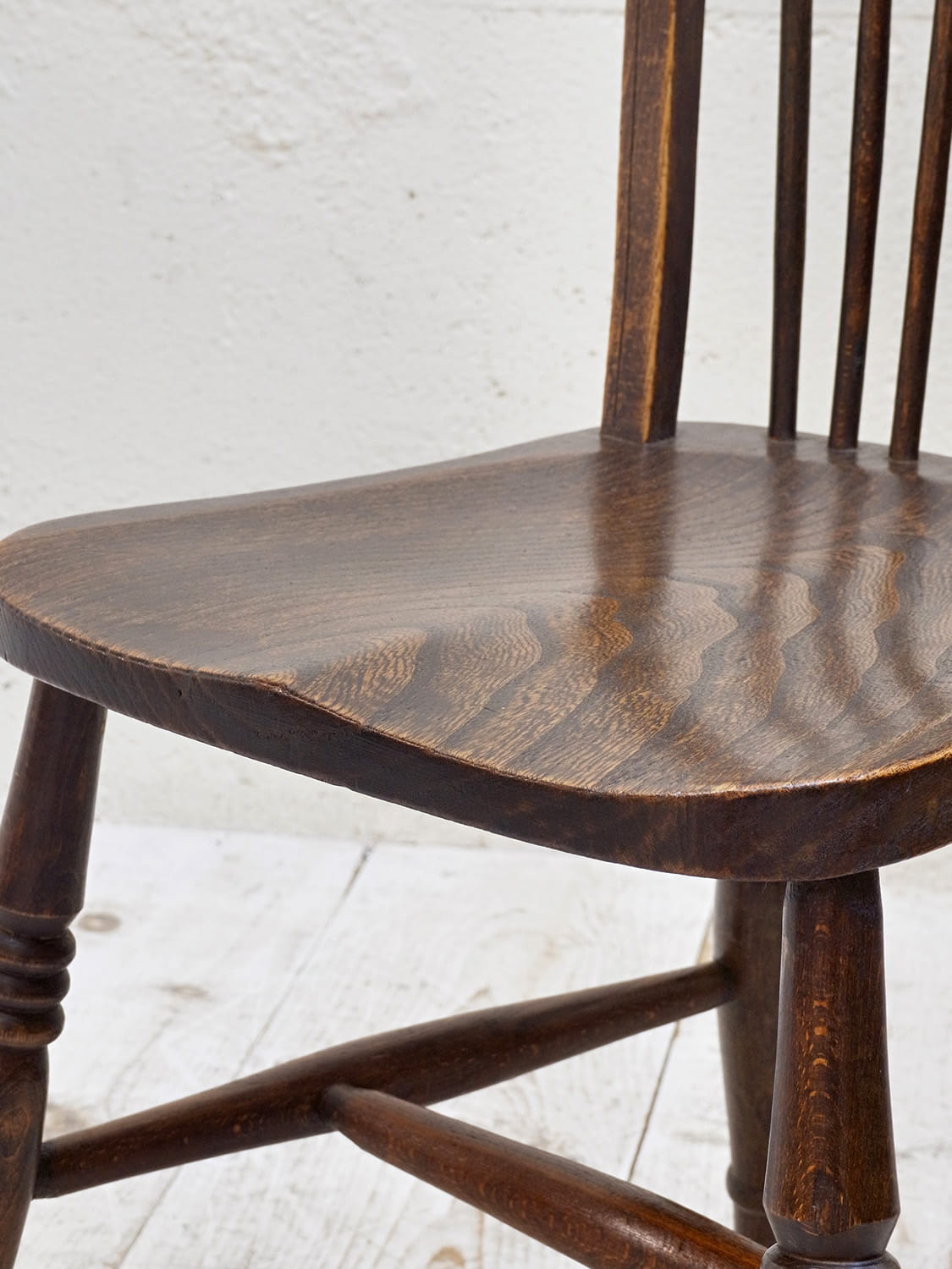 推定1930年代、イギリス製のホイールバックチェアです。ホイールバックチェアとは、背もたれにホイール(車輪)がデザインされた椅子でイギリスではポピュラーなスタイルです。少しづつディティールが違うためそれぞれに表情があり、愛着の湧く1脚をみつける楽しみもあります。こちらの椅子は全体的に作りが良く、座刳りもしっかりあり、座面の表情も素敵です。座面までの高さは45cmです。その他ホイールバックチェアはこちらから。