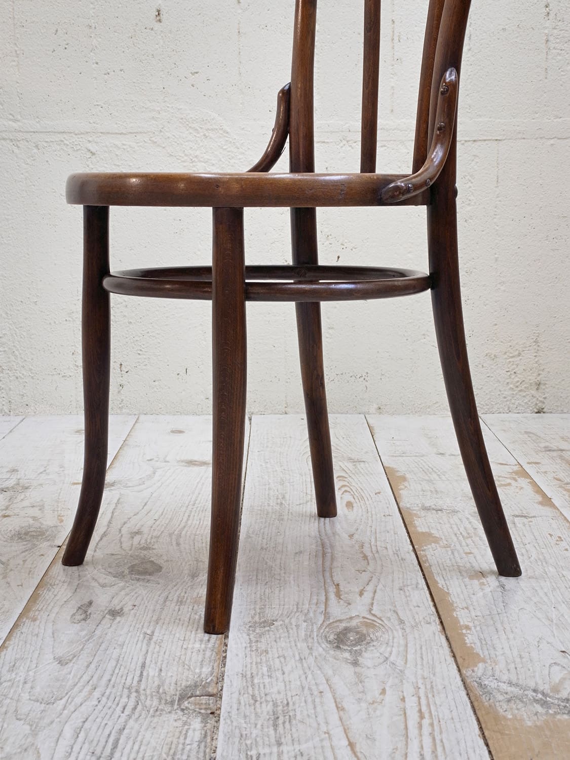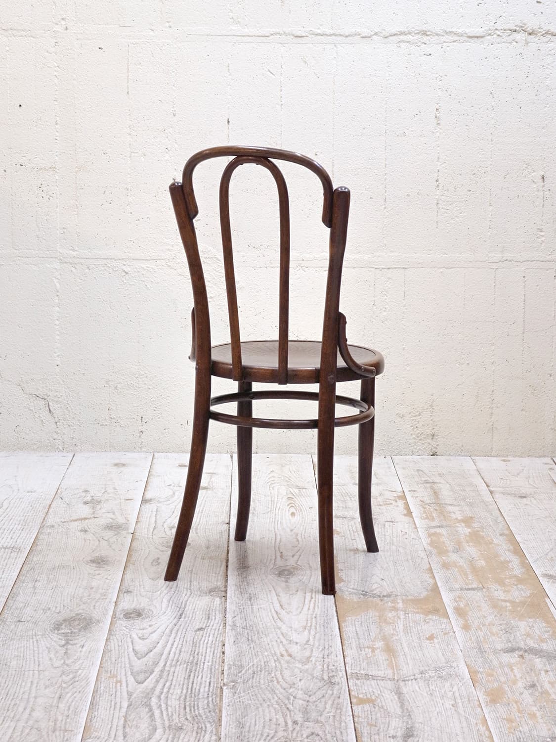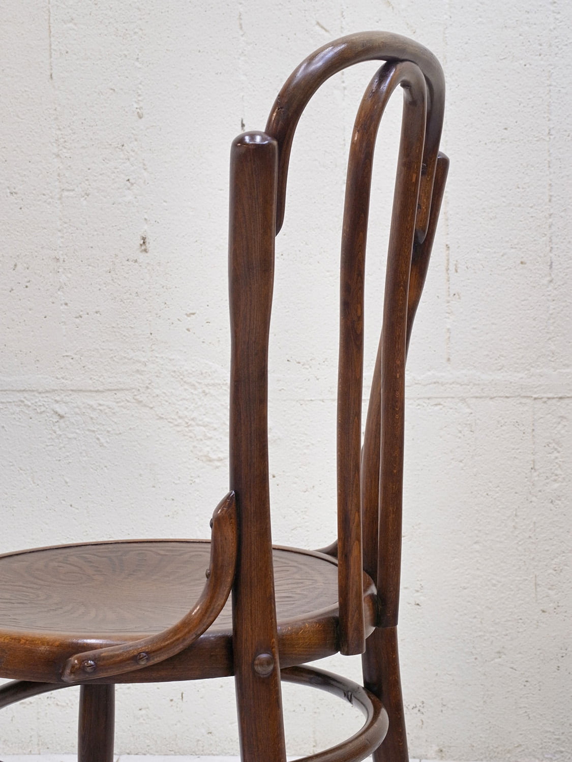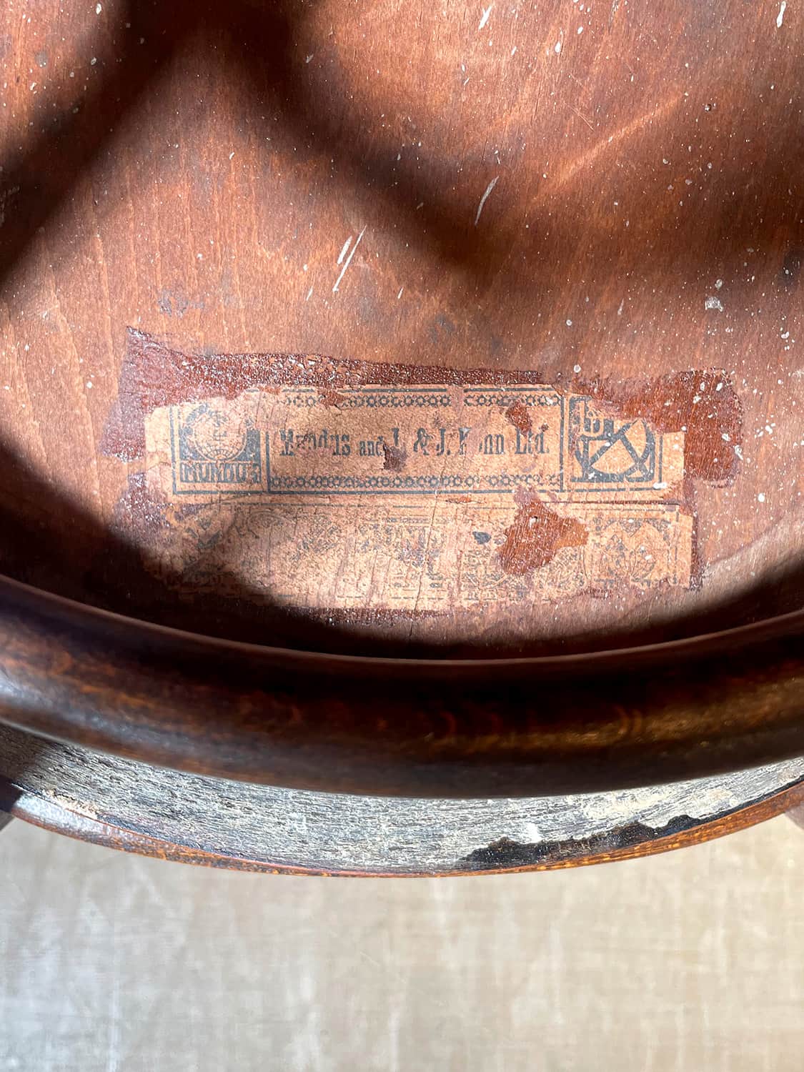 推定1930年代、アンティークベントウッドチェアです。ベントウッドチェアとは蒸気で柔らかくした木材を型にはめて曲げ木加工されたチェアで美しい曲線デザインを楽しむことができます。片手で持ちあげられるほど軽く、持ち運びにも便利です。弊社の修理部門でもメンテナンスをしながら長く使用いただいているアイテムのひとつです。ベントウッドチェアは座面や背もたれのデザインの種類も多く、お気に入りの一点を見つけるのも楽しいです。座面までの高さは47cmです。こちらの椅子はメンテナンス済みです。ベントウッドチェアの一覧はこちらから。
