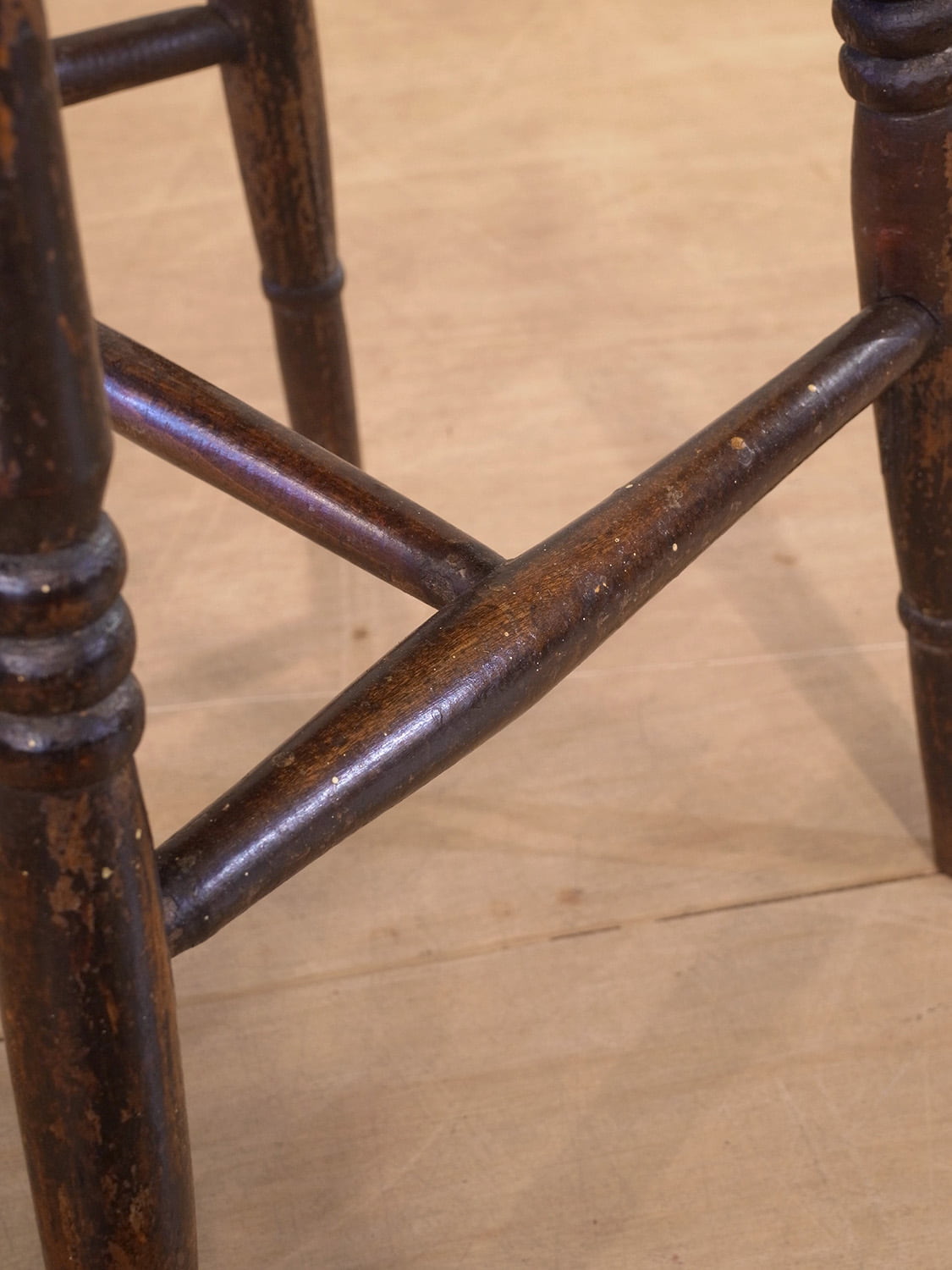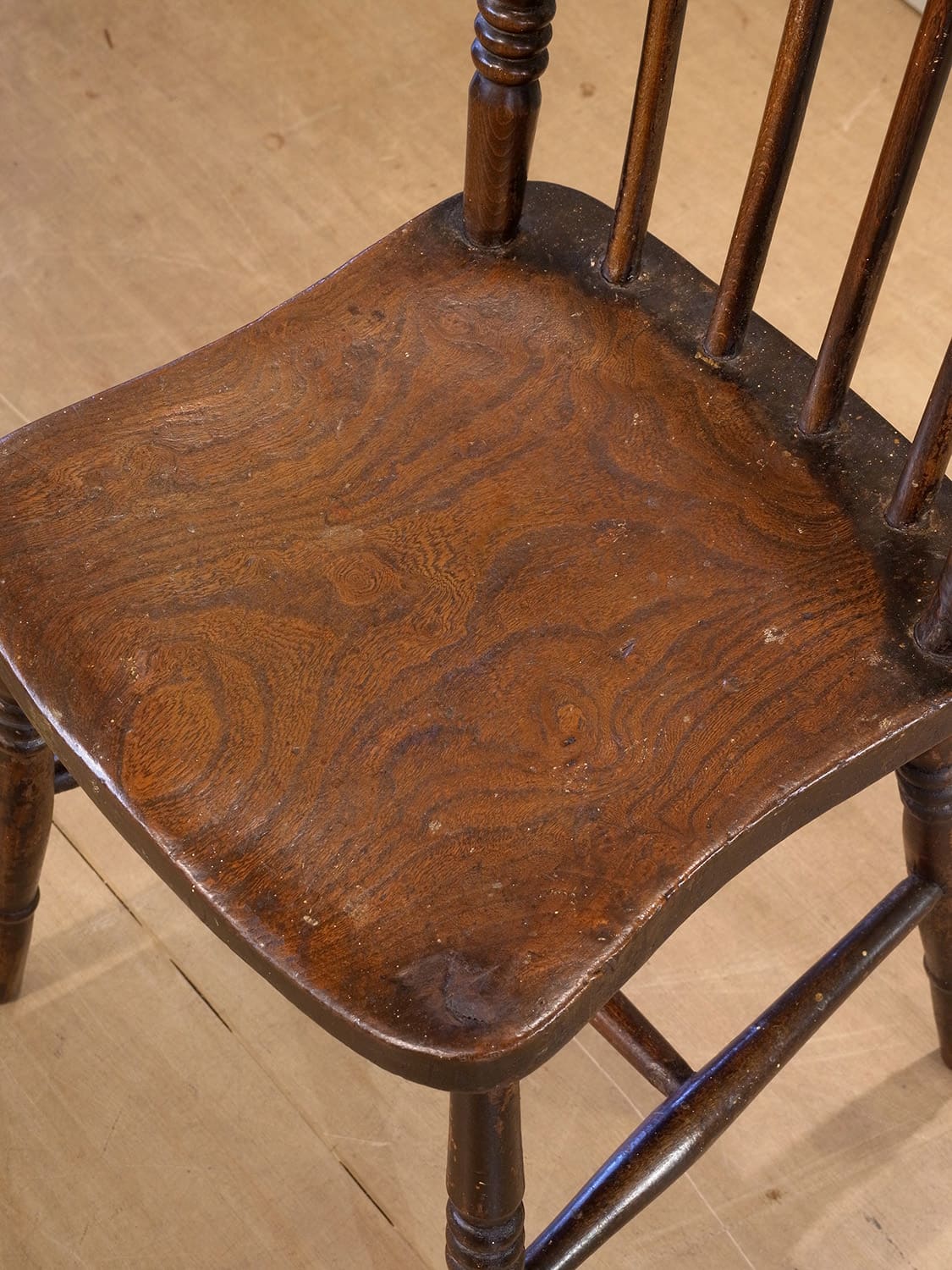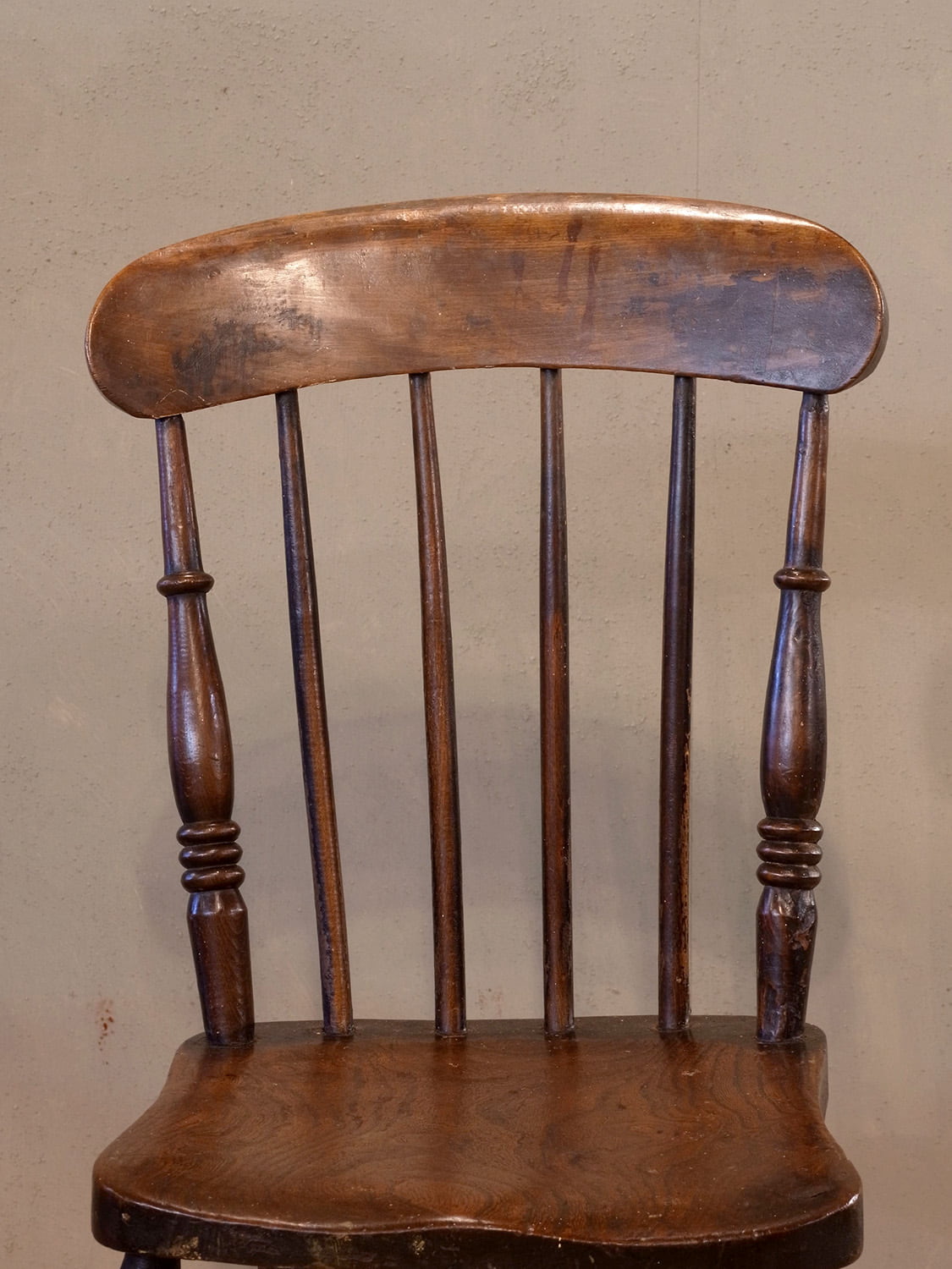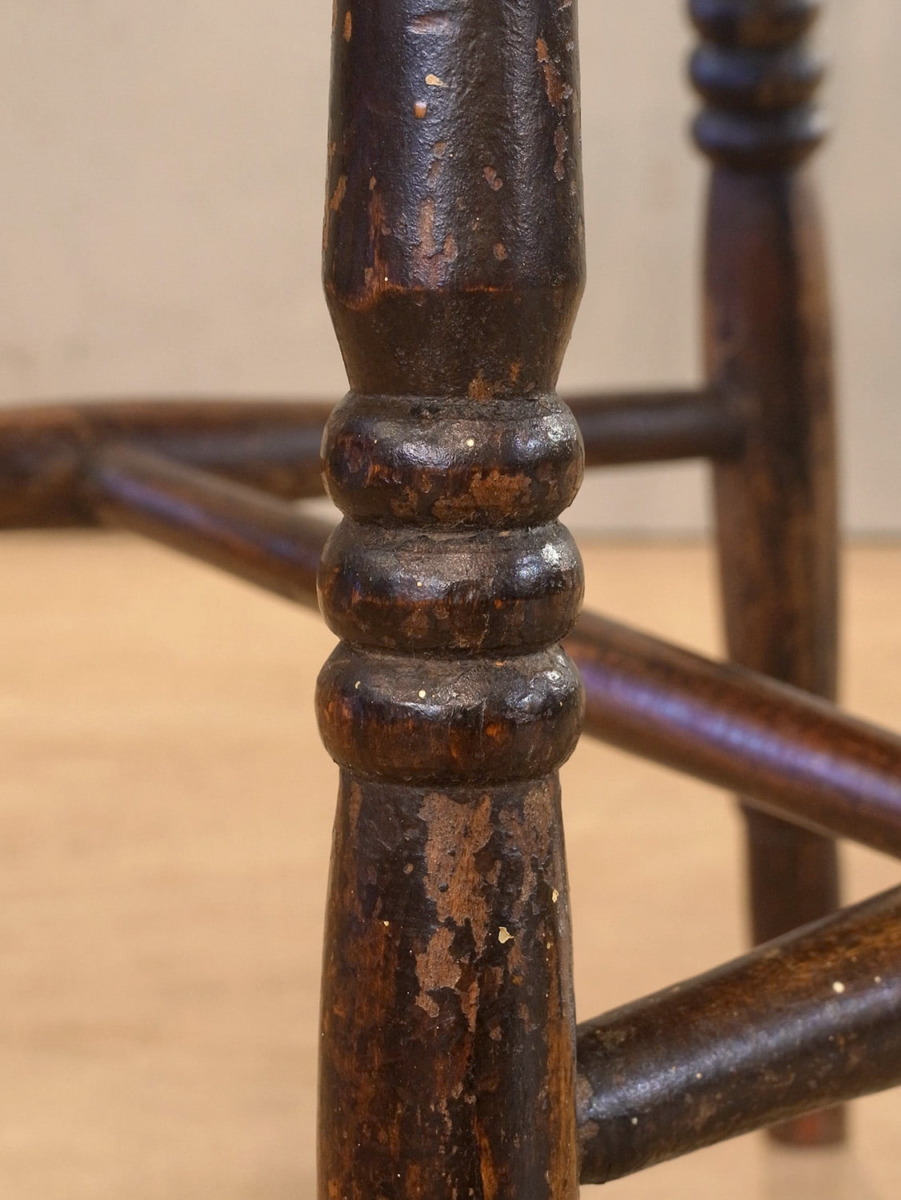 推定1930年代、イギリス製のアンティークキッチンチェアです。キッチンチェアとは文字通りキッチンで使う作業椅子のことでイギリスの農家(ファームハウス)や一般家庭で使われていました。スタンダードなキッチンチェアなので、揃ったデザインに統一できるため日本ではダイニングチェアとして人気があります。座面までの高さは44.5cmです。こちらの椅子はメンテナンス済みです。その他キッチンチェアの一覧はこちらから。