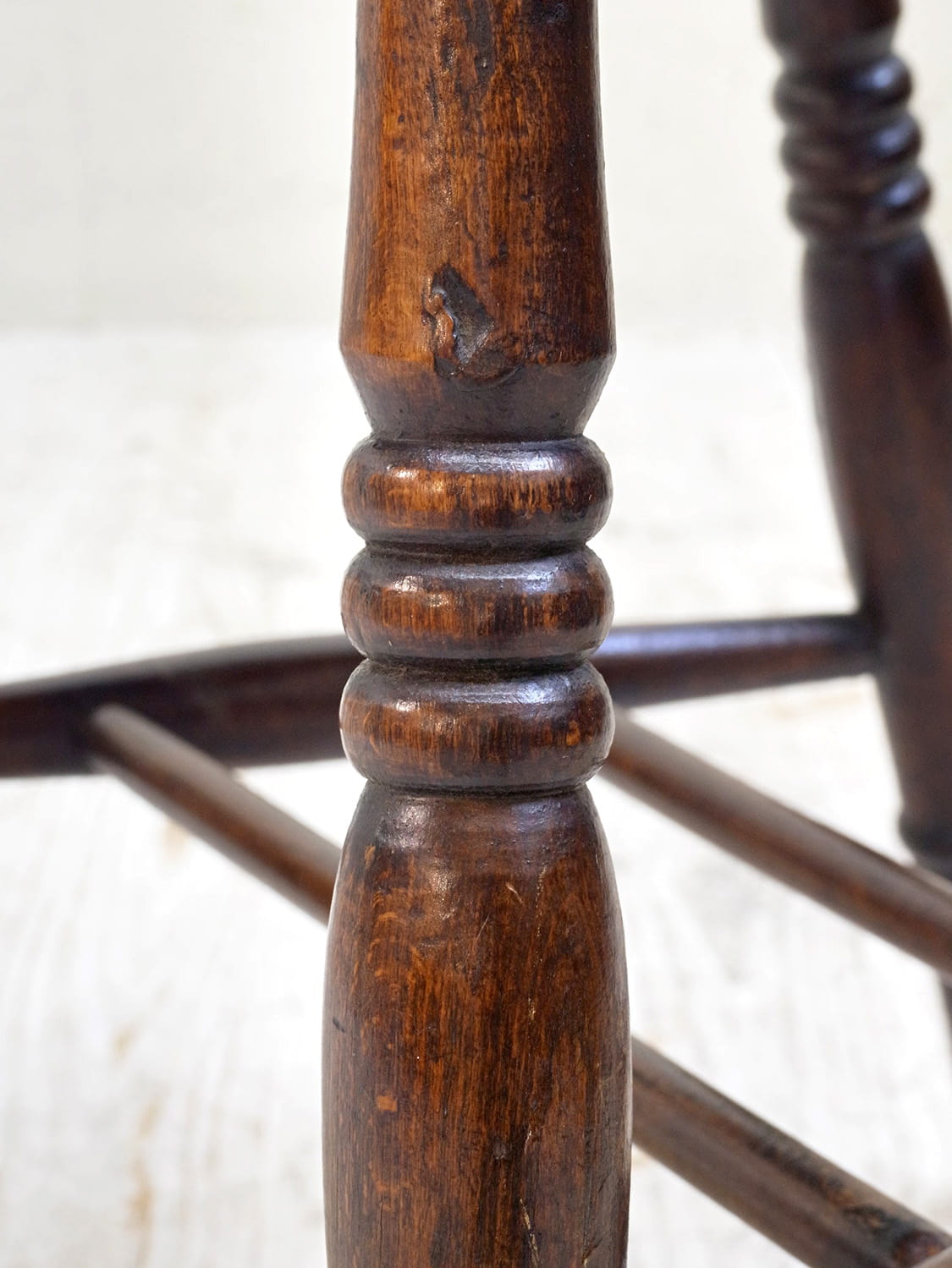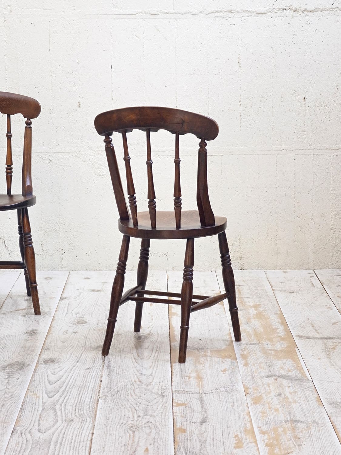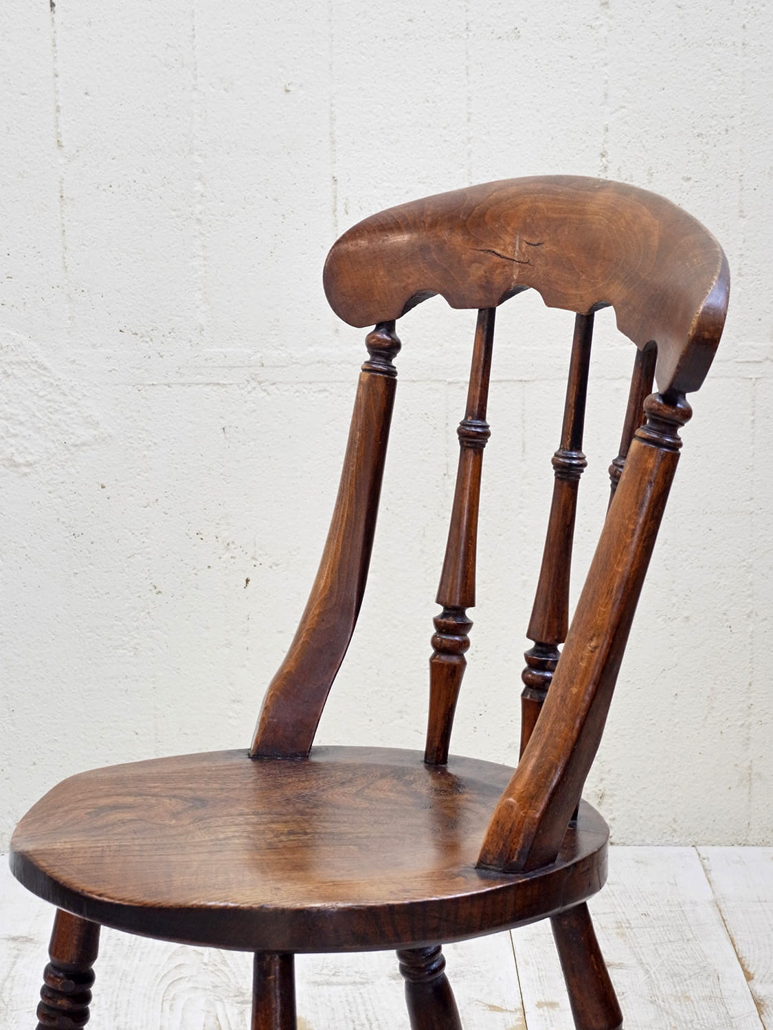 推定1900年代初頭、イギリス製のキッチンチェアです。キッチンチェアとは文字通りキッチンで使う作業椅子のことでイギリスの農家(ファームハウス)や一般家庭で使われていました。こちらの椅子のデザインはシンプルですがなかなか同じようなものはなく、珍しいです。古く、長年使用されていたようで所々修理しながら大切に使われていたようです。その他キッチンチェアの一覧はこちらから。座面までの高さは45.5cmです。撮影は右(c)の椅子をしています。価格は1脚の値段です。d:SOLD