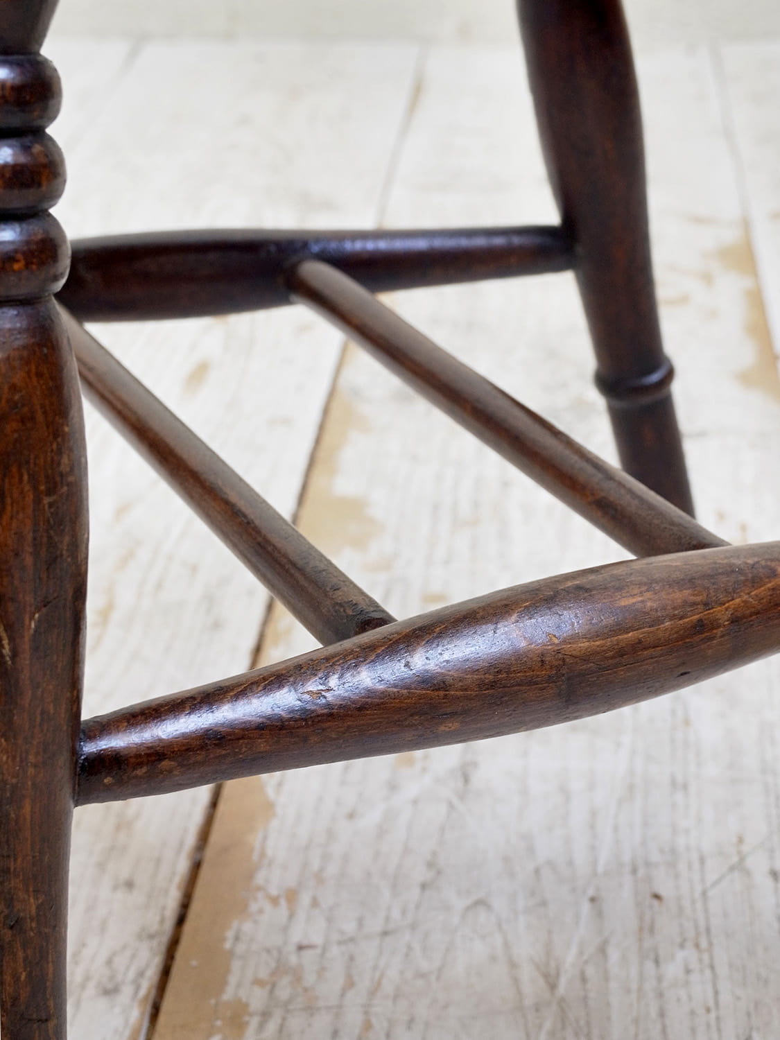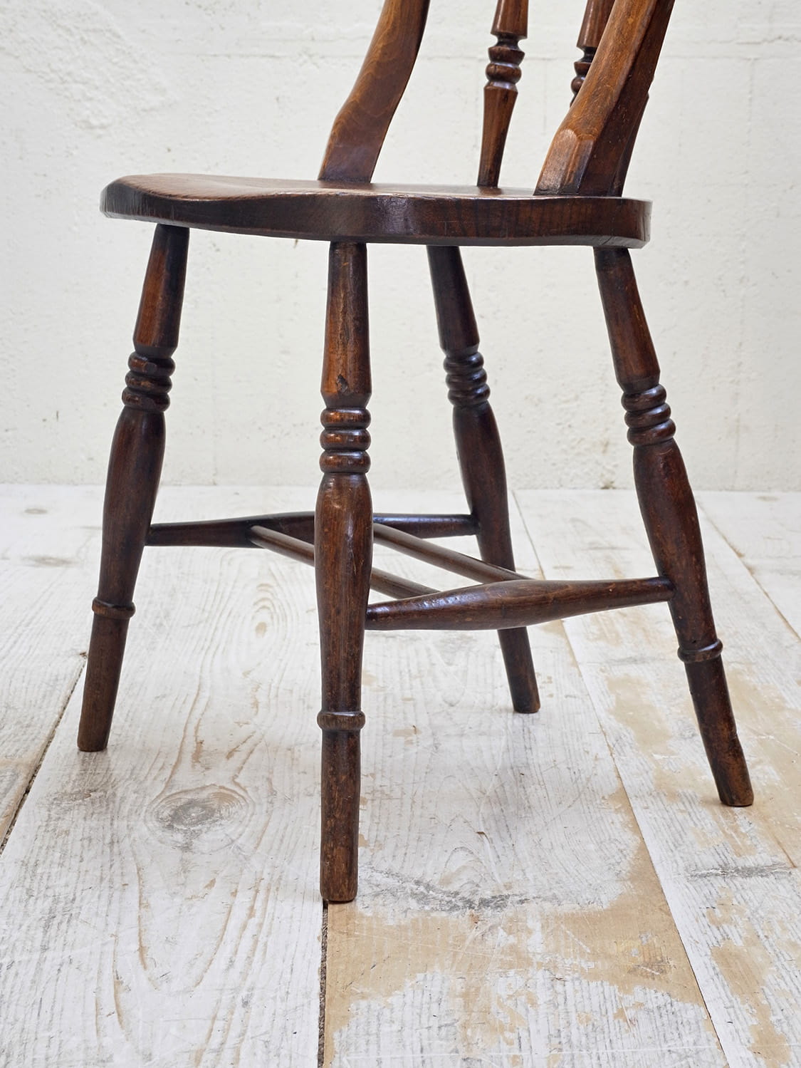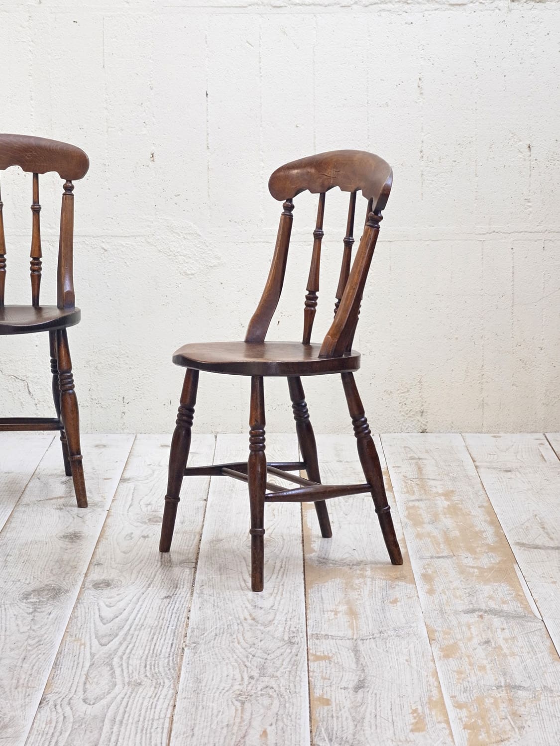推定1900年代初頭、イギリス製のキッチンチェアです。キッチンチェアとは文字通りキッチンで使う作業椅子のことでイギリスの農家(ファームハウス)や一般家庭で使われていました。こちらの椅子のデザインはシンプルですがなかなか同じようなものはなく、珍しいです。古く、長年使用されていたようで所々修理しながら大切に使われていたようです。その他キッチンチェアの一覧はこちらから。座面までの高さは45.5cmです。撮影は右(c)の椅子をしています。価格は1脚の値段です。d:SOLD