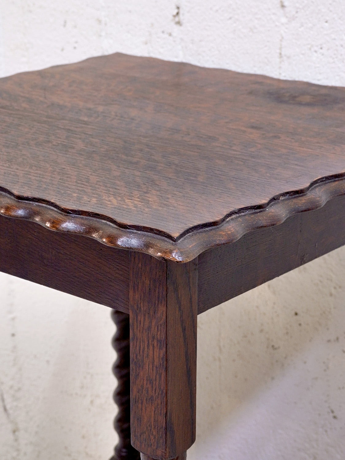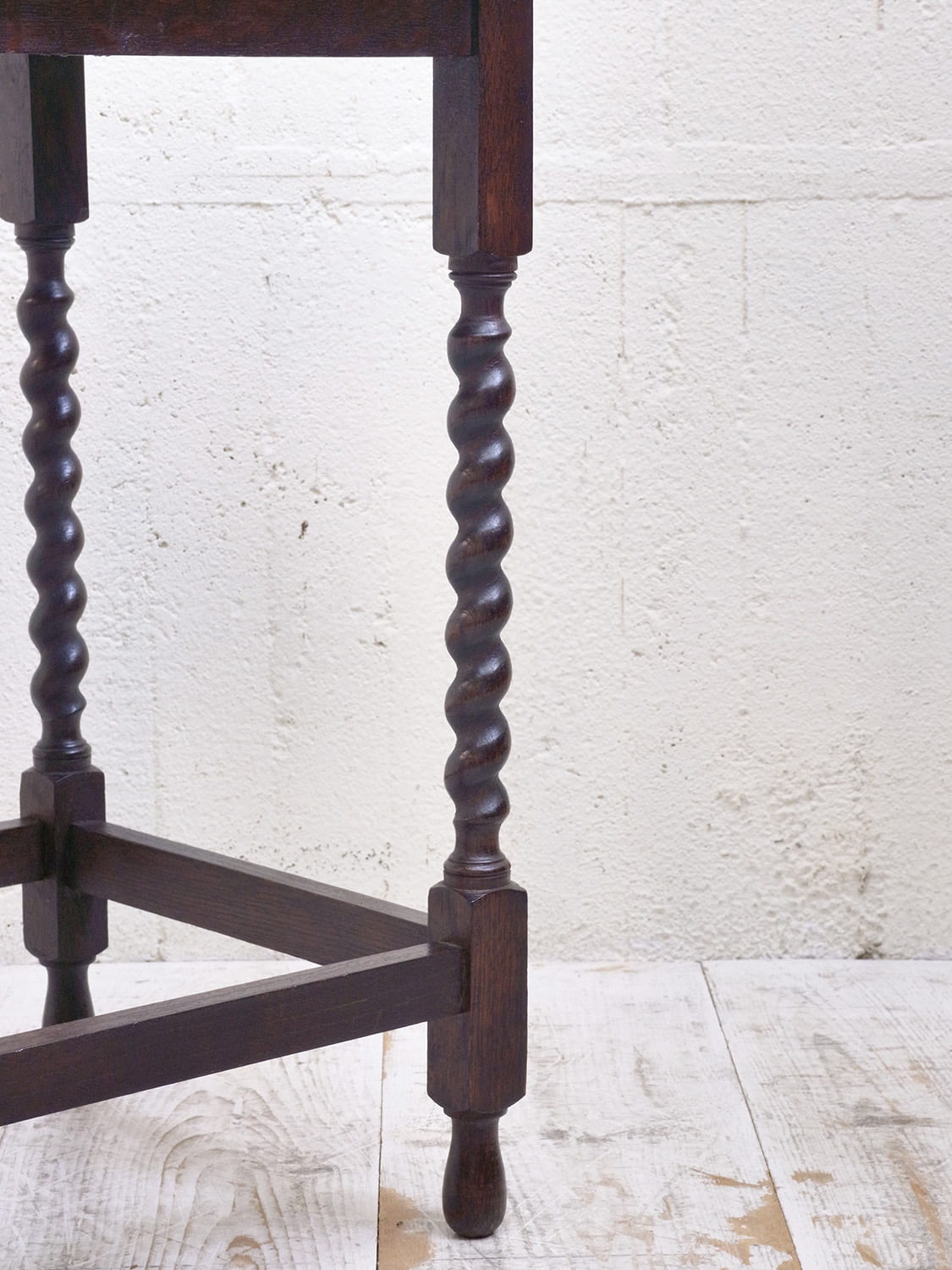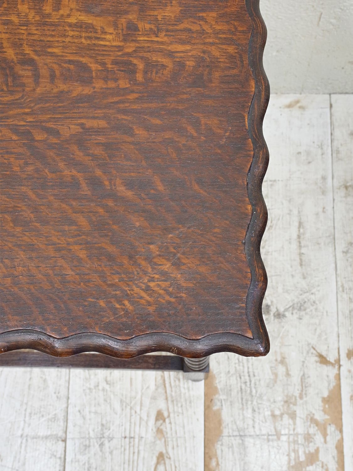 推定1940年代、イギリス製のアンティークオークオケージョナルテーブルです。オケージョナルとは「必要な時につかう」という意味で、その名の通りちょっとしたスペースで使うことができるよう軽くて持ち運びがしやすい小さめのテーブルです。高さがあり花台やサイドテーブルとしてなど様々な場所でご使用いただけます。こちらのテーブルは通常サイズより一回り大きい印象で存在感があります。その他サイドテーブルはこちらから。