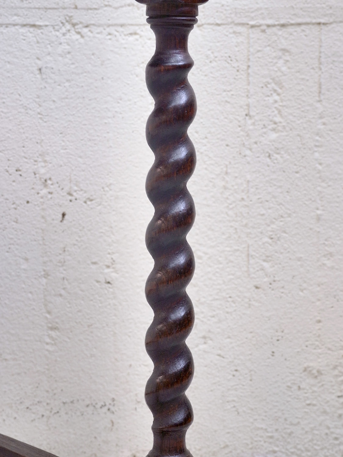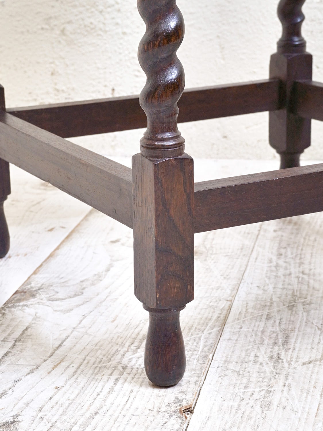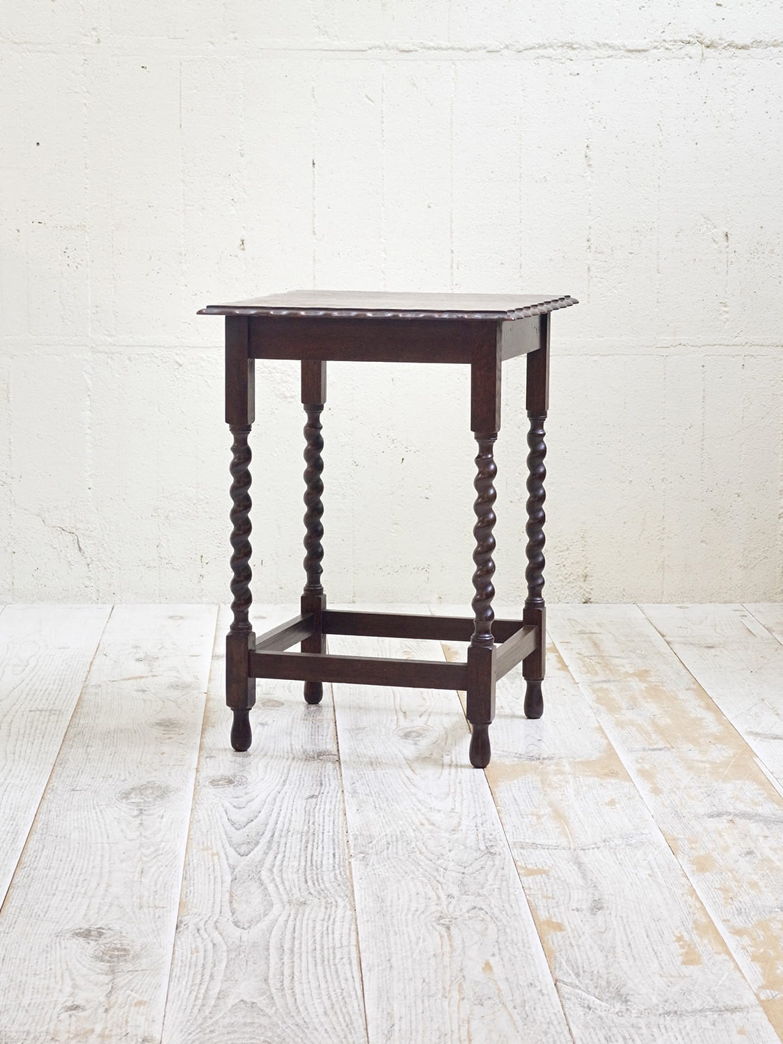 推定1940年代、イギリス製のアンティークオークオケージョナルテーブルです。オケージョナルとは「必要な時につかう」という意味で、その名の通りちょっとしたスペースで使うことができるよう軽くて持ち運びがしやすい小さめのテーブルです。高さがあり花台やサイドテーブルとしてなど様々な場所でご使用いただけます。こちらのテーブルは通常サイズより一回り大きい印象で存在感があります。その他サイドテーブルはこちらから。