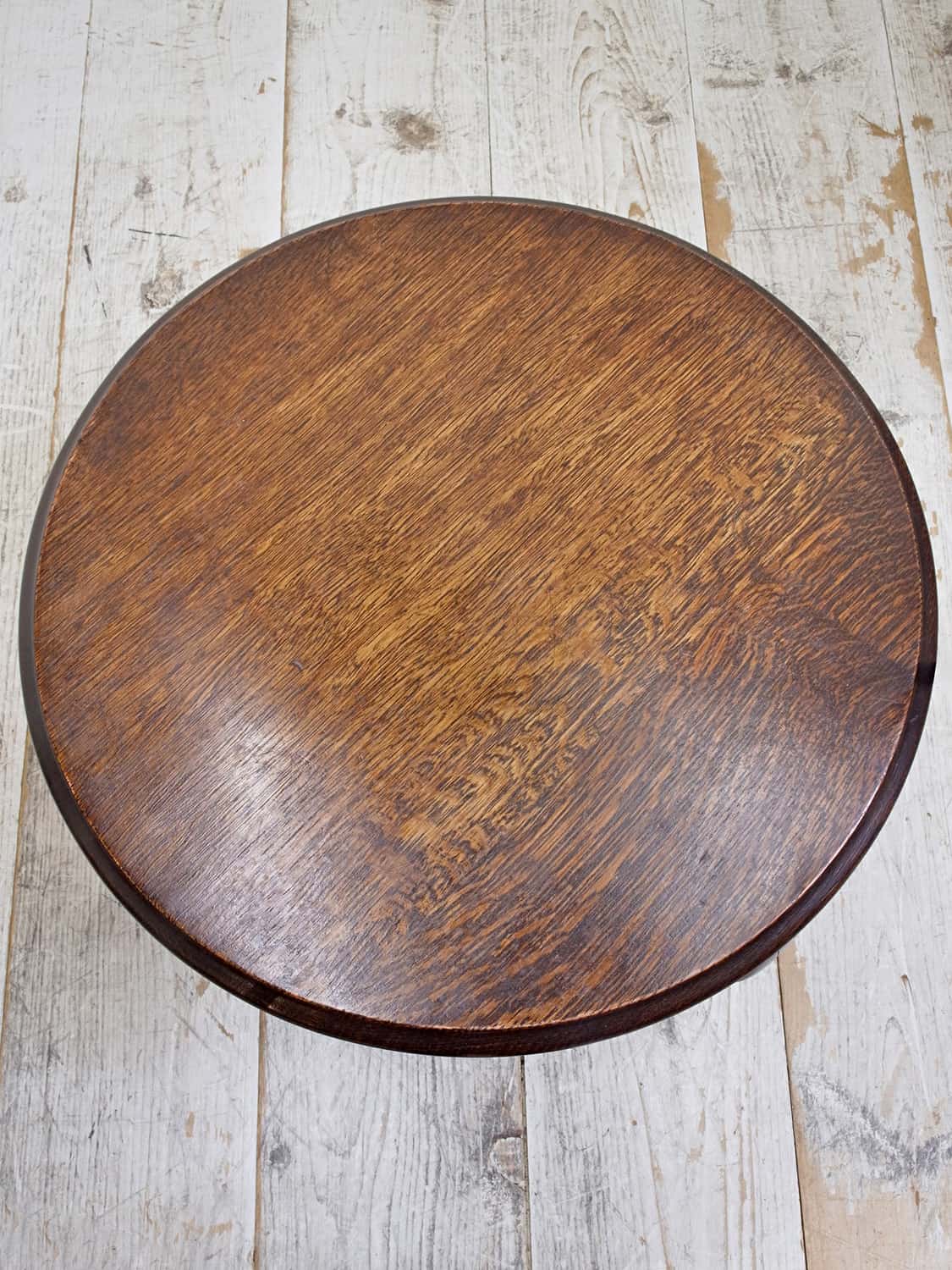 推定1940年代、イギリス製のアンティークオークコーヒーテーブルです。円形のちょうど良いサイズ感で、ソファのサイドテーブルとしてのご使用もおすすめです。通常のコーヒーテーブルより高さが少し低い印象です。その他コーヒーテーブルはこちらから。