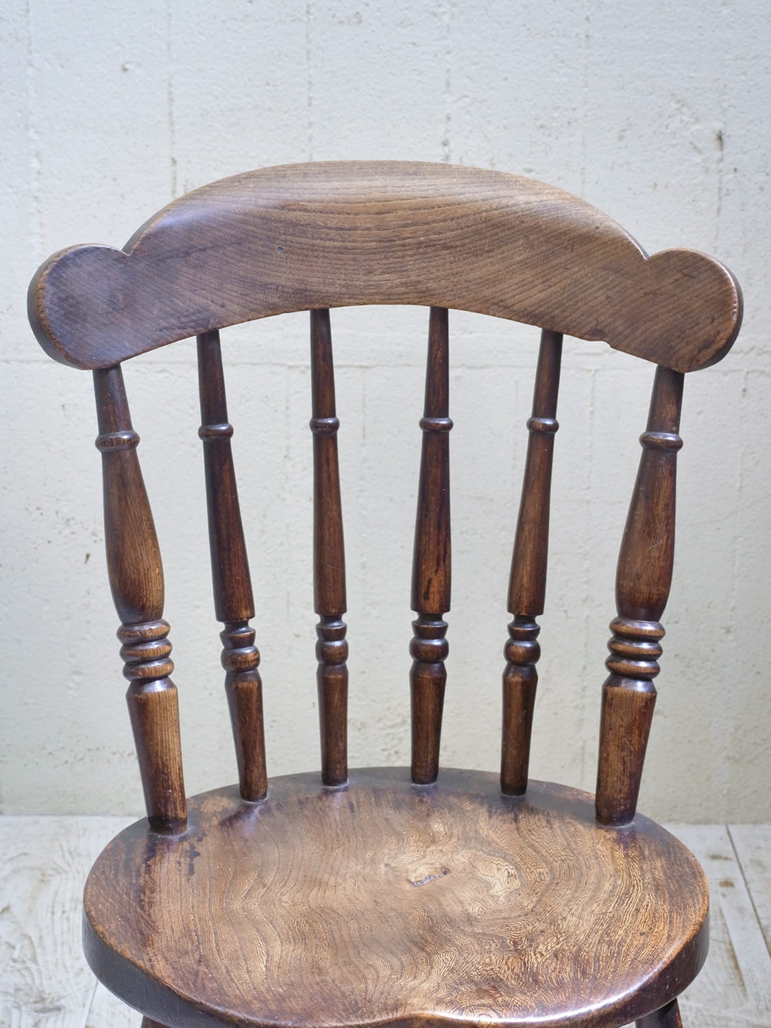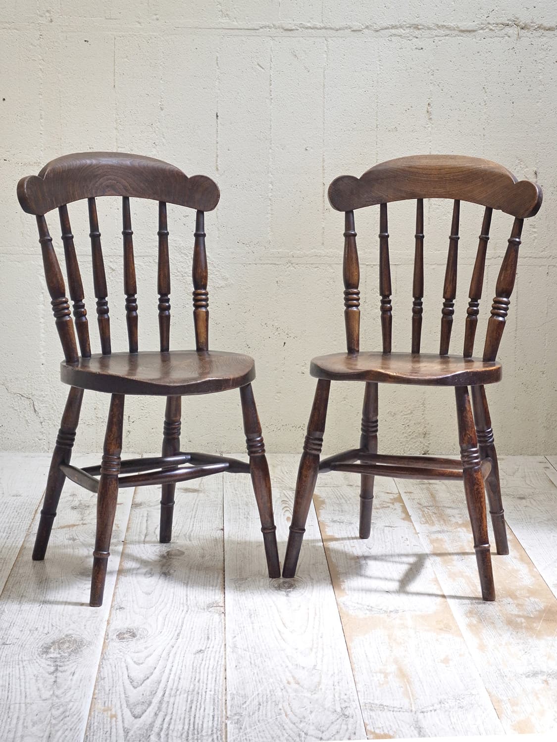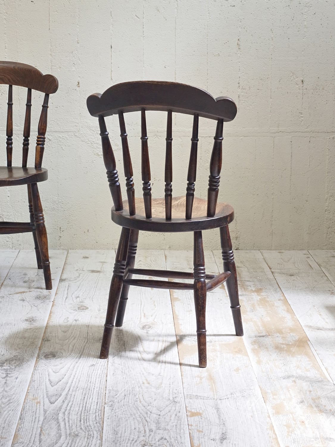 推定1930年代、イギリス製のキッチンチェアです。キッチンチェアとは文字通りキッチンで使う作業椅子のことでイギリスの農家(ファームハウス)や一般家庭で使われていました。こちらの椅子のデザインはシンプルですが、ペニーチェアのように座面がまん丸で、少し珍しいです。座面までの高さが高い場合、脚をカットすることもできます(お届け前でしたら無料にて承ります)。その他キッチンチェアの一覧はこちらから。座面までの高さは44.8cmです。撮影はa(右)の椅子をしています。価格は1脚の値段です。b:SOLD