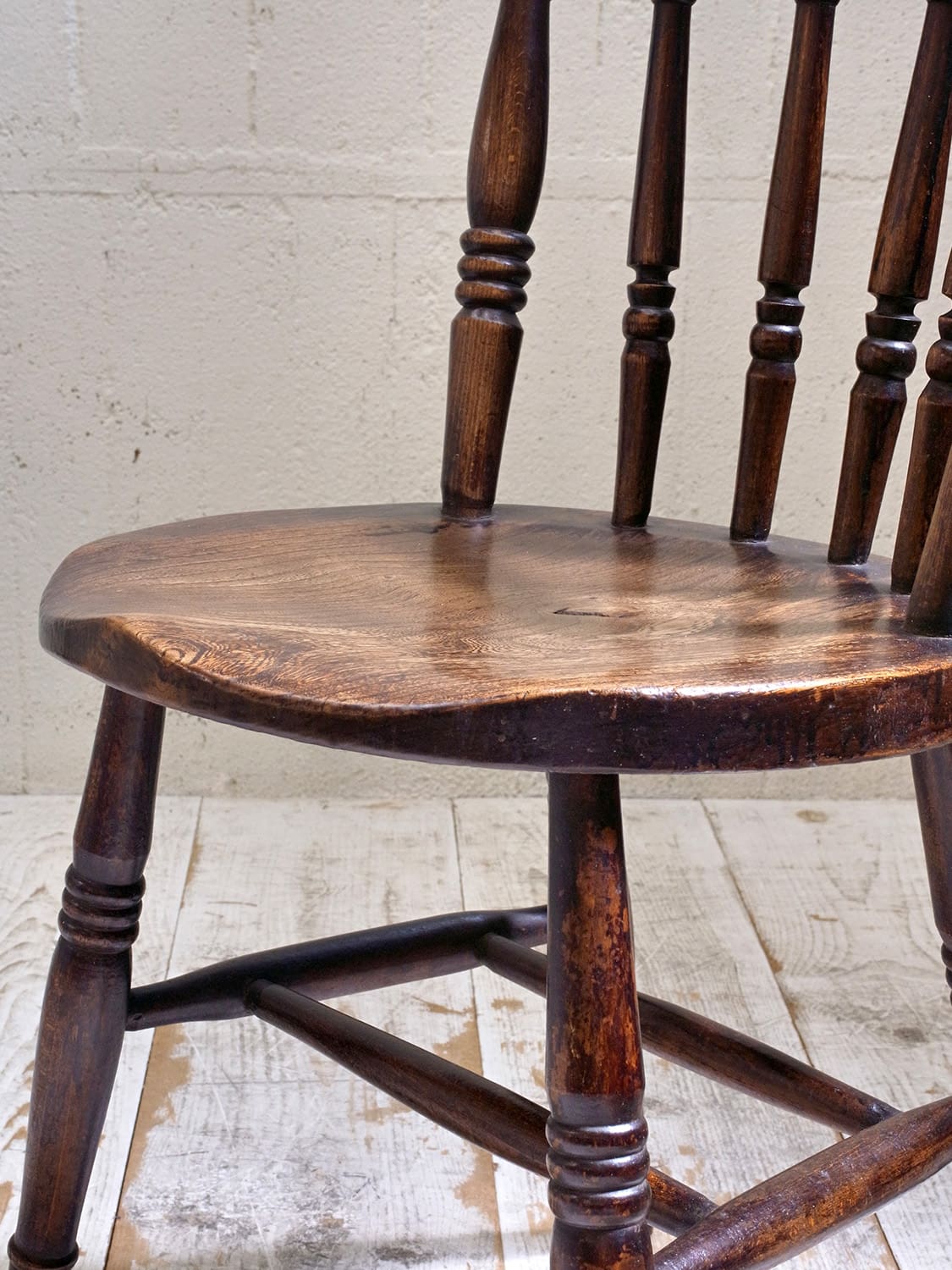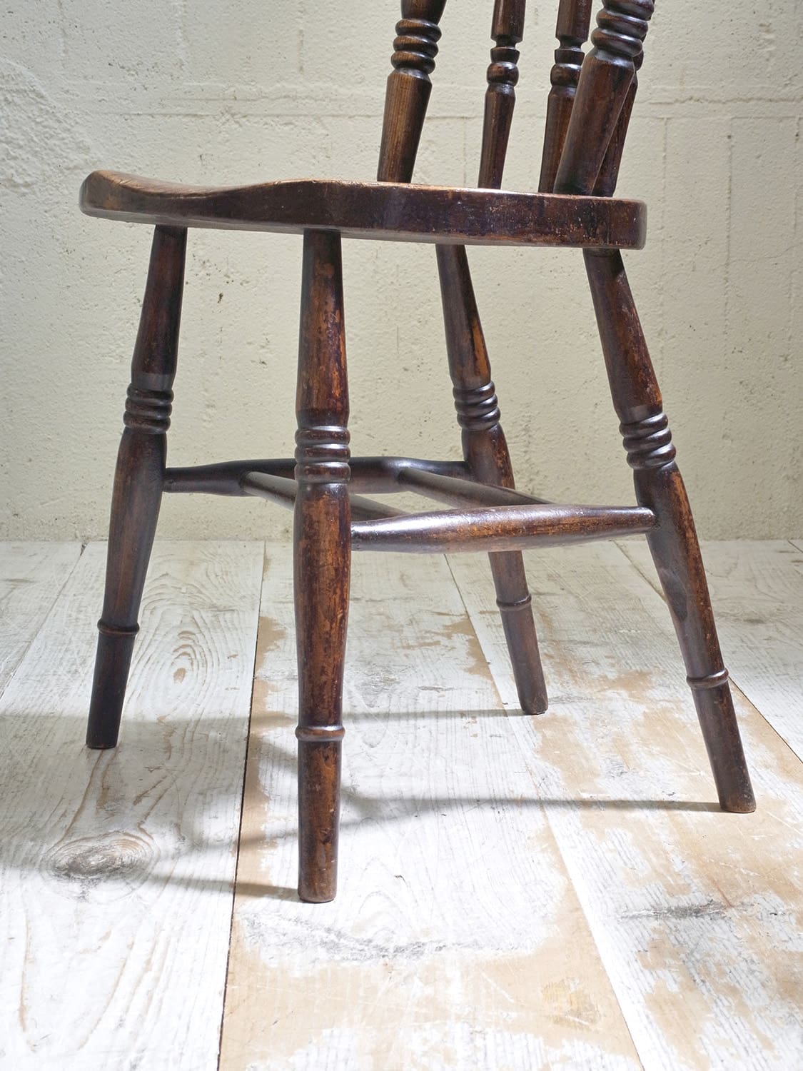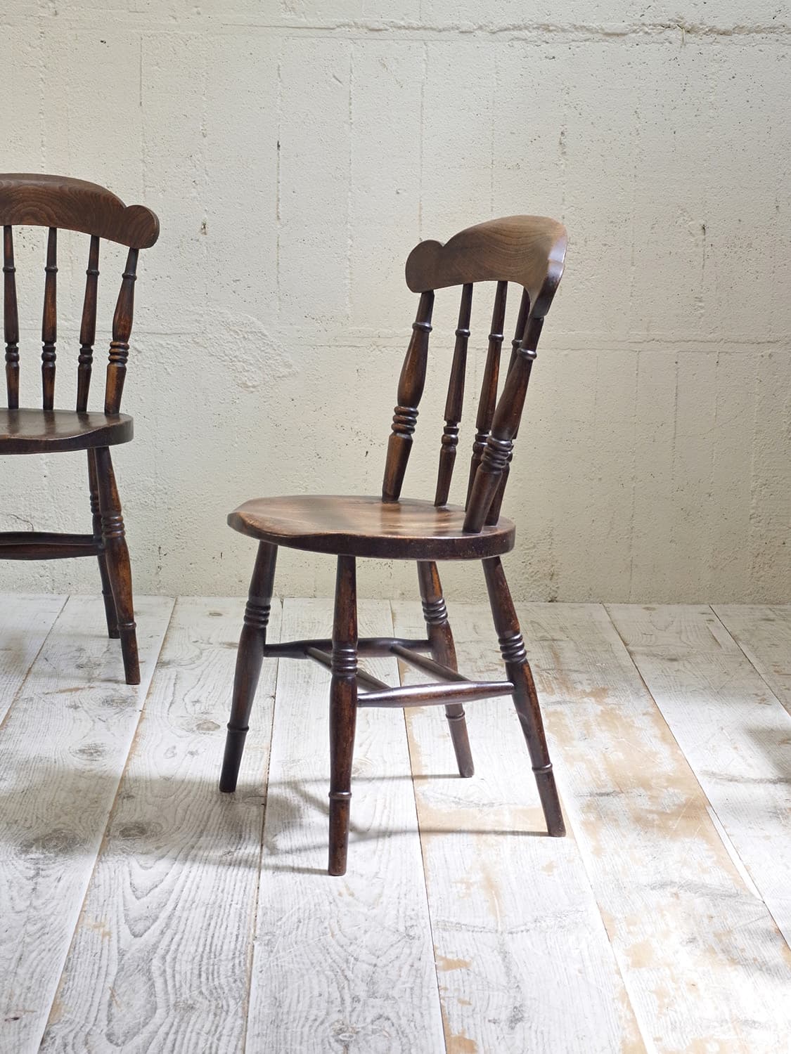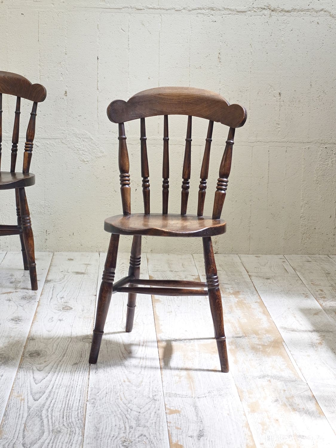 推定1930年代、イギリス製のキッチンチェアです。キッチンチェアとは文字通りキッチンで使う作業椅子のことでイギリスの農家(ファームハウス)や一般家庭で使われていました。こちらの椅子のデザインはシンプルですが、ペニーチェアのように座面がまん丸で、少し珍しいです。座面までの高さが高い場合、脚をカットすることもできます(お届け前でしたら無料にて承ります)。その他キッチンチェアの一覧はこちらから。座面までの高さは44.8cmです。撮影はa(右)の椅子をしています。価格は1脚の値段です。b:SOLD