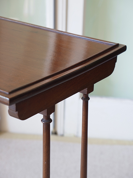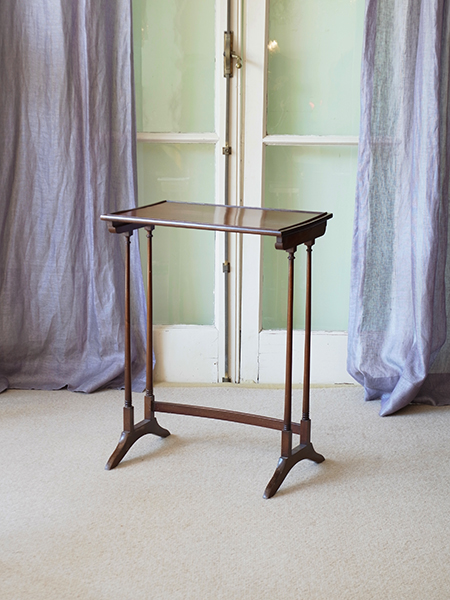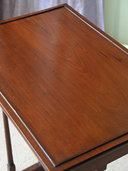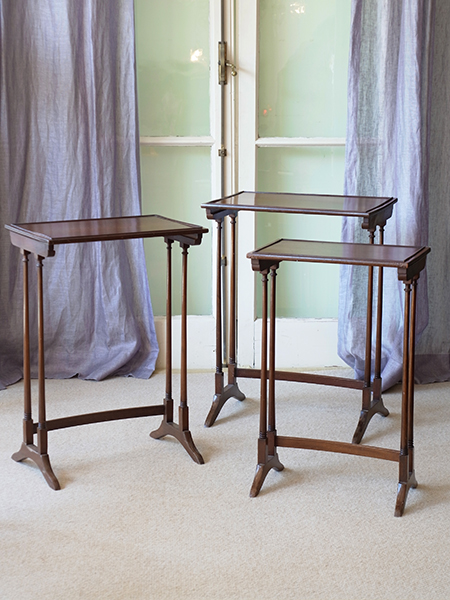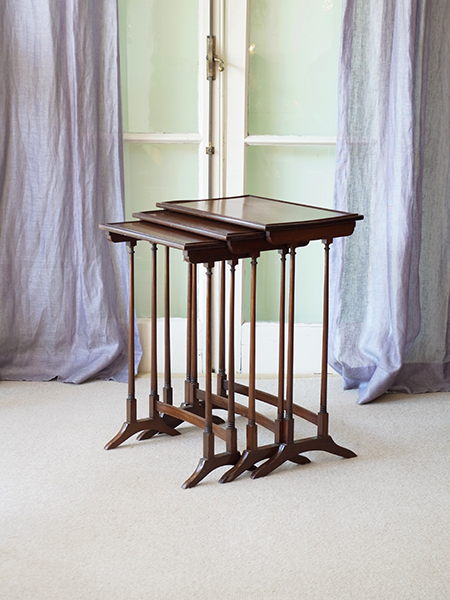推定1920年代。イギリス製。入れ子式のサイドテーブル。上記サイズは一番大きいテーブル。中W460 D300 H660 小W410 D260 H640 脚が長くスタイリッシュなデザインです。入れ子式なので急な来客などのサイドテーブルとしてご使用いただけます。