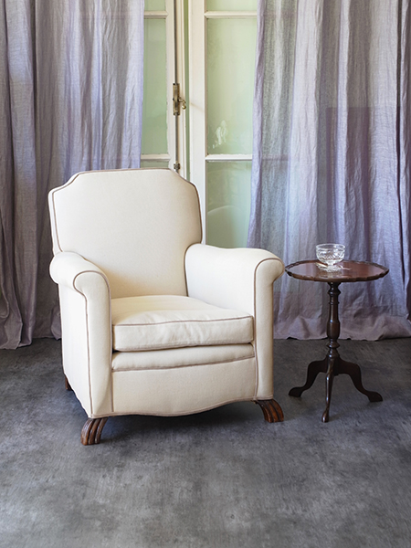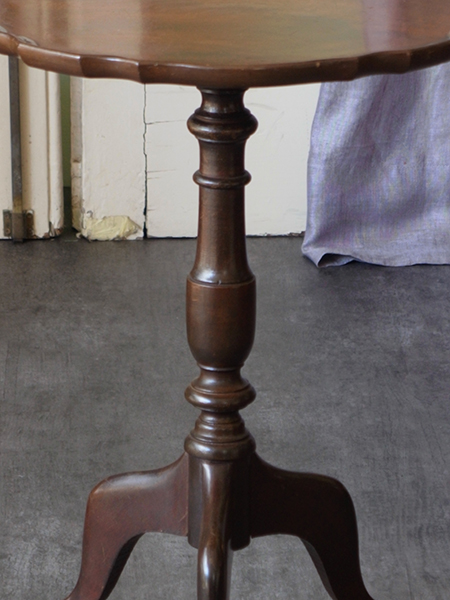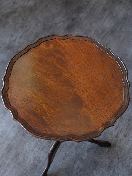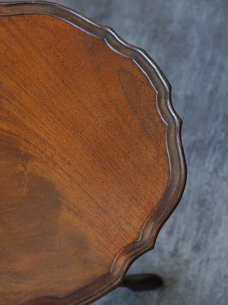 推定1930年代。直径340mmと大きめの天板のワインテーブルでソファに座った時に使用するのにもちょうど良い高さです。状態も良好です。 背景の家具:ND120 アンティーク シングルソファ