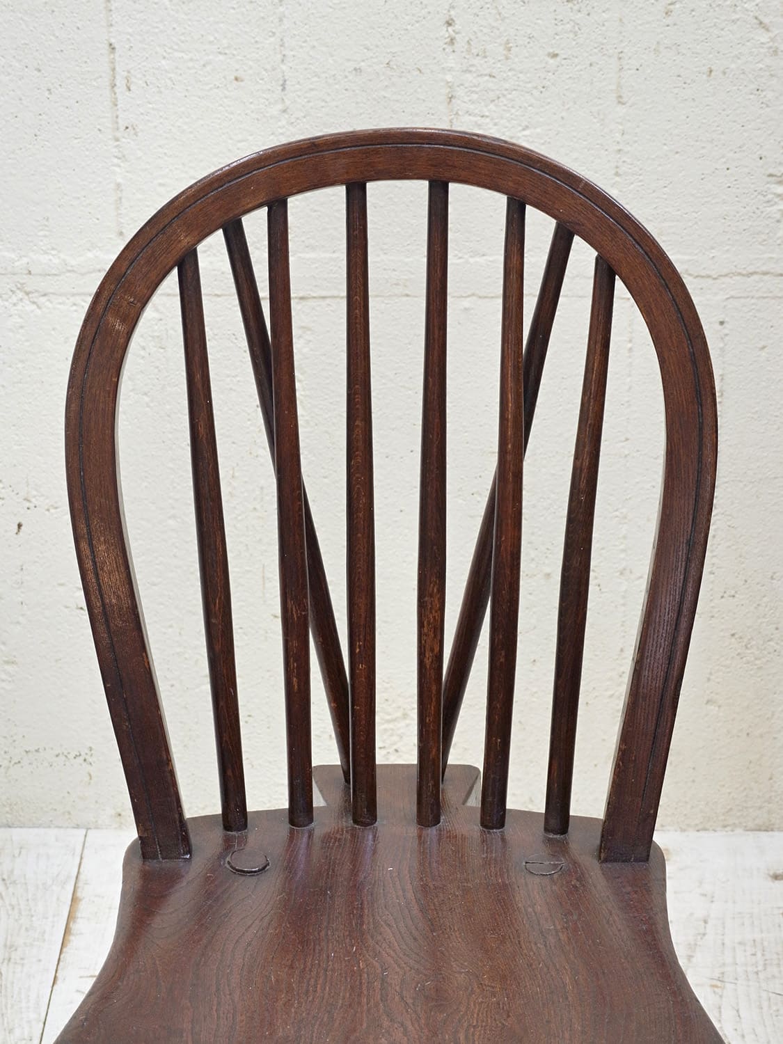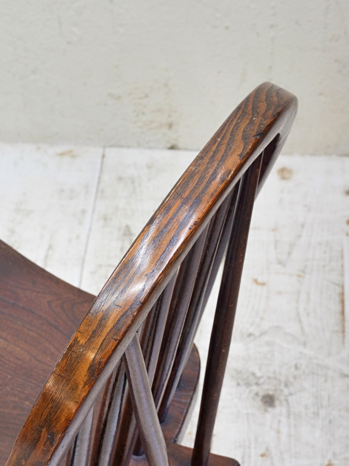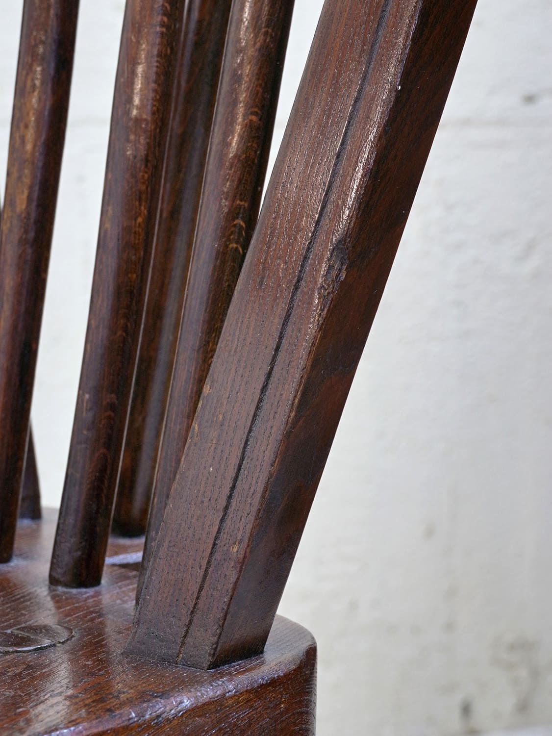 推定1920年代、イギリス製のアンティークキッチンチェアです。スタンダードなフープバックのチェアです。背もたれが少し倒れたデザインなので通常のダイニングチェアより少しゆったりとした座り心地です。座面までの高さは45cmです。この時代ならではですが、作り手さんによってディテールのデザインが少しずつ異なります。6脚セットで入荷しました。詳細撮影は右(a)の椅子をしています。その他キッチンチェアの一覧はこちらから。