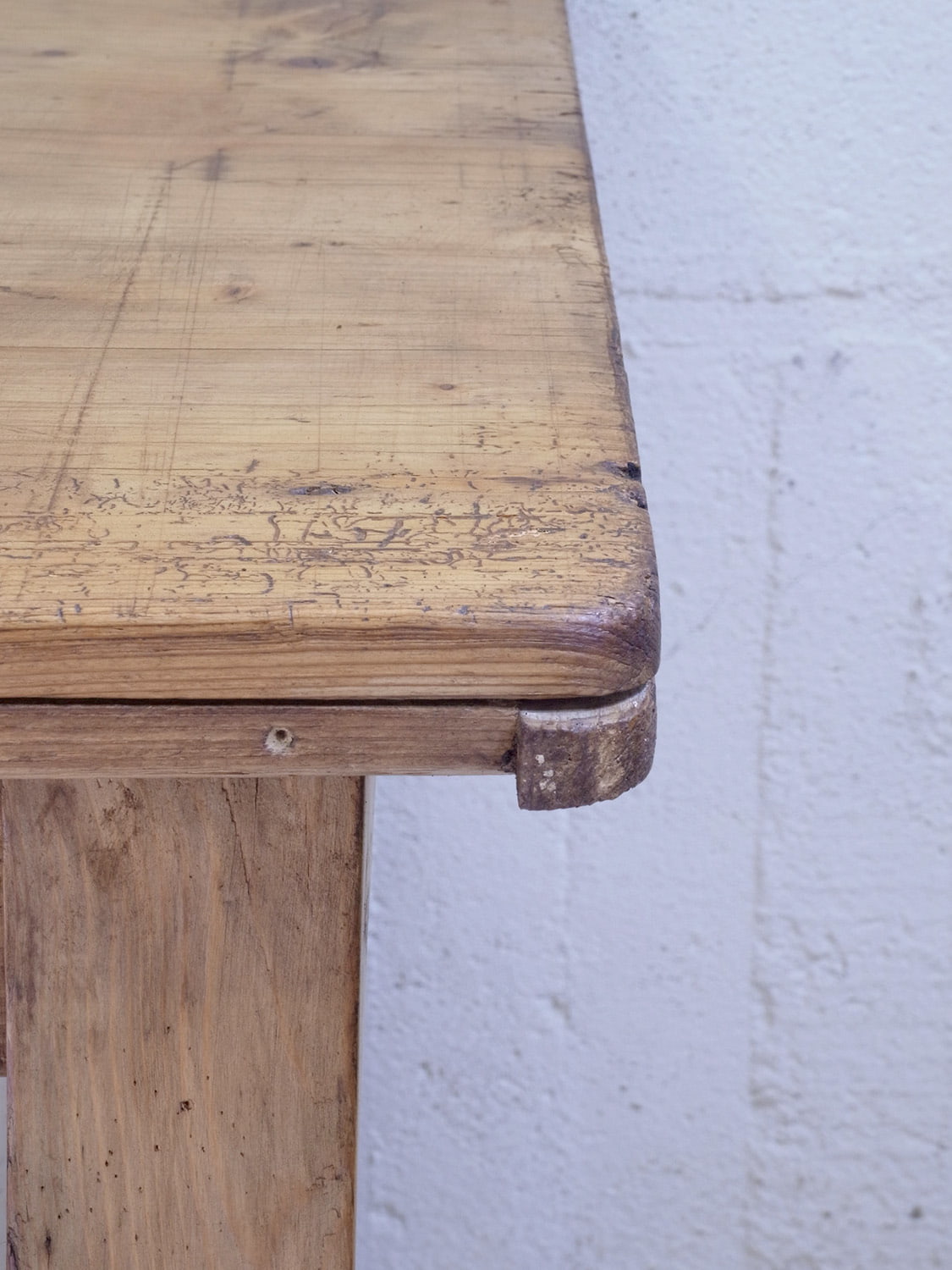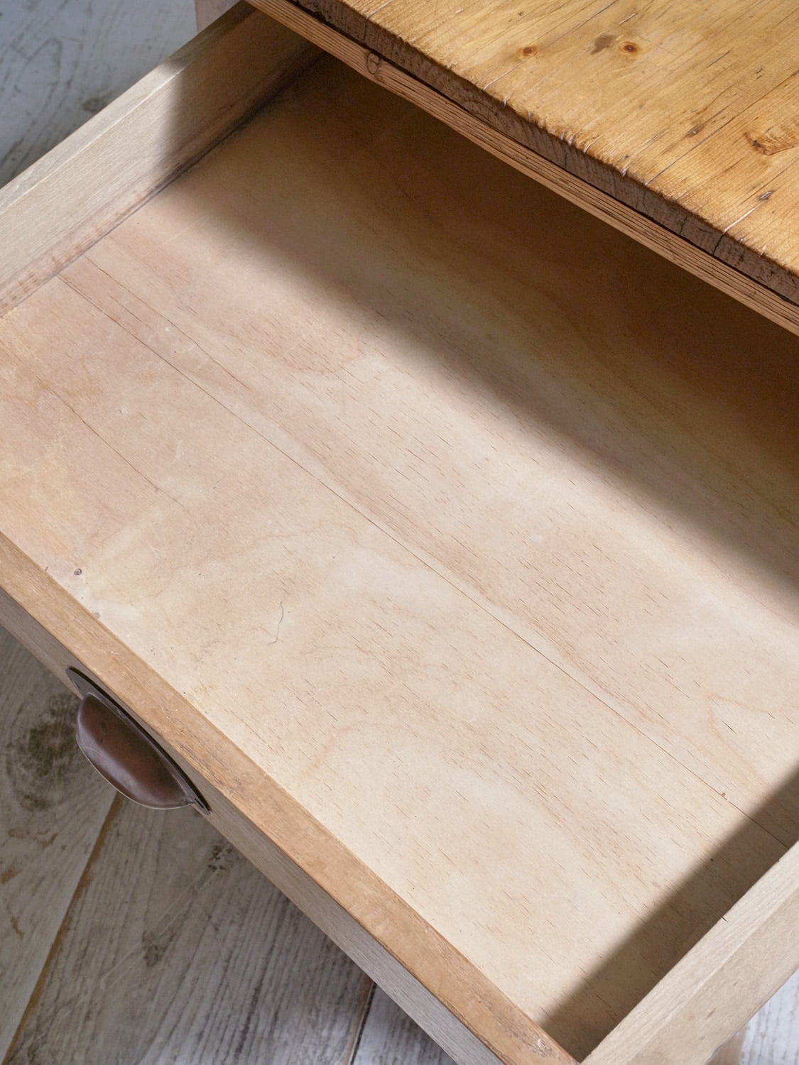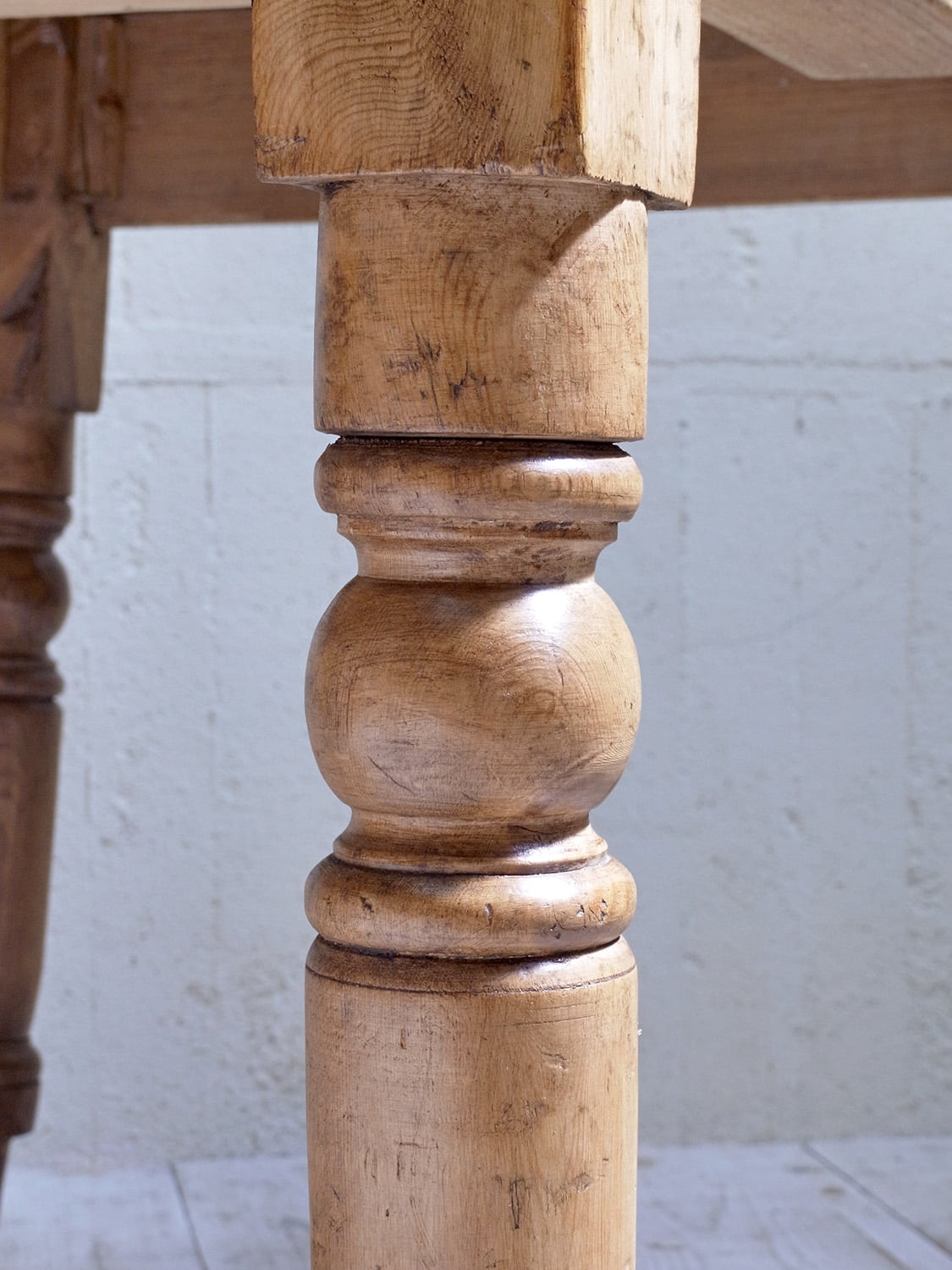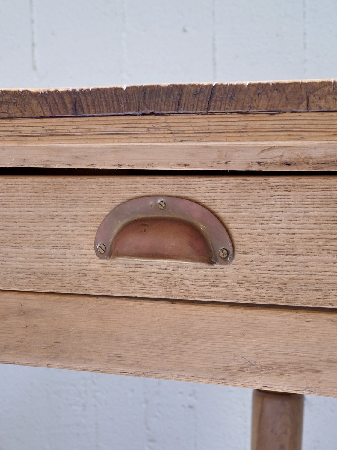 推定1930年代、イギリス製のアンティークパインテーブルです。2人掛けのダイニングテーブルとしておすすめです。小ぶりながらお皿も問題なく置けるサイズ感です。引き出しもカトラリーやランチョンマットなどの収納に最適です。ヴィクトリアンレッグと呼ばれる脚が特徴的で、これぞ王道のアンティークパインのテーブルです。シェルノブも可愛らしいです。引き出しサイズ W500 D370 H57mm。その他パインテーブルはこちらから。