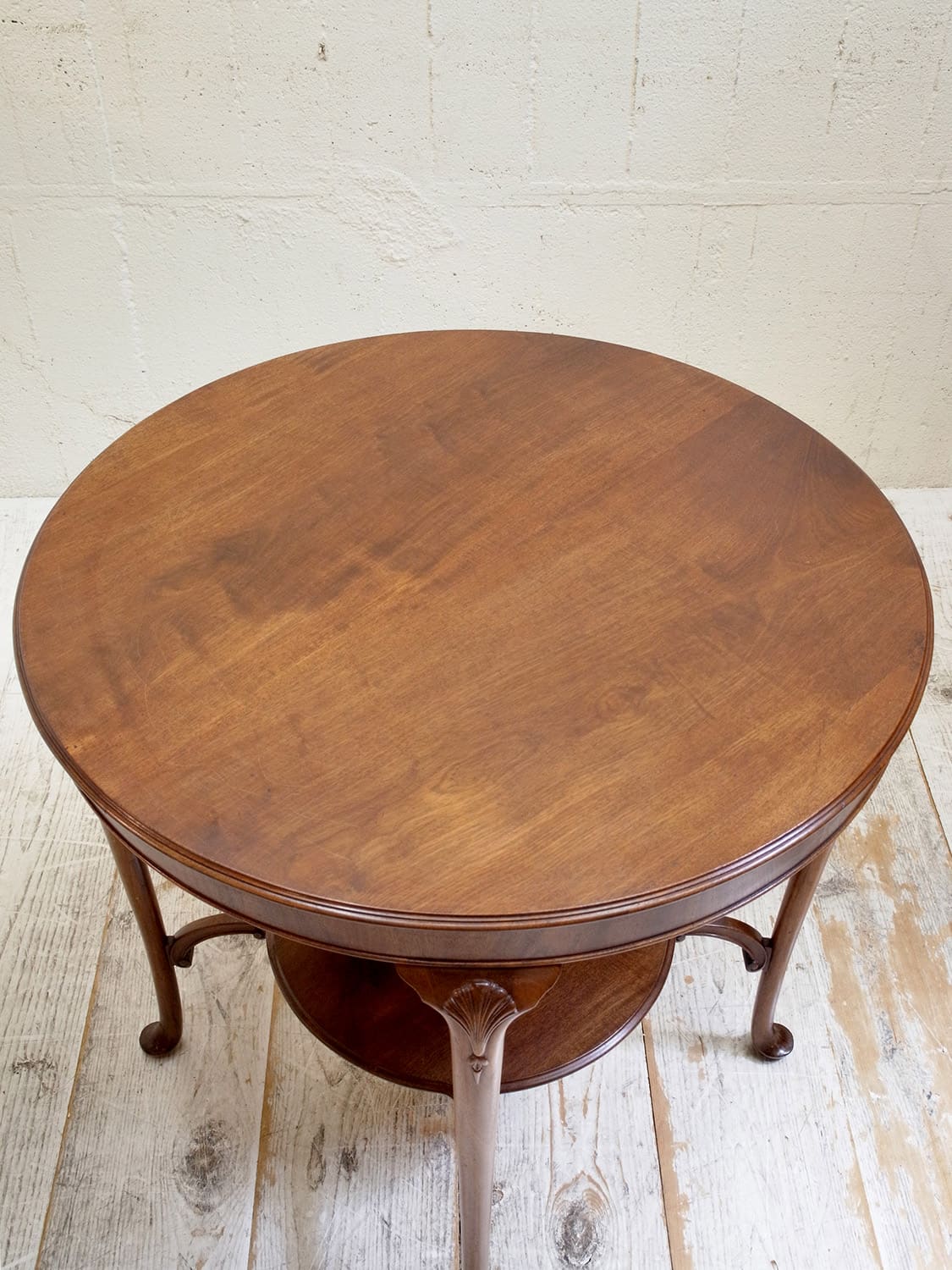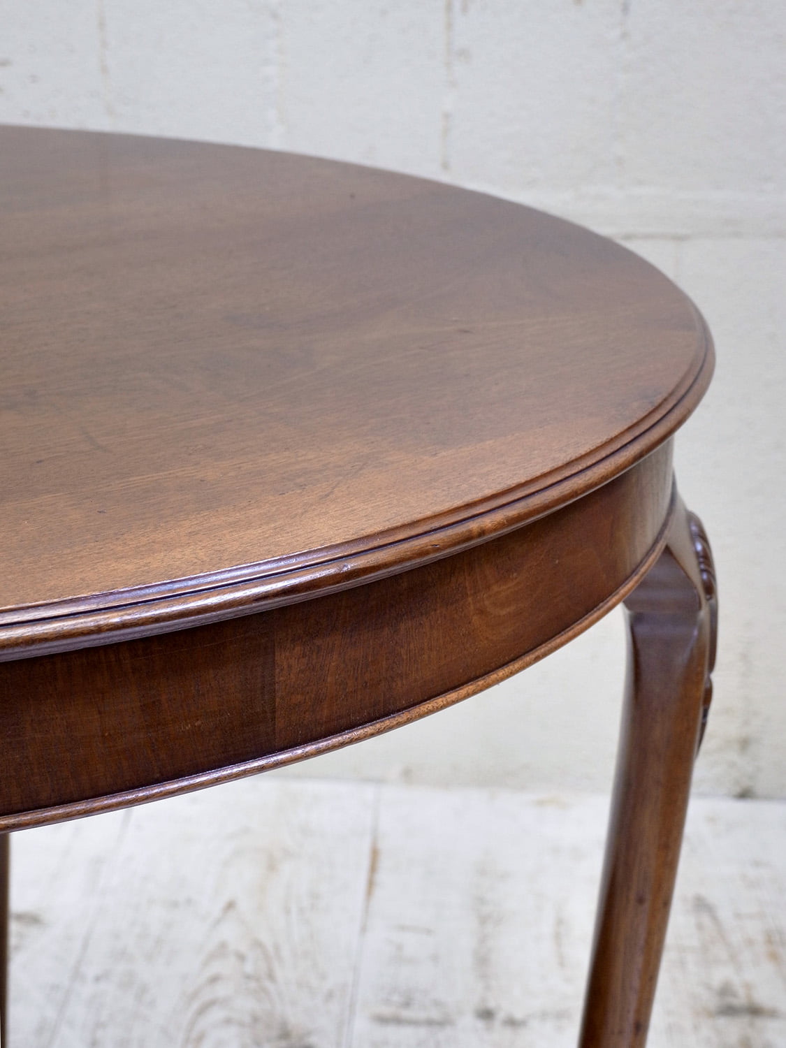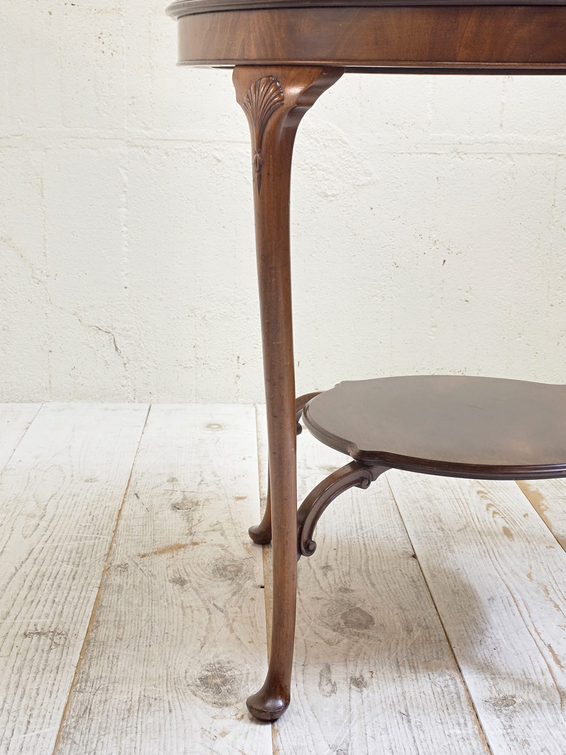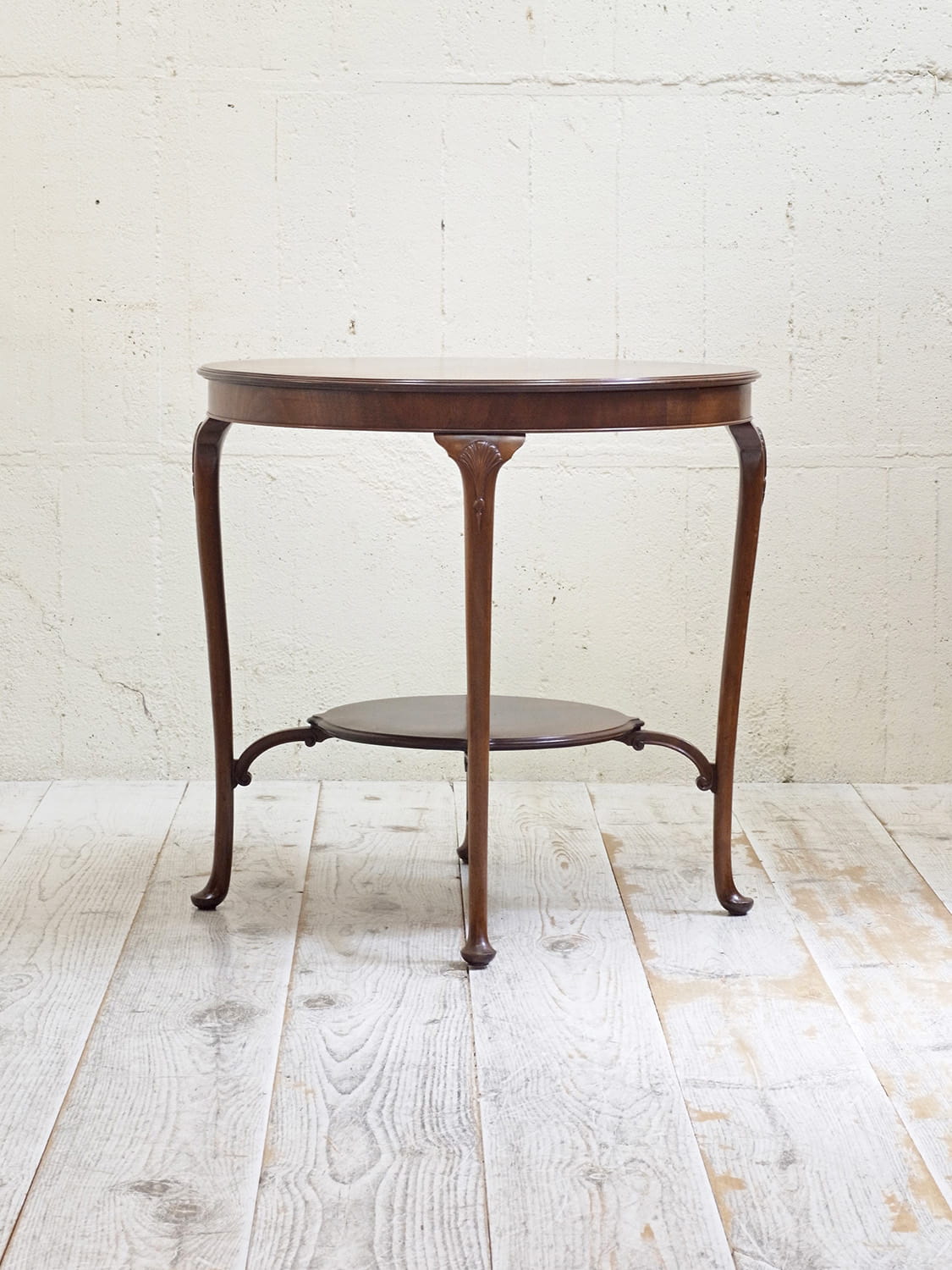 推定1920年代、イギリス製のアンティークマホガニーウィンドウテーブルです。デザイン性の高い上質なマホガニー材で作られています。実用というよりは玄関ホールや名前の通りウィンドウの傍で花台などの魅せる家具としてのご使用がおすすめです。置くだけで映える家具です。下台サイズ W432 D432 天板下からの高さ430mm。その他サイドテーブルはこちらから。