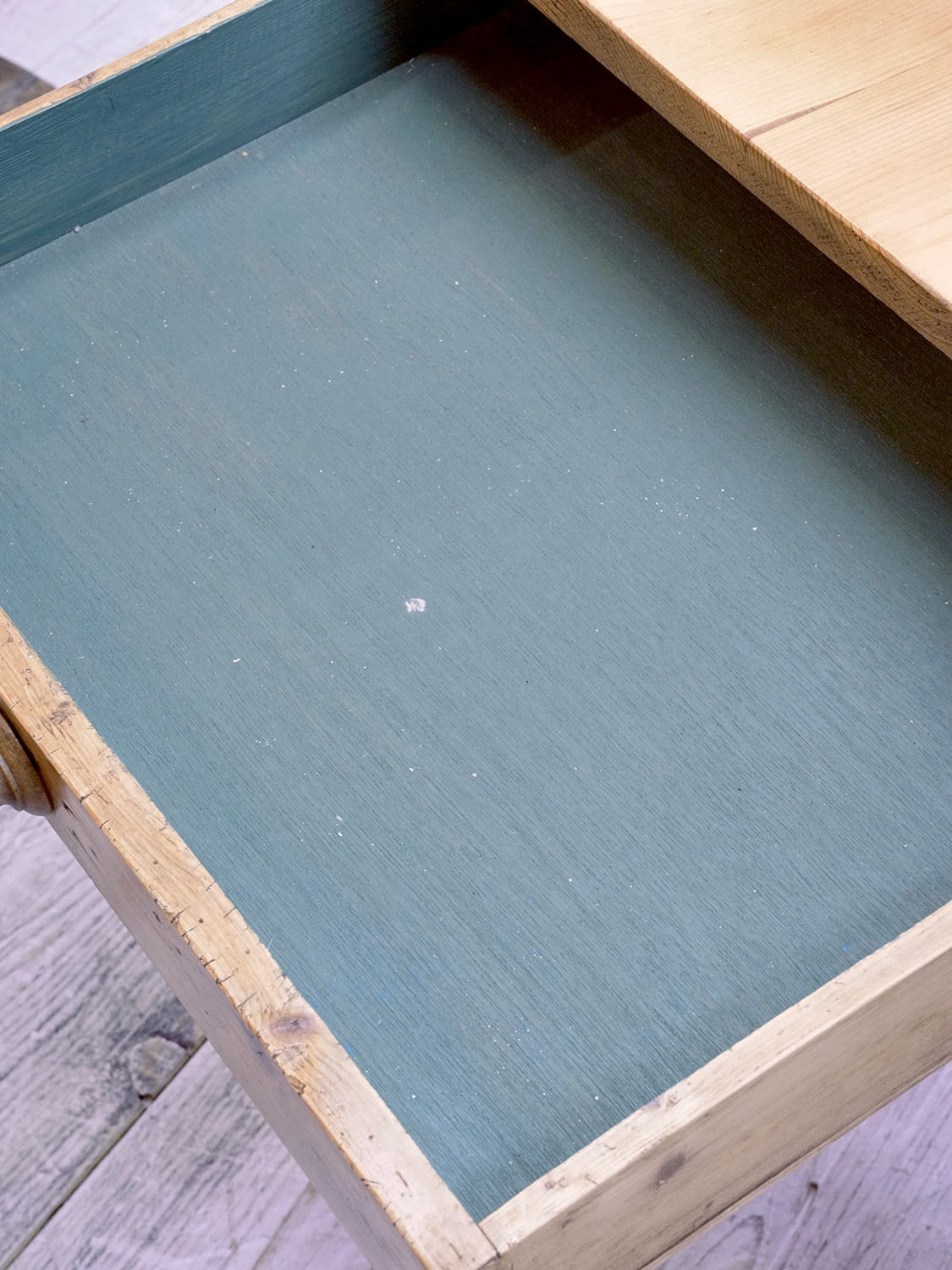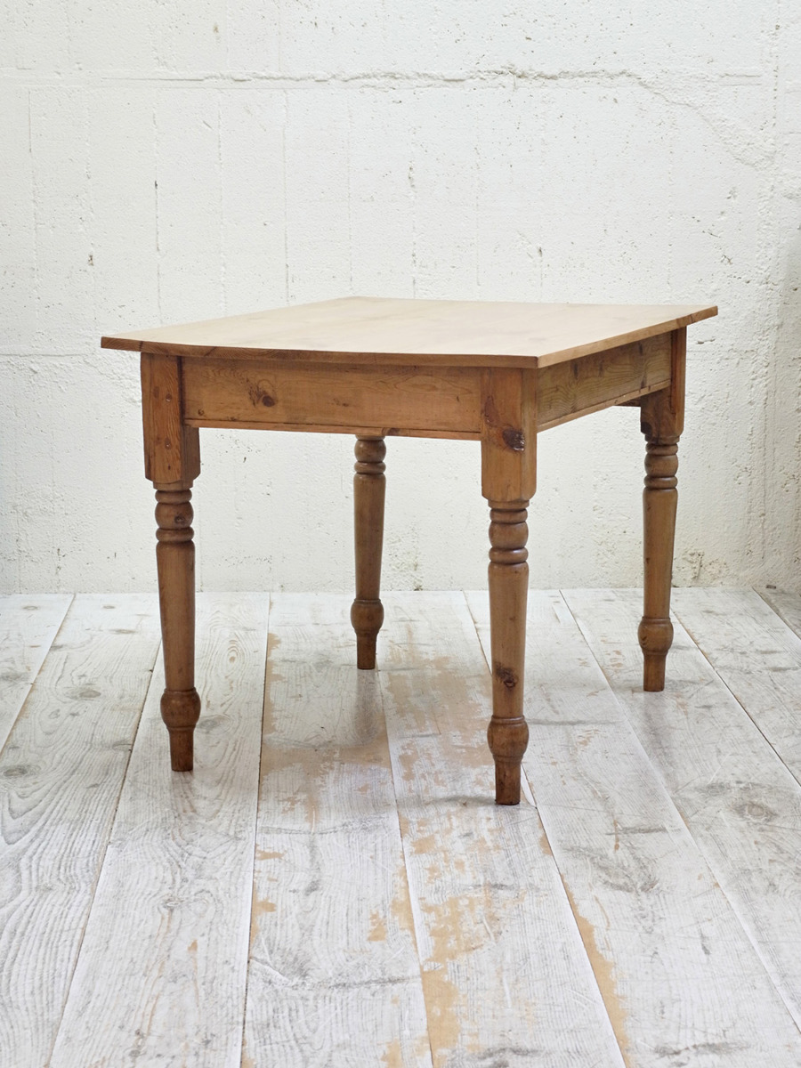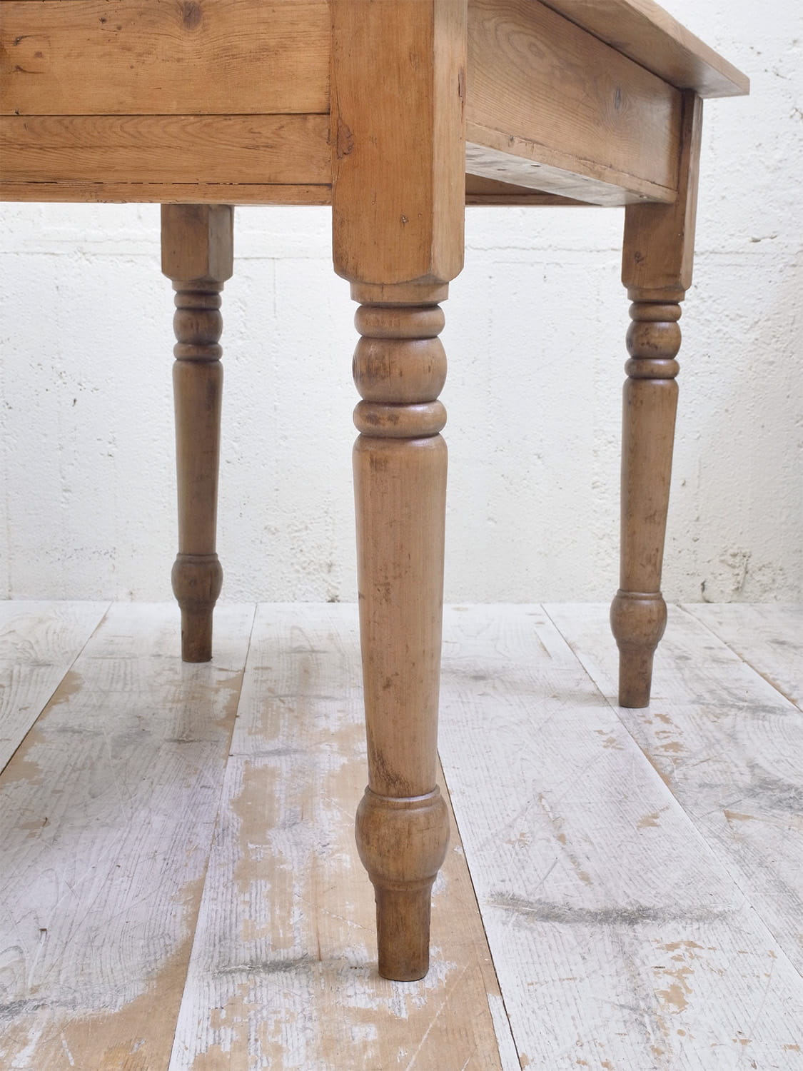 推定1930年代、イギリス製のアンティークパインテーブルです。2人掛けのダイニングテーブルとしておすすめです。小ぶりながらお皿も問題なく置けるサイズ感です。引き出しもカトラリーやランチョンマットなどの収納に最適です。これぞ王道のアンティークパインのテーブルです。引き出しサイズ W498 D385 H59mm。その他パインテーブルはこちらから。