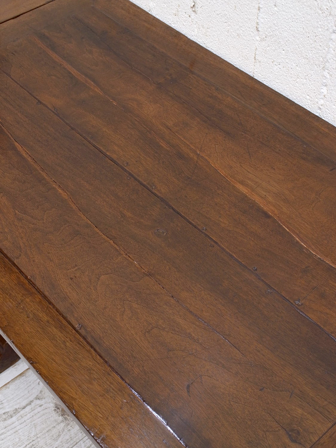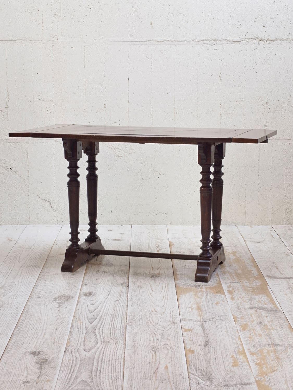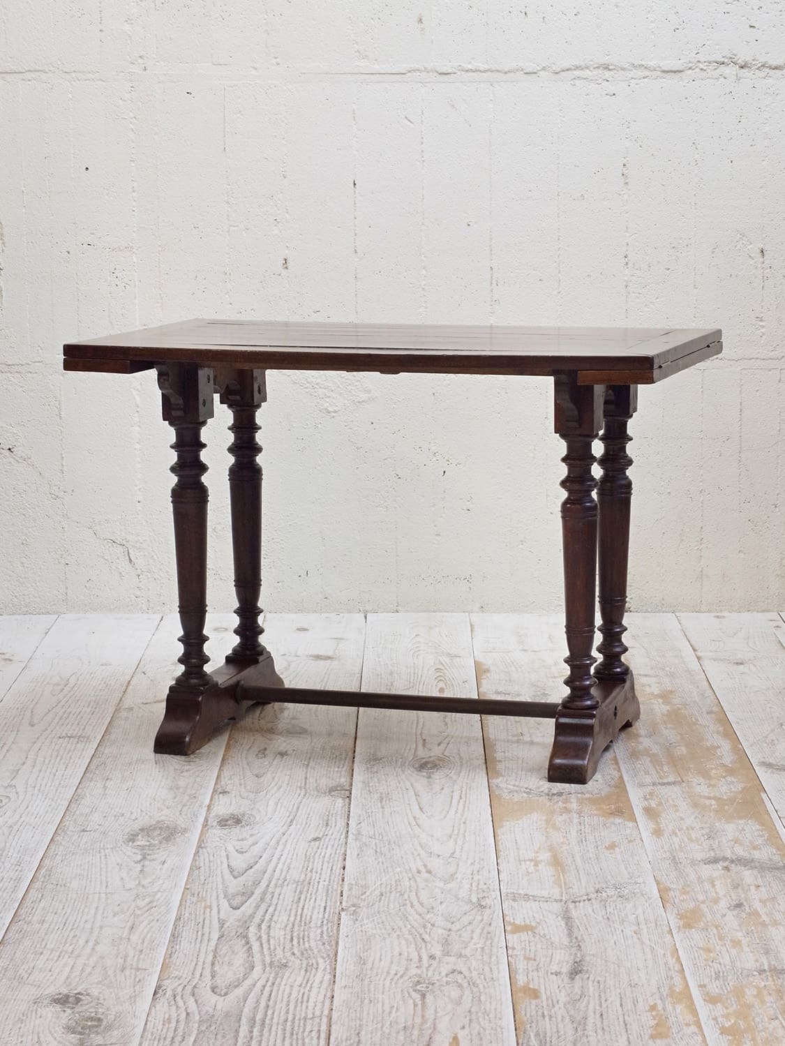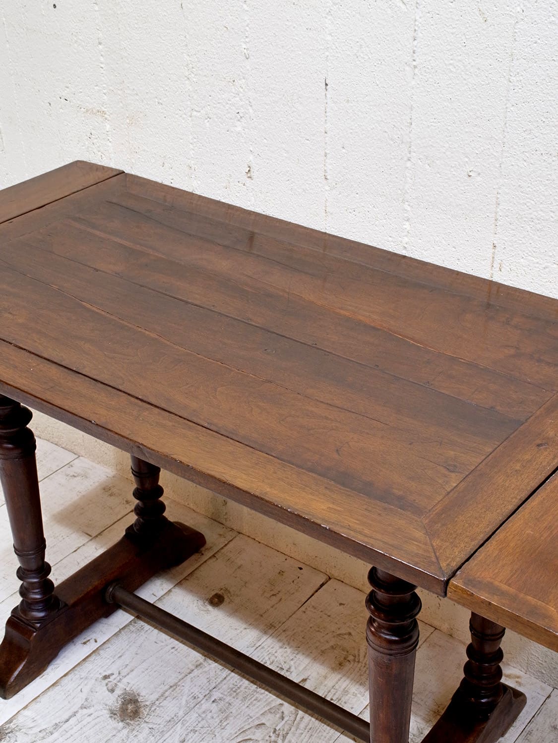 推定1930年代、フランス製のビストロテーブルです。こちらの家具は左右12cmほど広がる面白い作りで、閉じているときはドアラッチで留まっています。閉じている時のテーブルサイズは1000mmで作業台やデスクとしてもご使用いただけます。幕板がないシンプルなデザインなのでアーム付のチェアもあわせることができます。その他ビストロテーブルはこちらから。