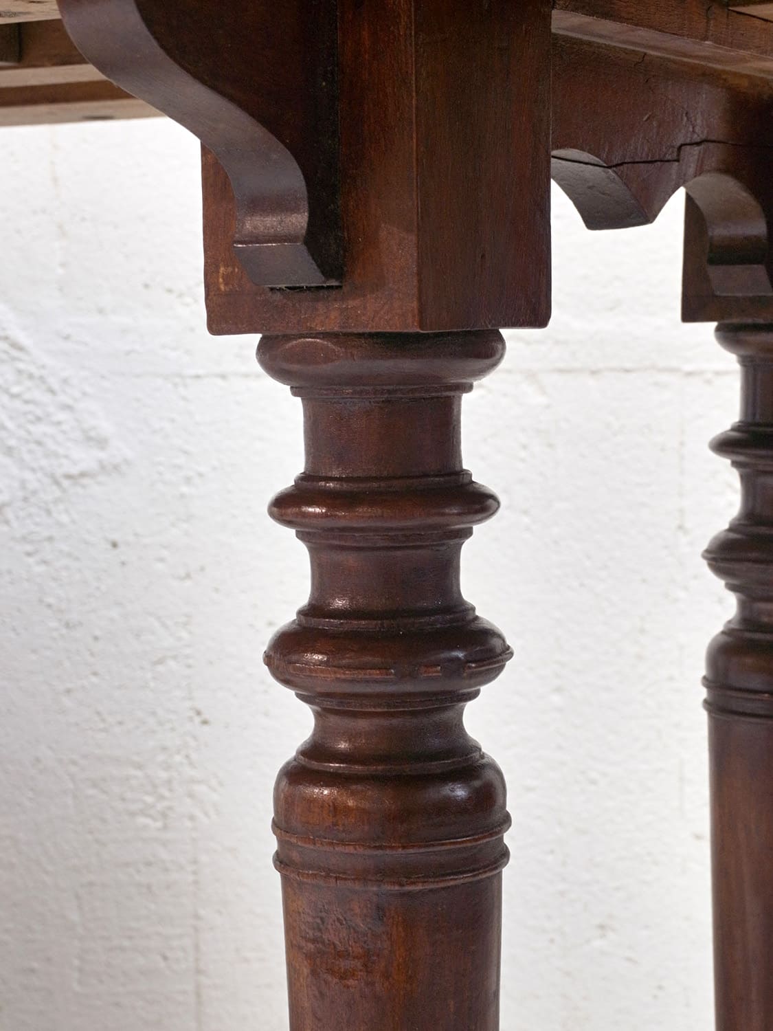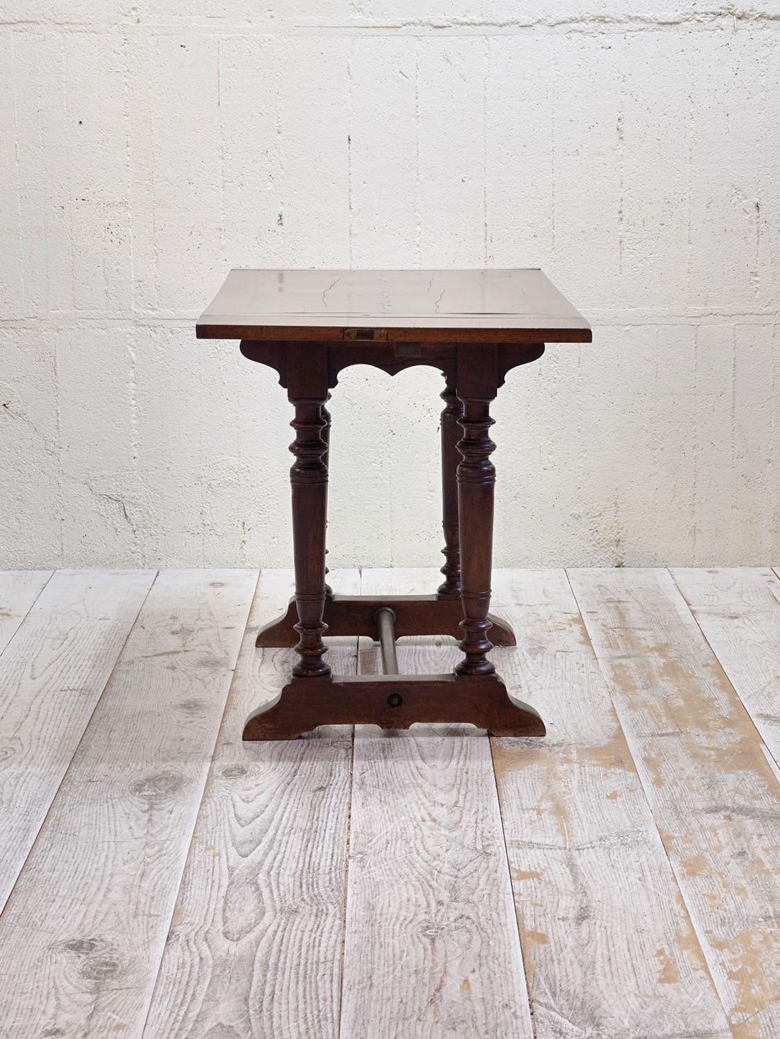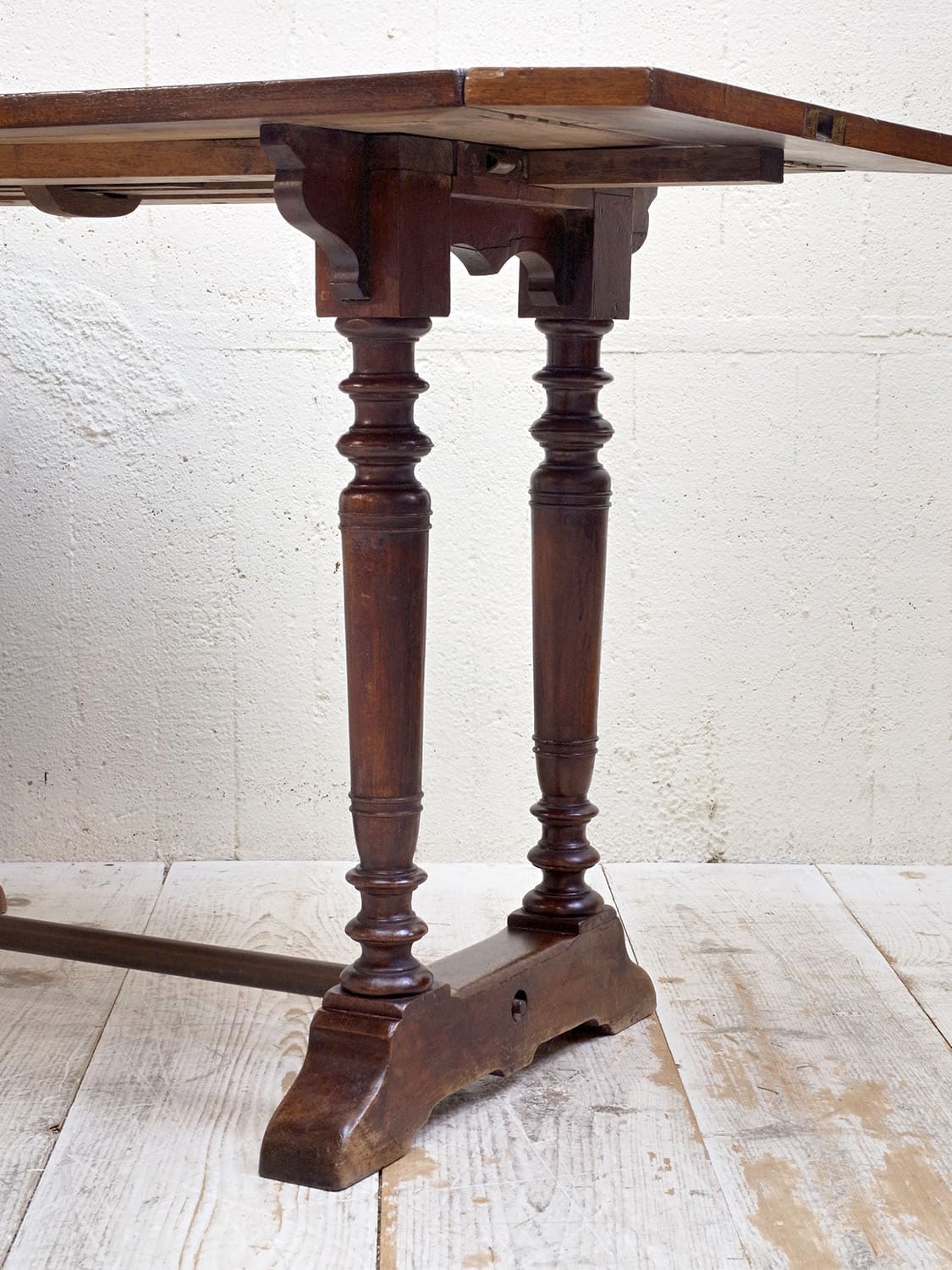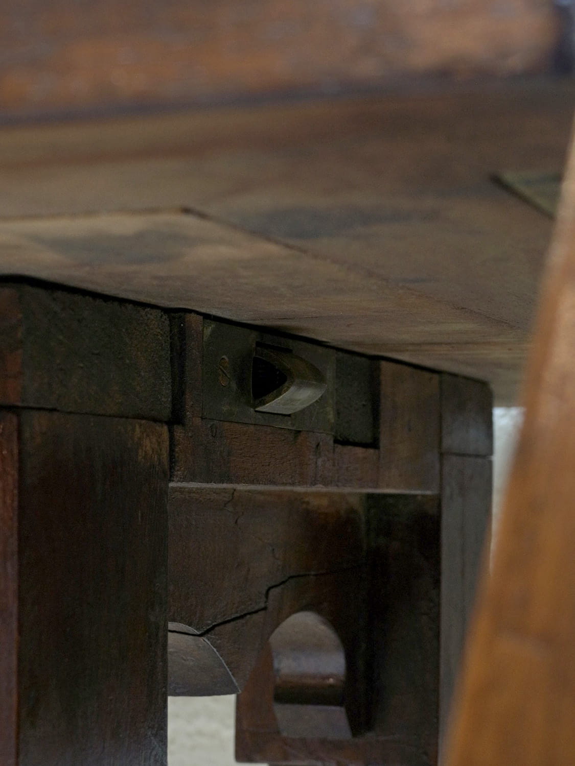 推定1930年代、フランス製のビストロテーブルです。こちらの家具は左右12cmほど広がる面白い作りで、閉じているときはドアラッチで留まっています。閉じている時のテーブルサイズは1000mmで作業台やデスクとしてもご使用いただけます。幕板がないシンプルなデザインなのでアーム付のチェアもあわせることができます。その他ビストロテーブルはこちらから。