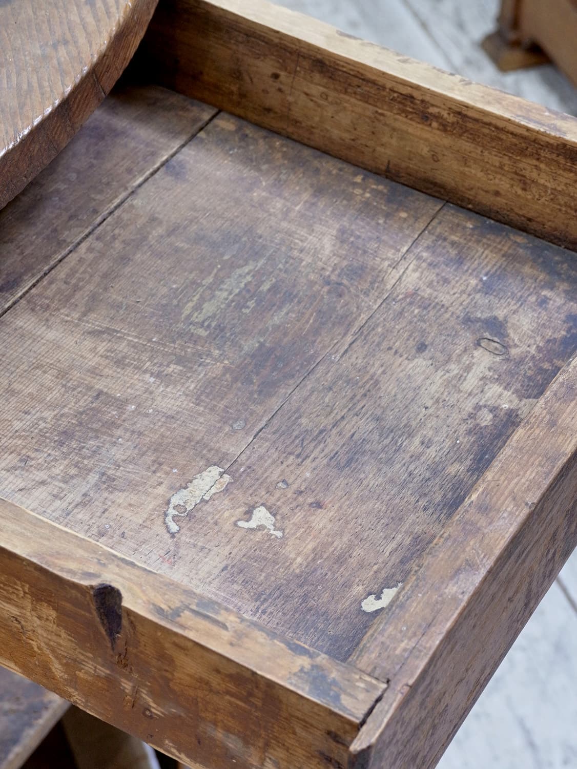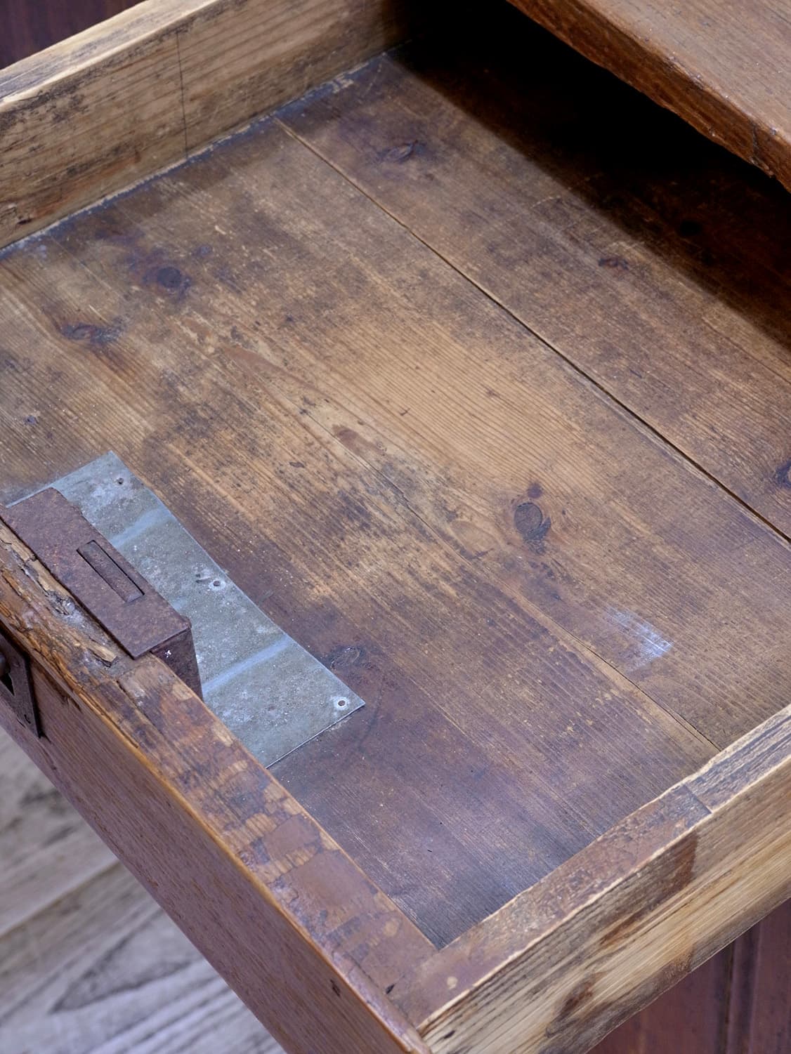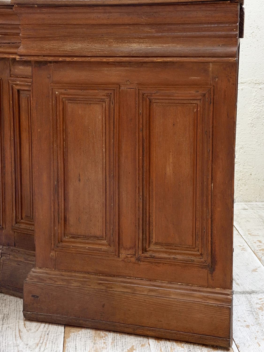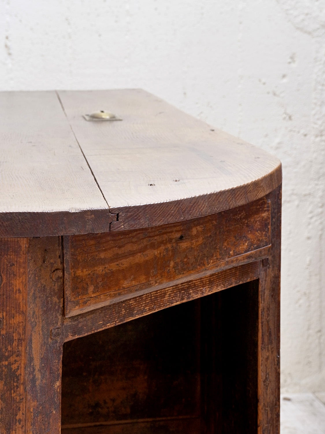推定1910年代、フランス製のアンティークショップカウンターです。当時引き出しにコインを入れていたようで、天板から直接引き出しにコインを入れることができる作りです。扉内の下やシェルフ部分の下は空洞です(床が見える)。置く場所が限られる家具ですが、ピッタリと収まるととても映える家具でお店の印象をアップしてくれること間違いなしです。その他カウンターはこちらから。