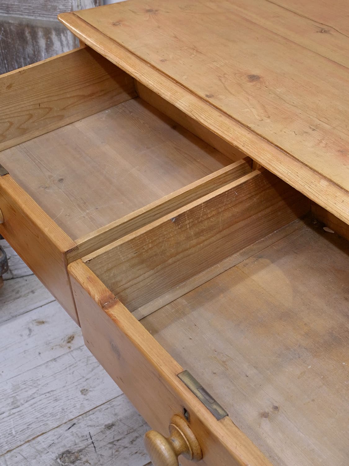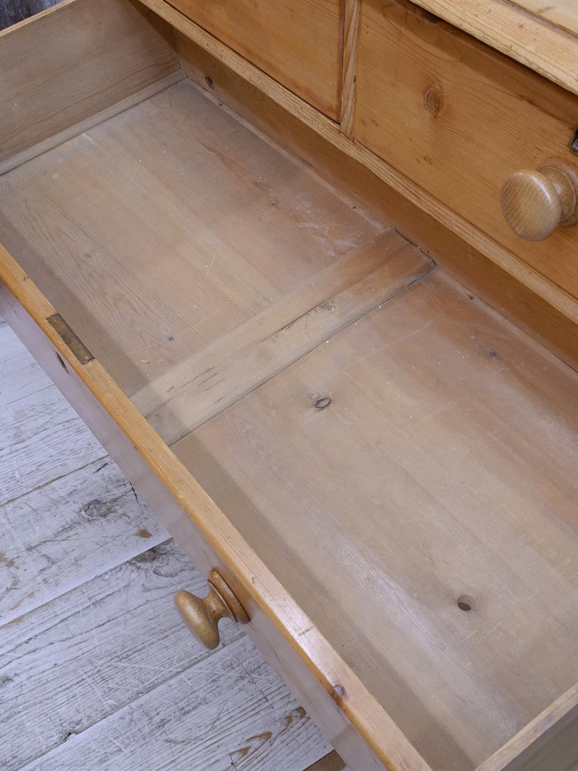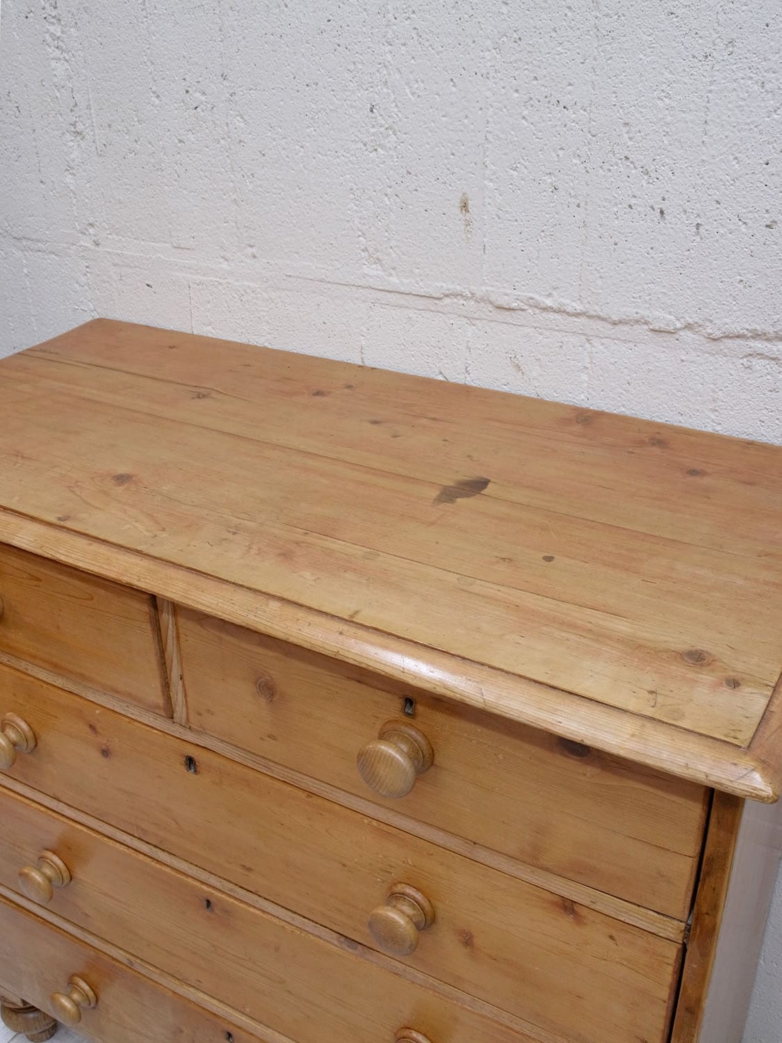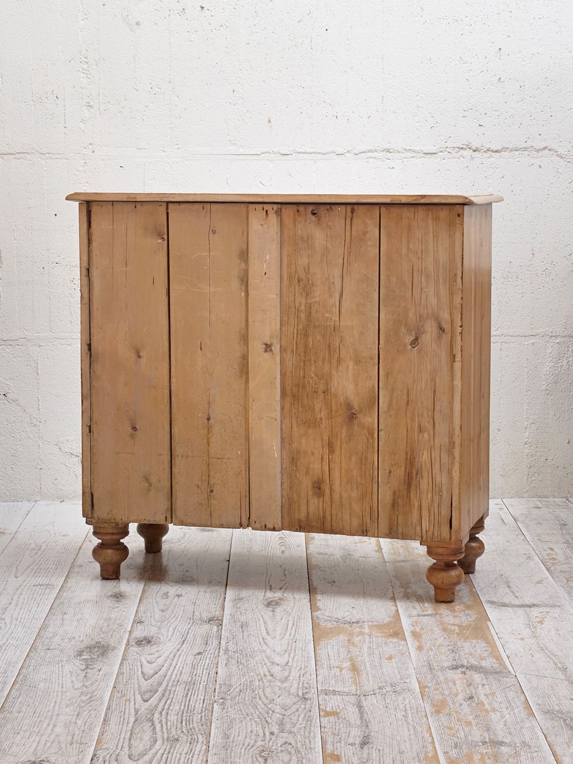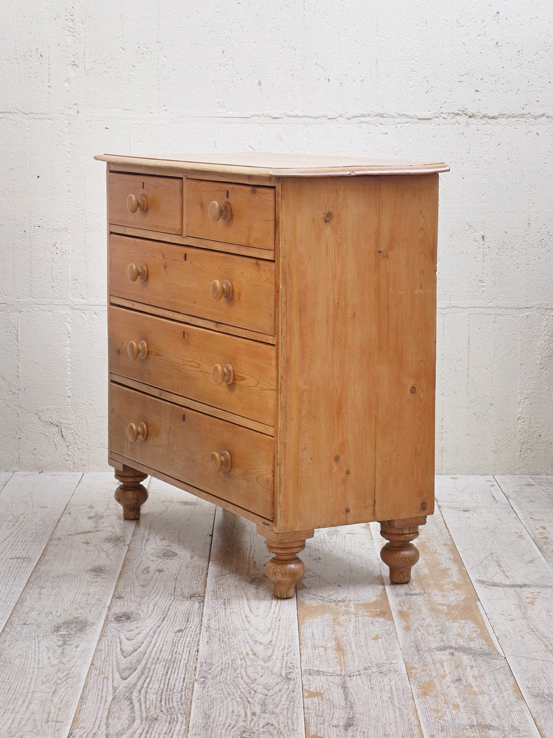 推定1930年代、イギリス製のアンティークパインチェストです。パイン材特有のフシが少なく、木目もきれいです。4段チェストでも収納量が豊富です。ベッドルームはもちろん、その他さまざまなお部屋でご使用いただけます。通常丸っこい脚が付いていることが多いですが、こちらはヴィクトリアンレッグデザインの脚でイギリスの伝統的なデザインです。その他パインチェスト一覧はこちらから。