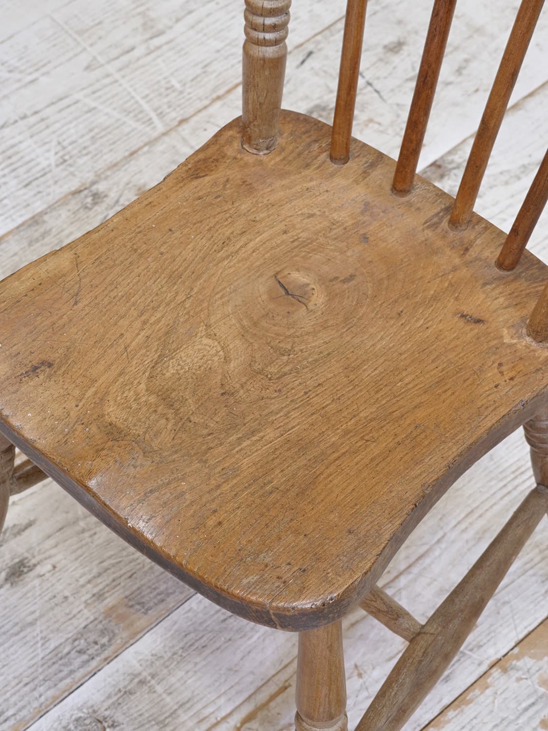 推定1930年代、イギリス製のキッチンチェアです。キッチンチェアとは文字通りキッチンで使う作業椅子のことでイギリスの農家(ファームハウス)や一般家庭で使われていました。デザインが近いものが複数あることも多く、揃ったデザインに統一できるため日本ではダイニングチェアとして人気があります。座面までの高さは43.5cmです。その他キッチンチェアの一覧はこちらから。