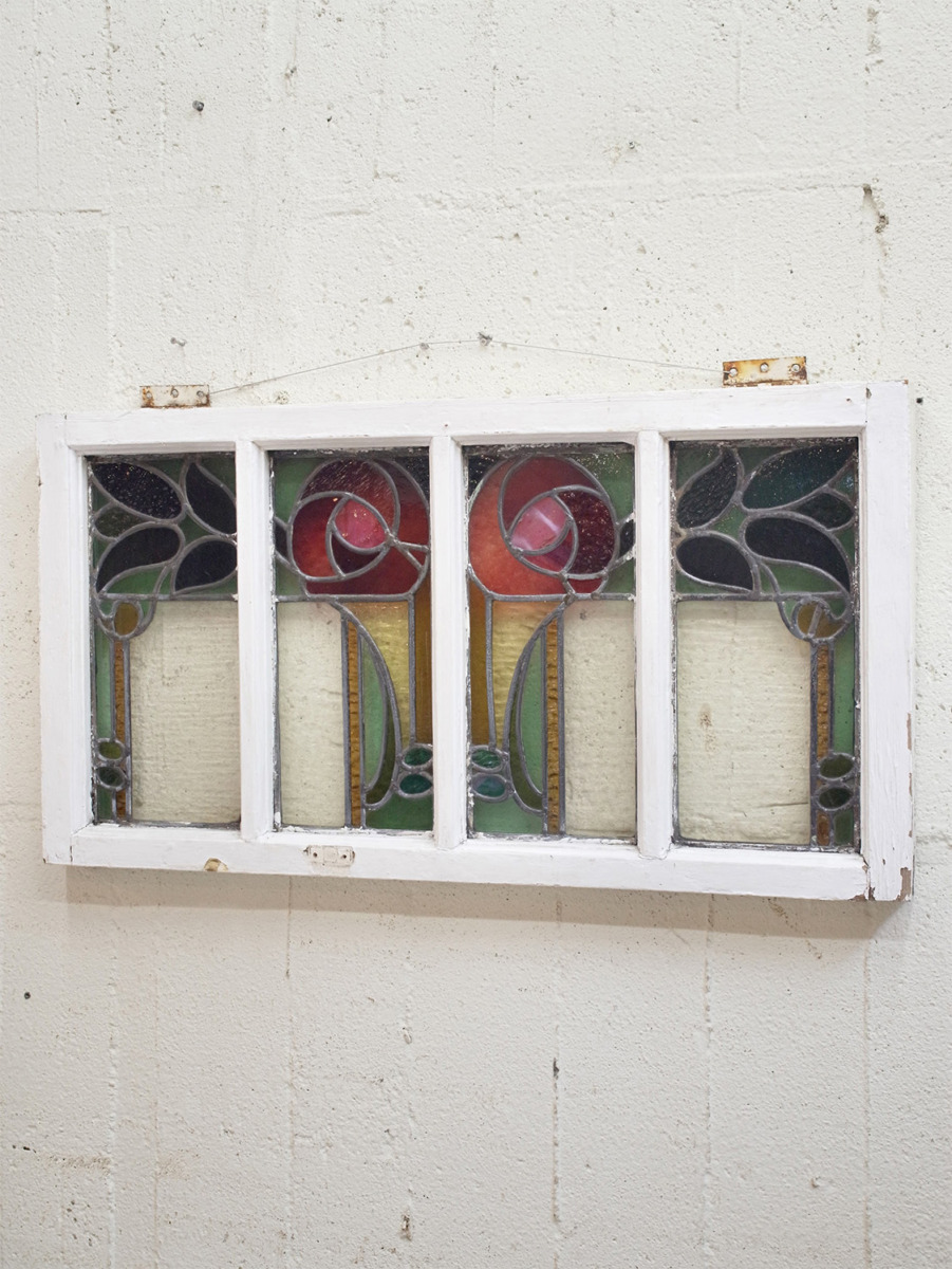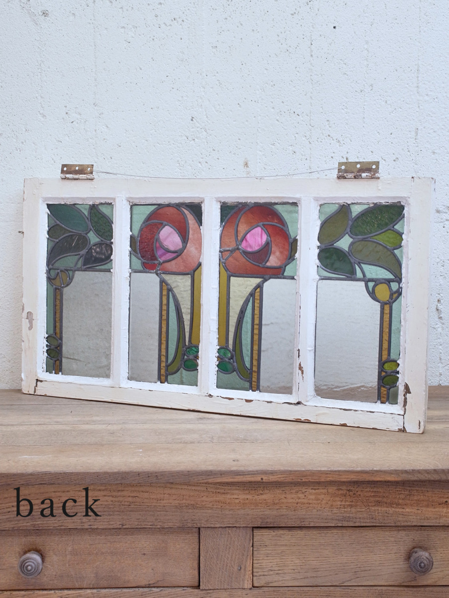 光の差し込みによって色が変わるステンドガラス。新築やリフォーム時にドアや窓などの建具にはめ込んだり、窓辺に立てかけて差し込む光を楽しむなど、自由な発想でお使いいただけます。花と葉がデザインで様々なタイプのガラスが取り入れられています。よく見れば見るほどきれいです。こちらのステンドは同じデザインのものがもう一枚あります。その他のステンドガラス一覧はこちらから。