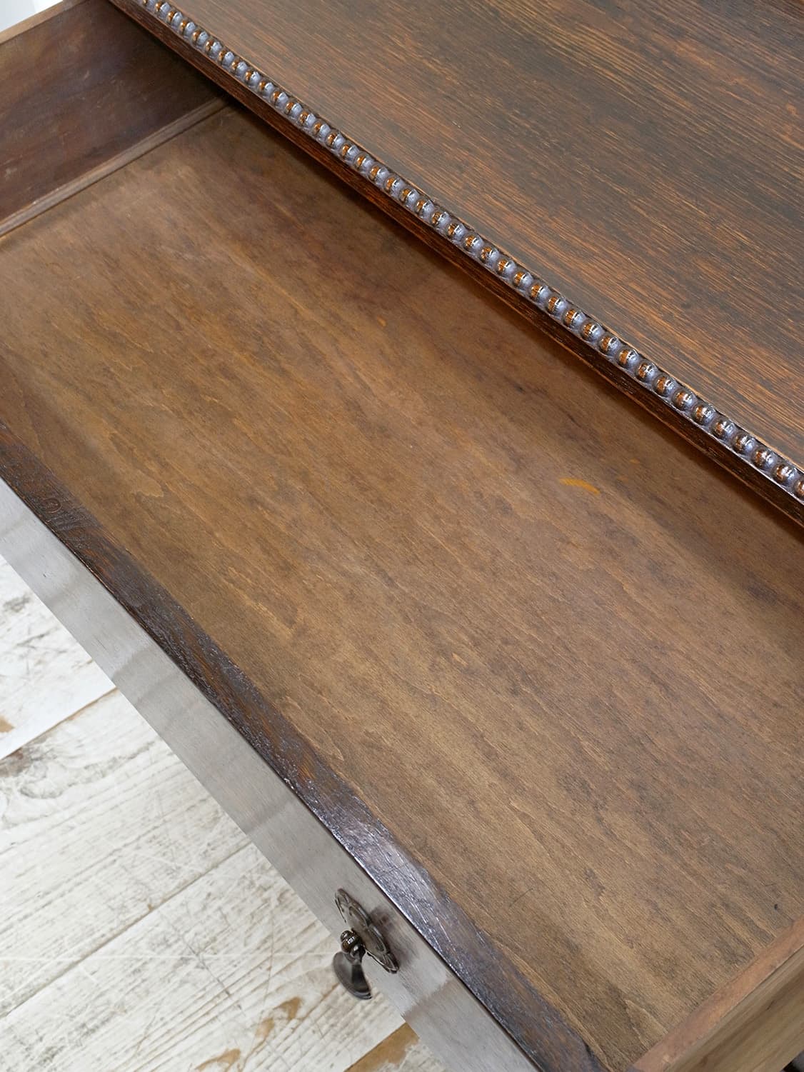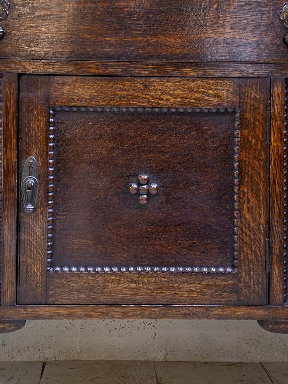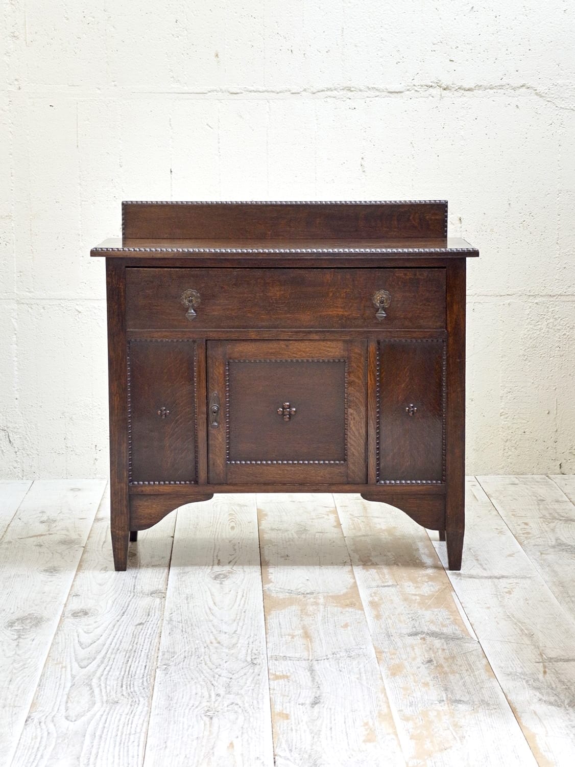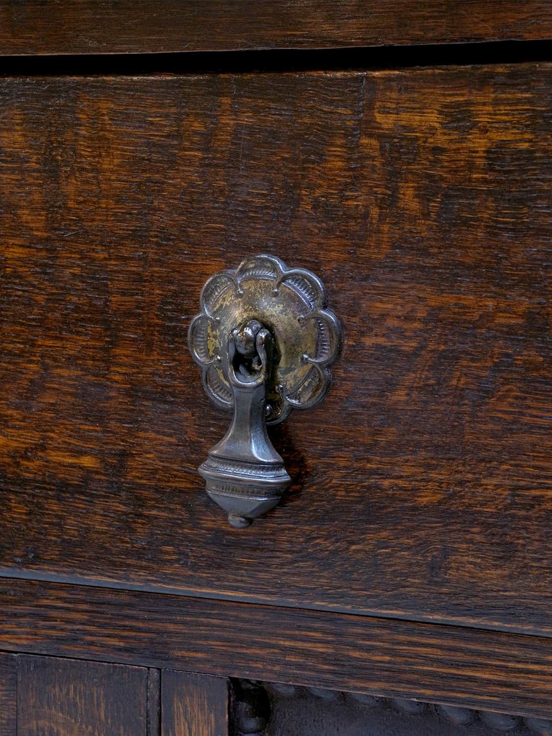 推定1930年代、イギリス製アンティークオークキャビネットです。コンパクトなサイズ感で収納とディスプレイ両方を兼ね備えた家具でリビングなどでサイドボードのようにご使用いただけます。天板までの高さは79cm。引き出し内寸 W743 D335 H130mm。扉内寸 W830 D340 H353mm。その他、オークキャビネットはこちらから。