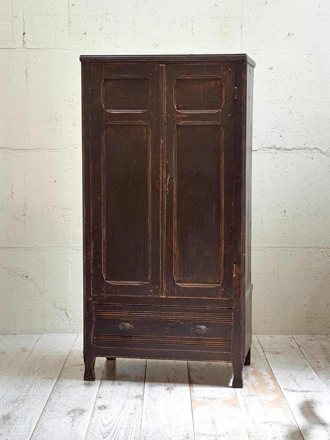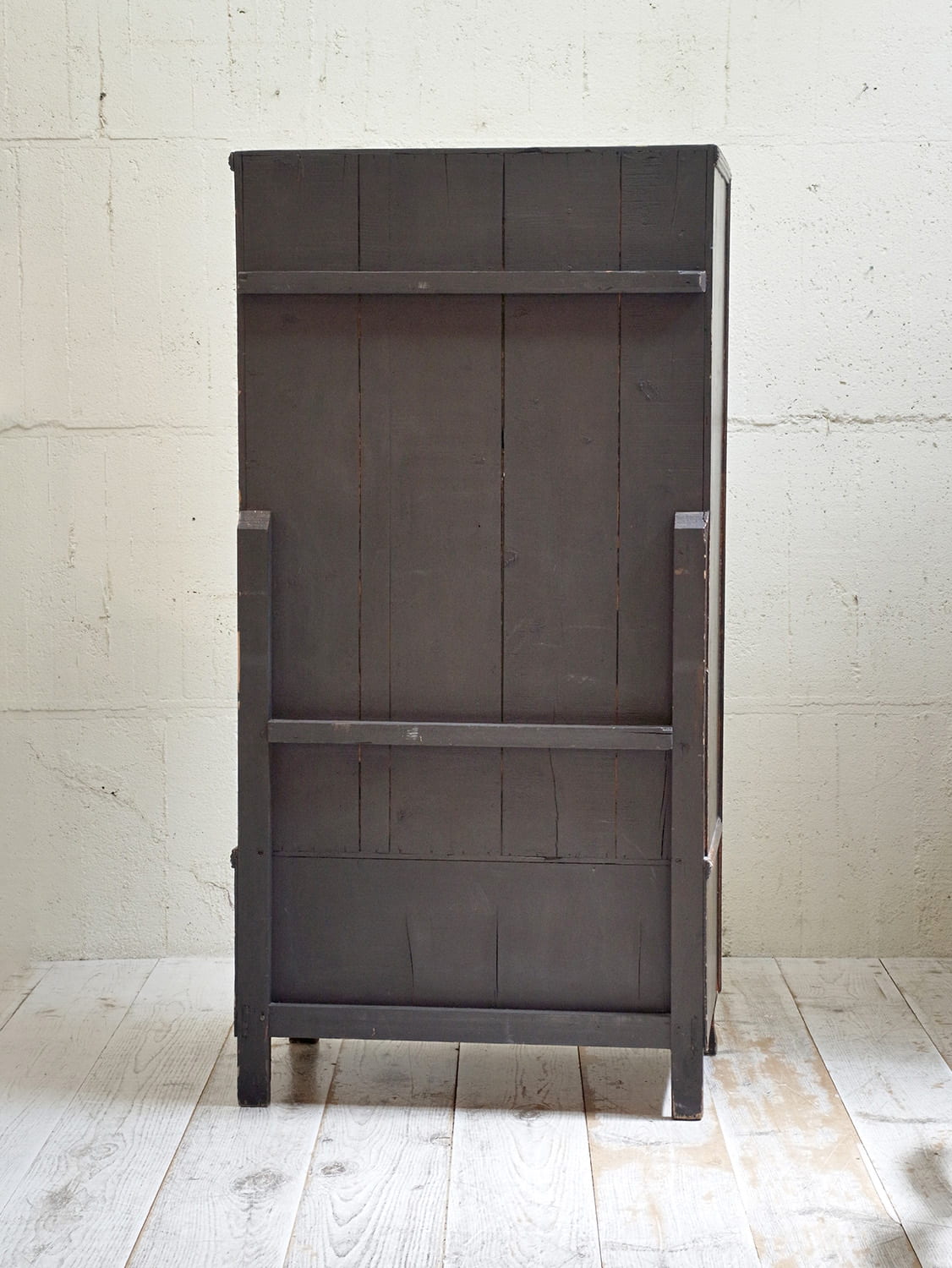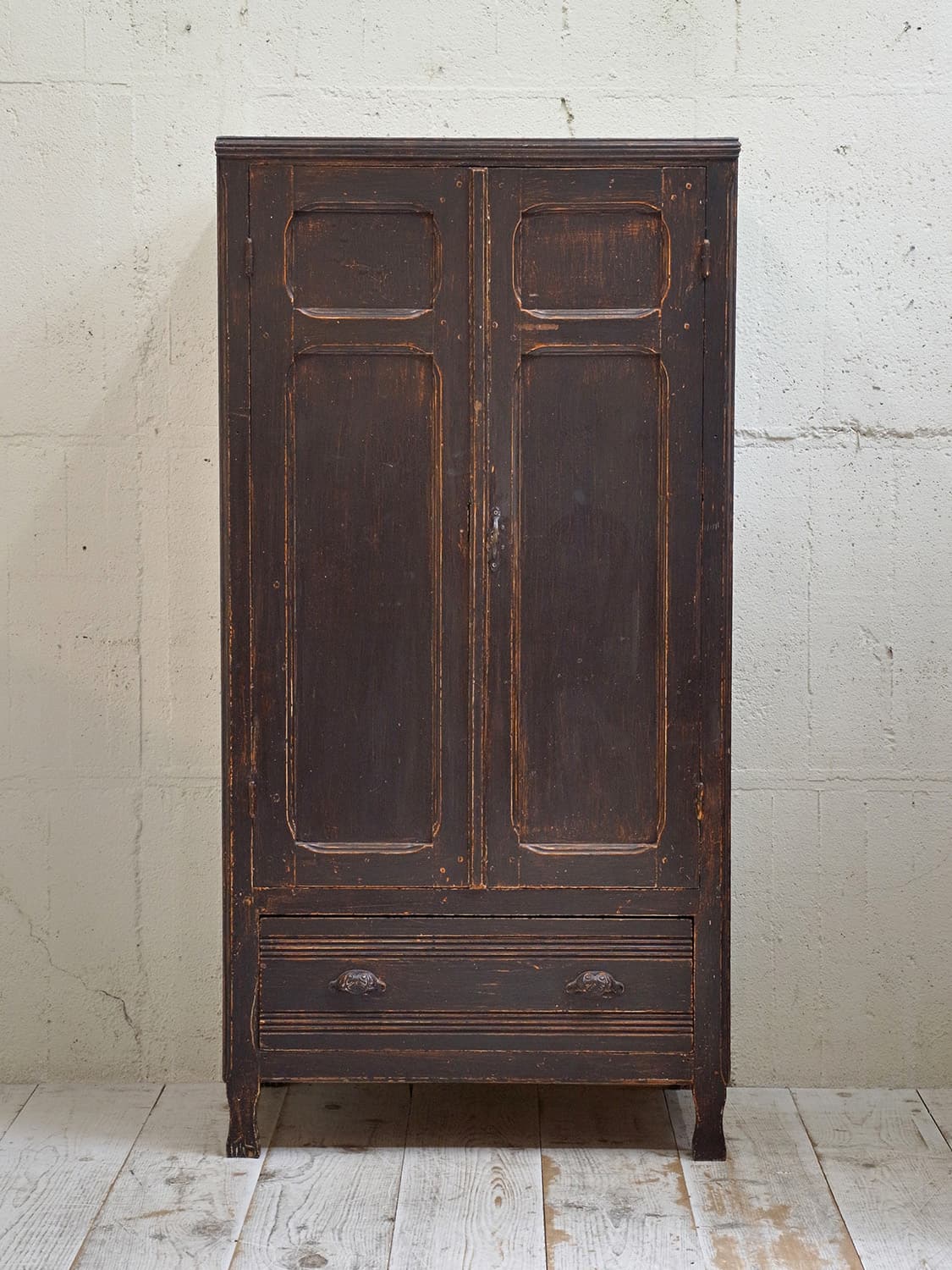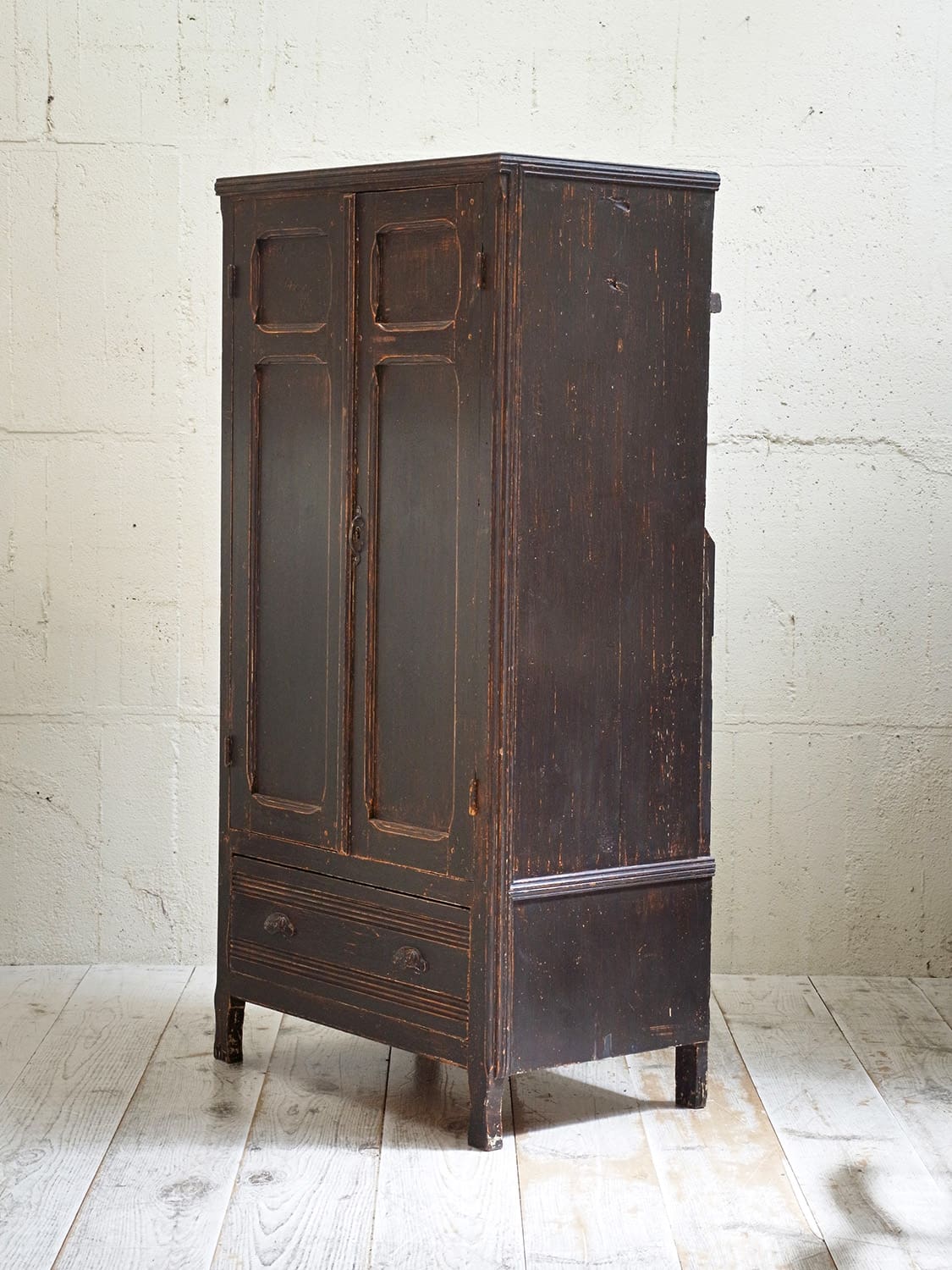 推定1930年代、フランス製のアンティークパインペイントキャビネットです。表面はブラックペイントの下にオレンジカラーでペイントされており、所々オレンジカラーが見えて少し変わった表情の家具です。ブランケットやバスタオルなどの収納用や食器棚としてなど様々な用途でご使用いただけます。扉内寸 W780 D415 上からH366/H360/H372mm。その他ペイント家具に一覧はこちらから。