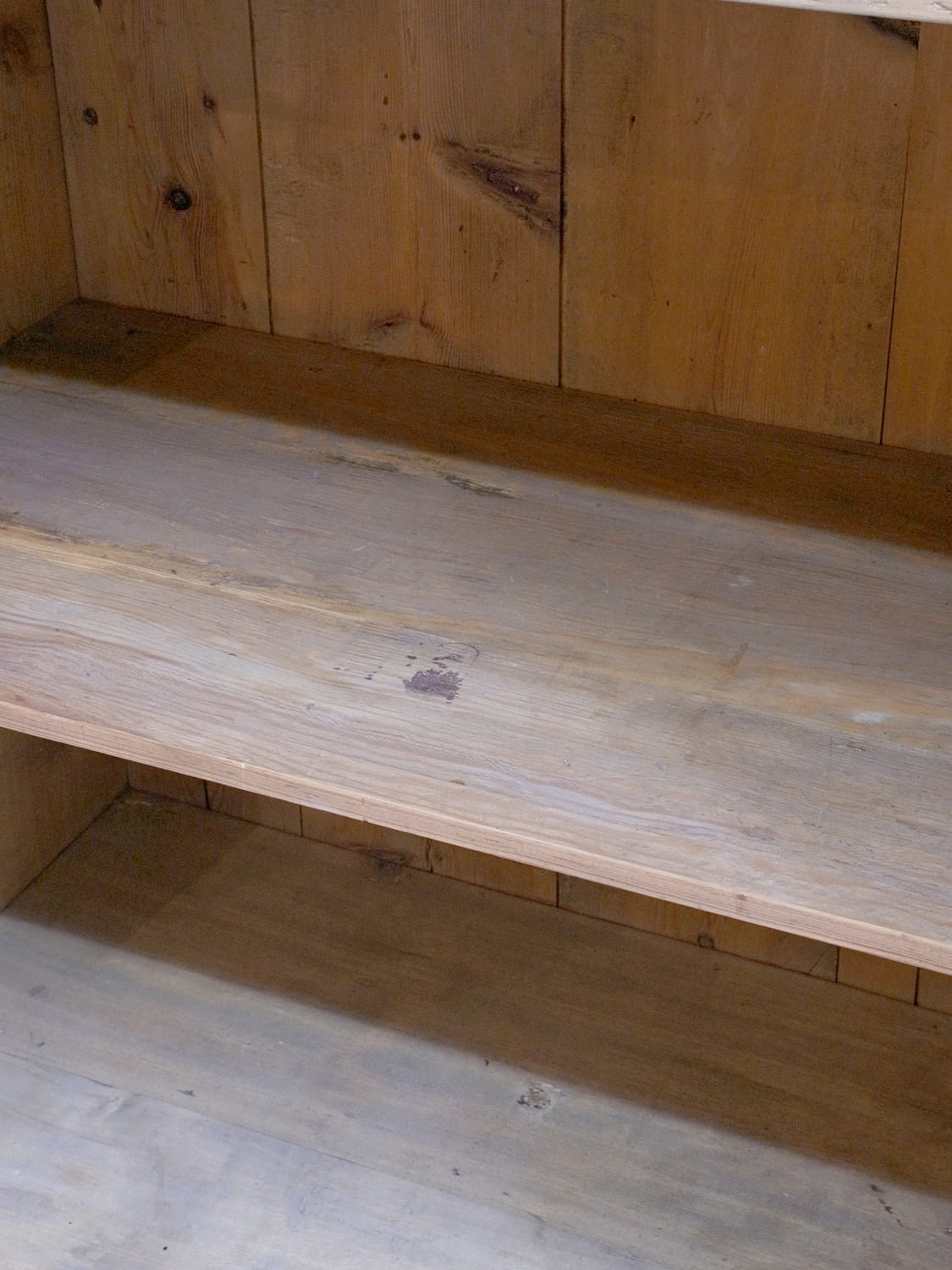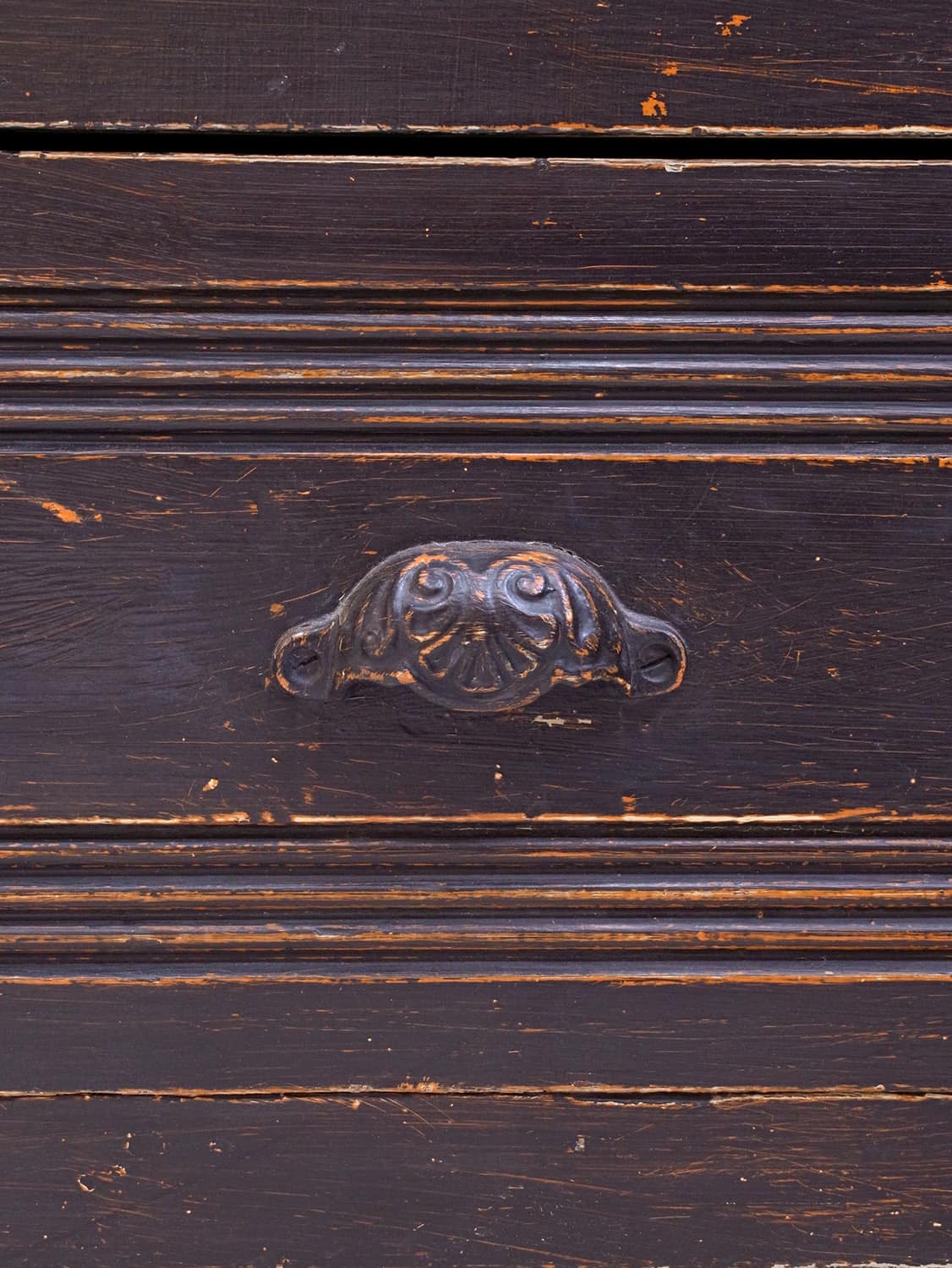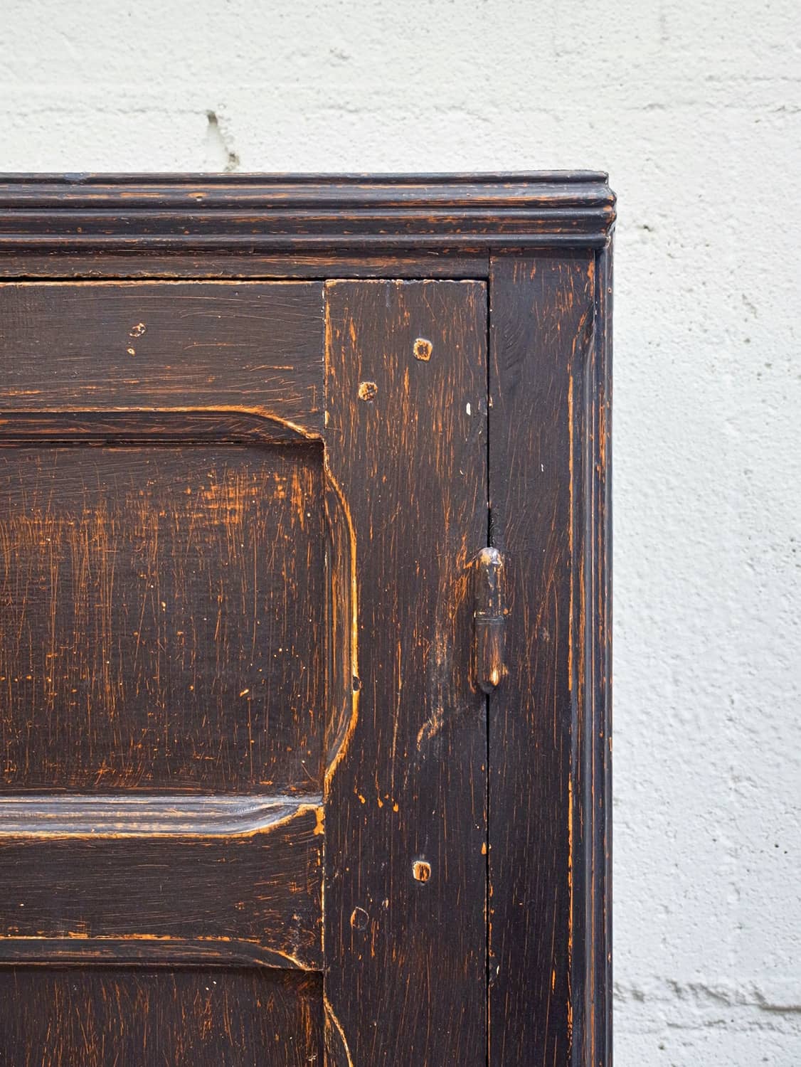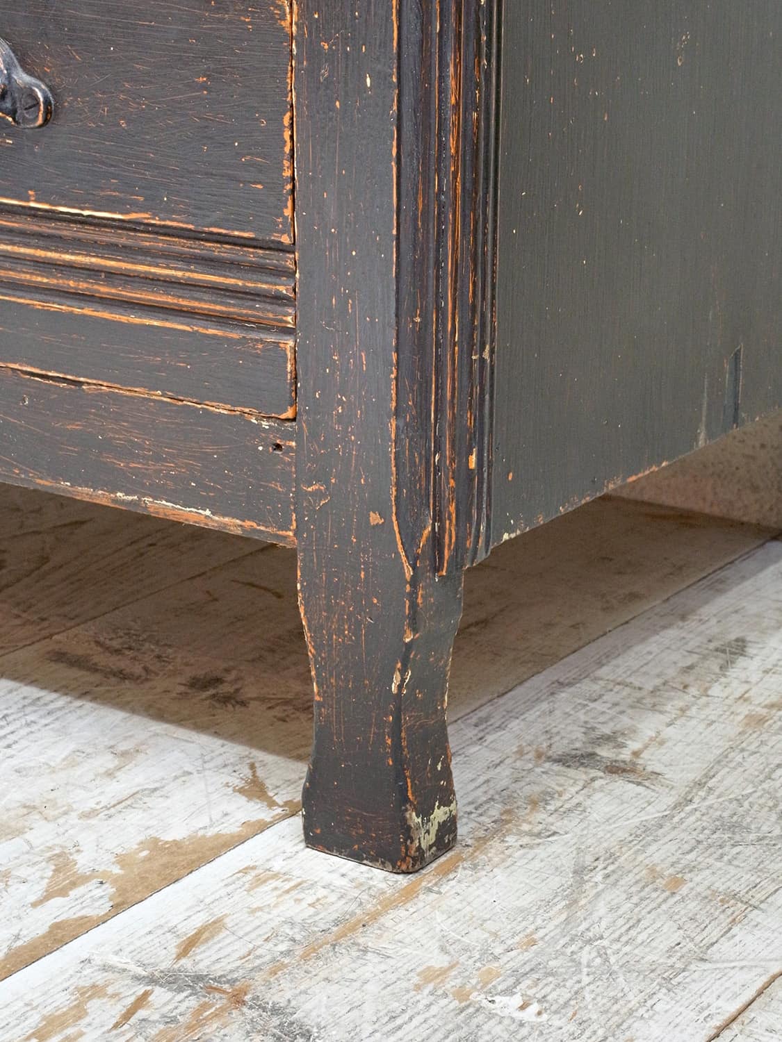 推定1930年代、フランス製のアンティークパインペイントキャビネットです。表面はブラックペイントの下にオレンジカラーでペイントされており、所々オレンジカラーが見えて少し変わった表情の家具です。ブランケットやバスタオルなどの収納用や食器棚としてなど様々な用途でご使用いただけます。扉内寸 W780 D415 上からH366/H360/H372mm。その他ペイント家具に一覧はこちらから。