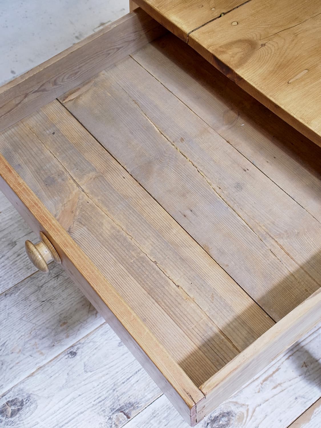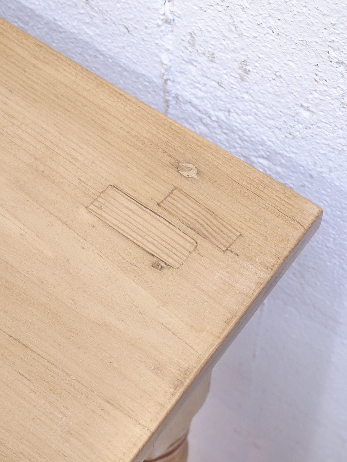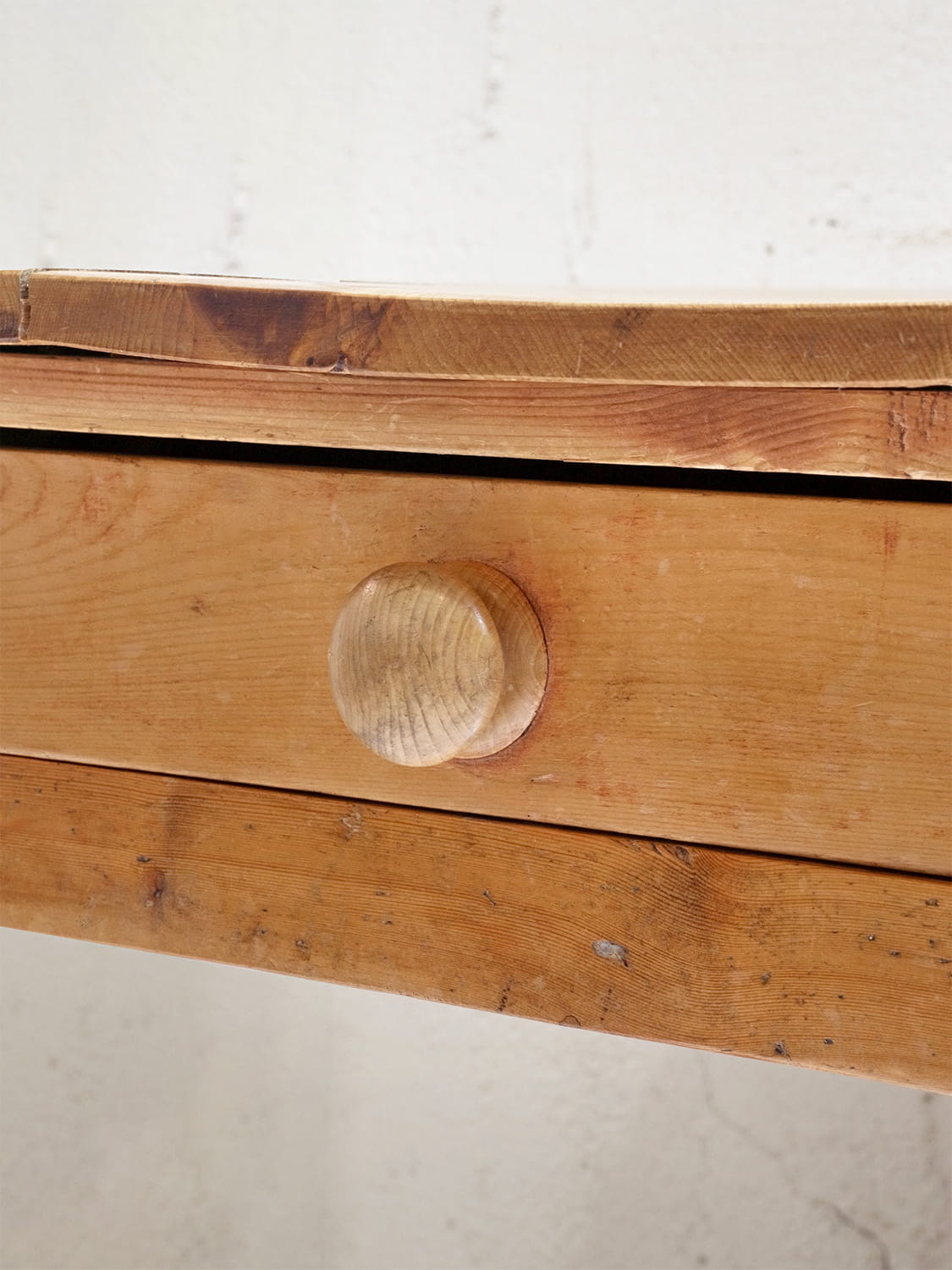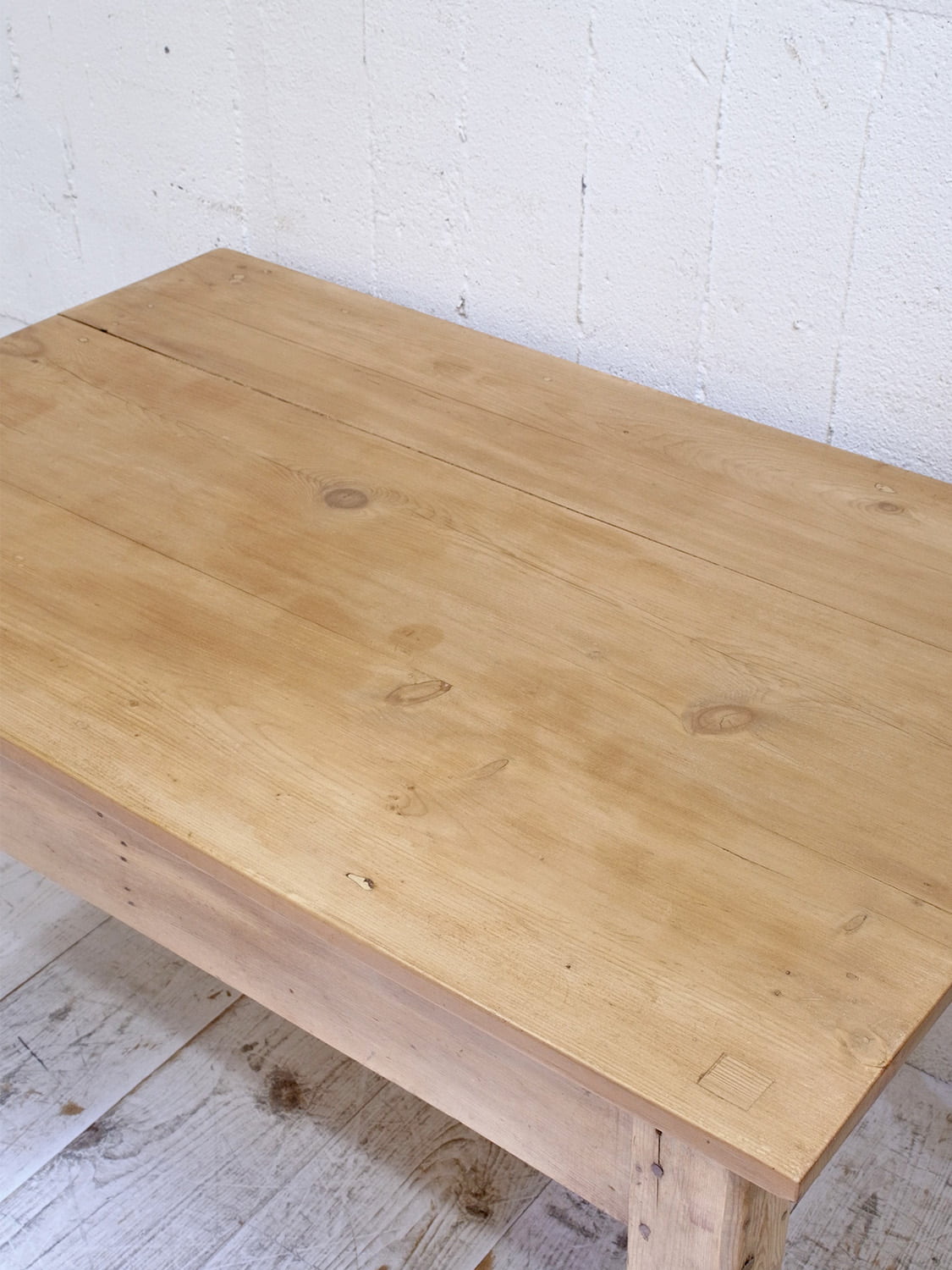 推定1920年代、イギリス製のアンティークパインテーブルです。イギリス王道のヴィクトリアンレッグが特徴的で、脚のデザインがとても美しいです。小ぶりながらお皿も問題なく置けるサイズ感で2人掛けのダイニングテーブルとしておすすめです。引き出しもカトラリーやランチョンマットなどの収納に最適です。引き出しサイズ W560 D450 H70mm。その他パインテーブルはこちらから。