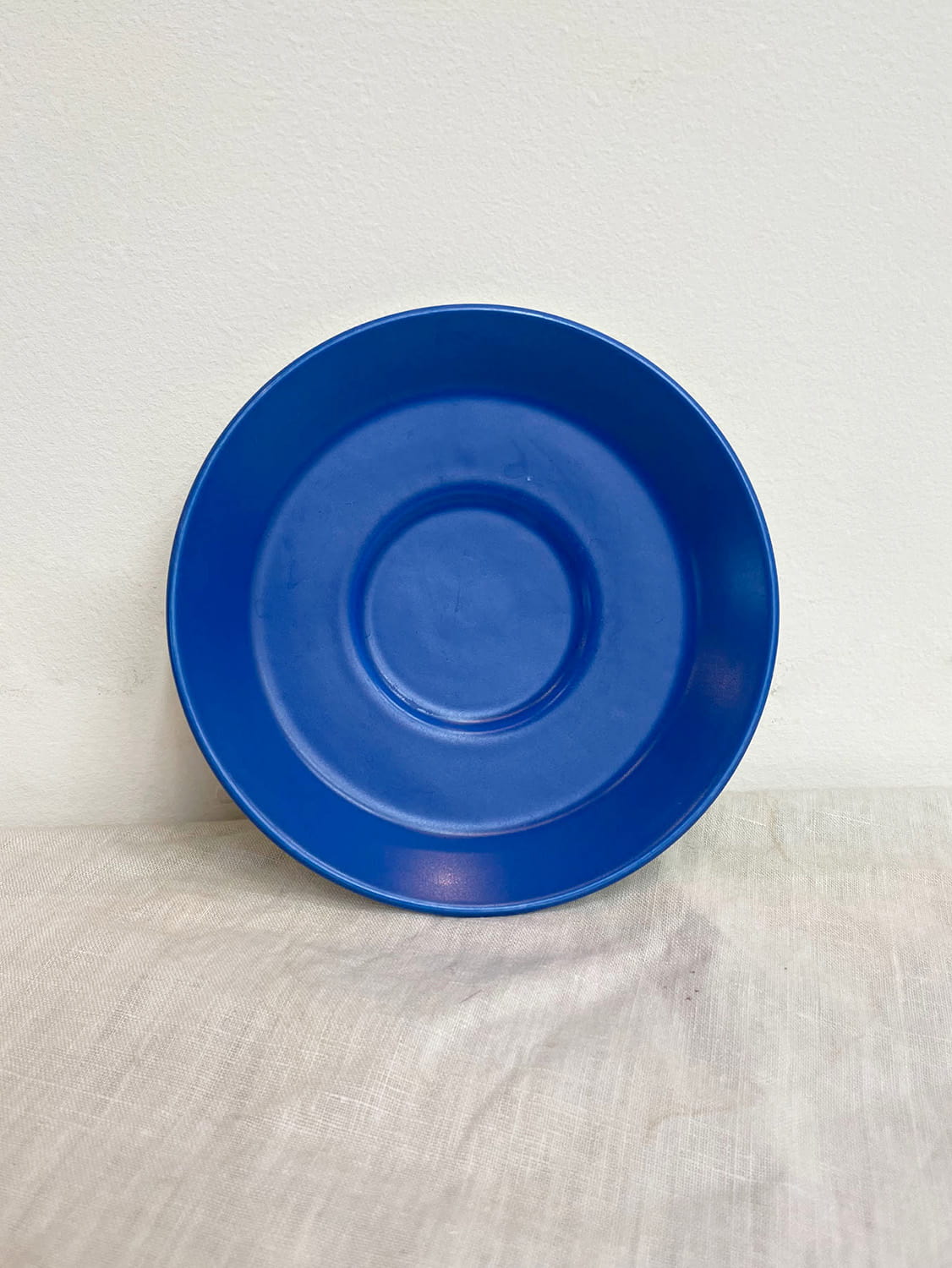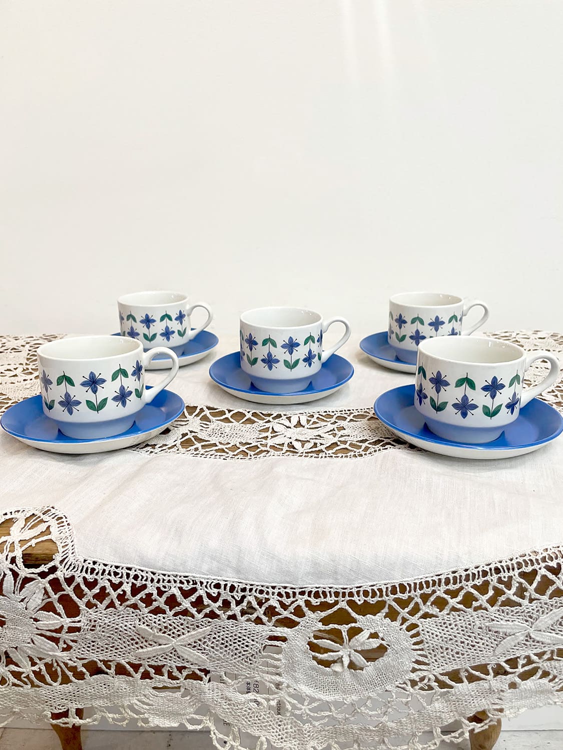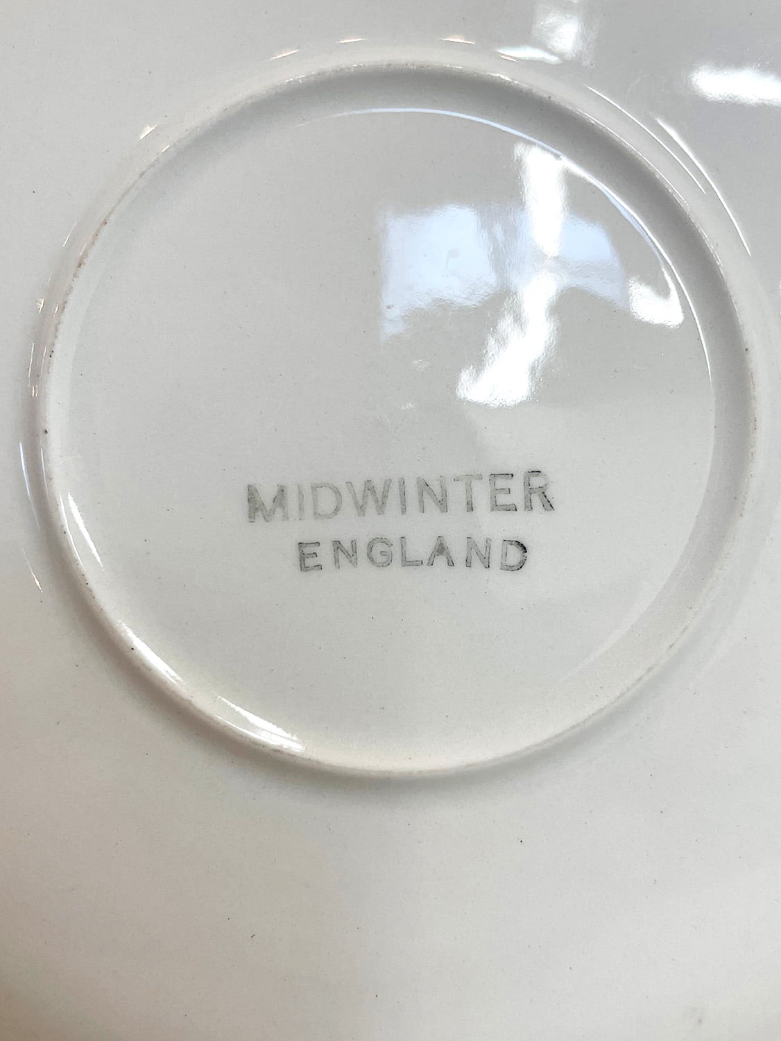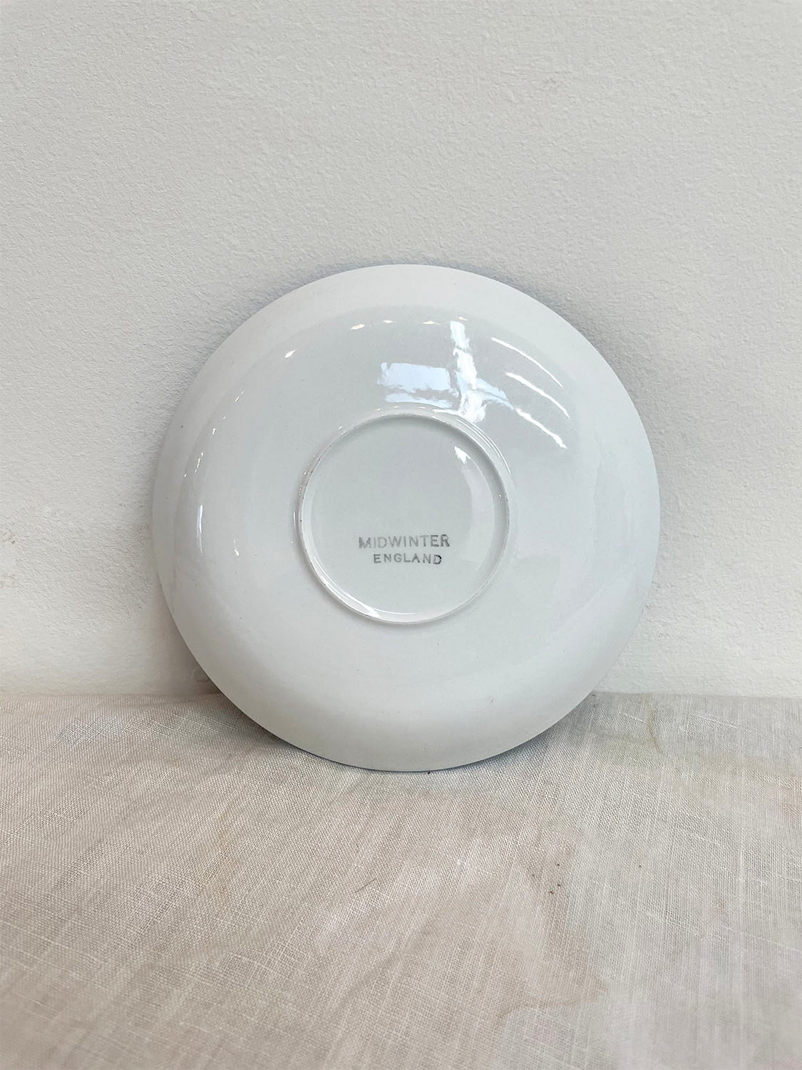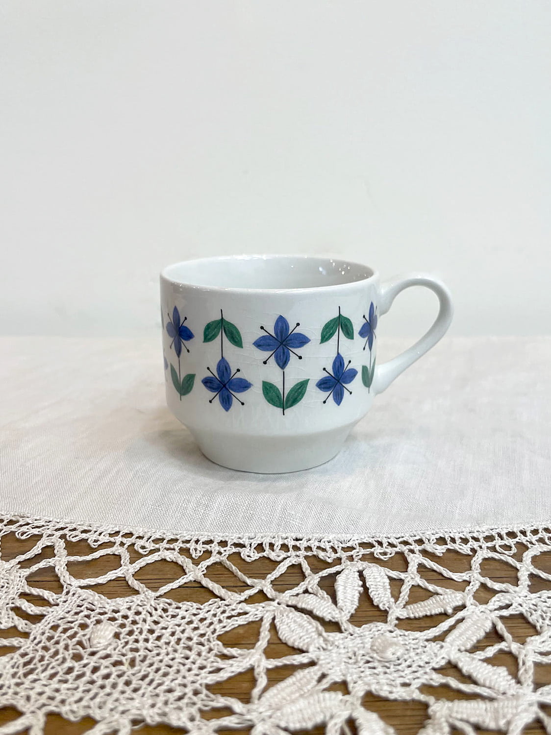 1910年、イギリスのストーク・オン・トレントで創業したMidwinter社のローゼル(Roselle)シリーズのカップアンドソーサーです。デザイナーのイヴ・ミッドウィンター(Eve Midwinter)によってデザインされた食器シリーズです。レトロな青い花柄がかわいいカップです。ソーサーは、マットなブルーに塗られています。デザートプレートと合わせてトリオでのご使用もおすすめです。塗られているのは表側のみで、裏側は白い一般的な陶磁器です。全体的に綺麗な状態ですが、細かな傷や汚れ等ある場合がありますので、ヴィンテージ品とご理解頂いた上でご購入をお願いいたします。その他ミッドウインター製品はこちらから。