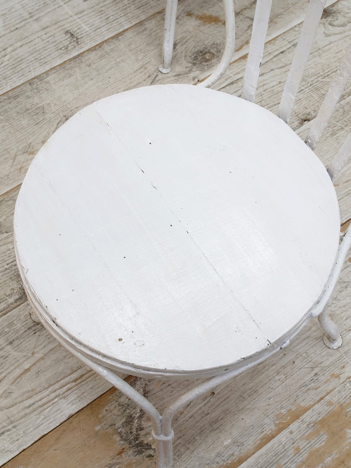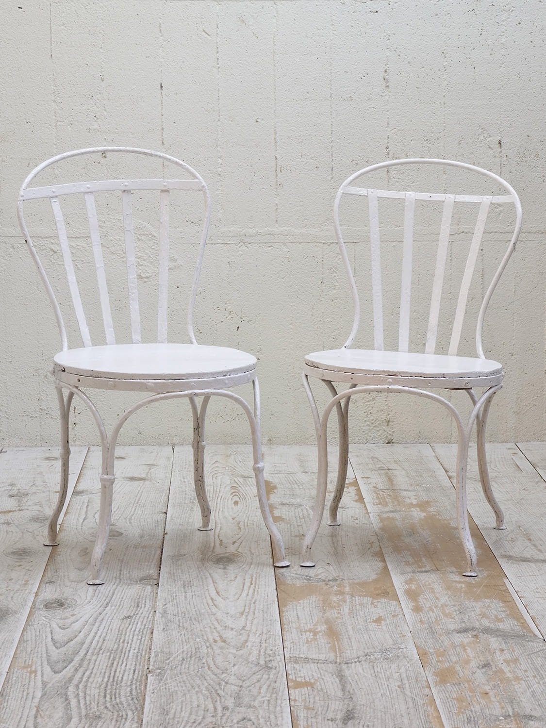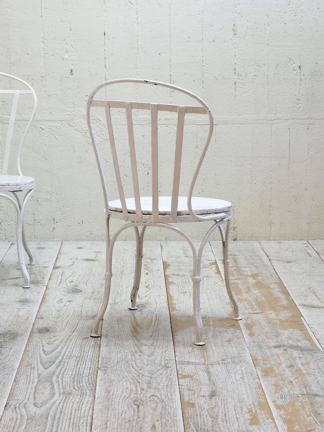 推定1950年代、ガーデンチェアです。アンティークならではのサビやペイントの剥がれが魅力的です。座面までの高さは40cmと弊社でお取り扱いしているチェアの中では低めです。。撮影は右(a)の椅子をしています。価格は1脚の値段です。その他ペイントチェアはこちらから。