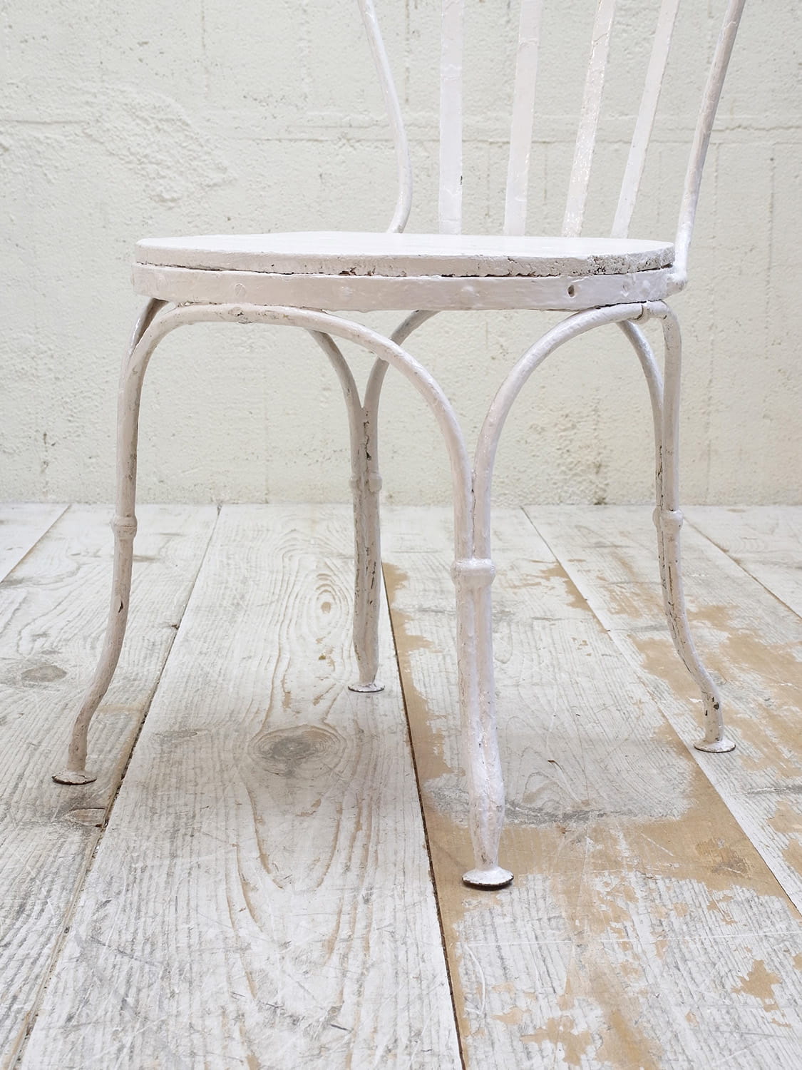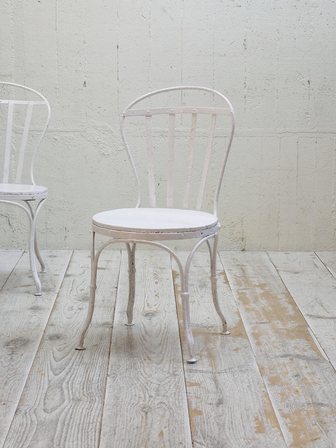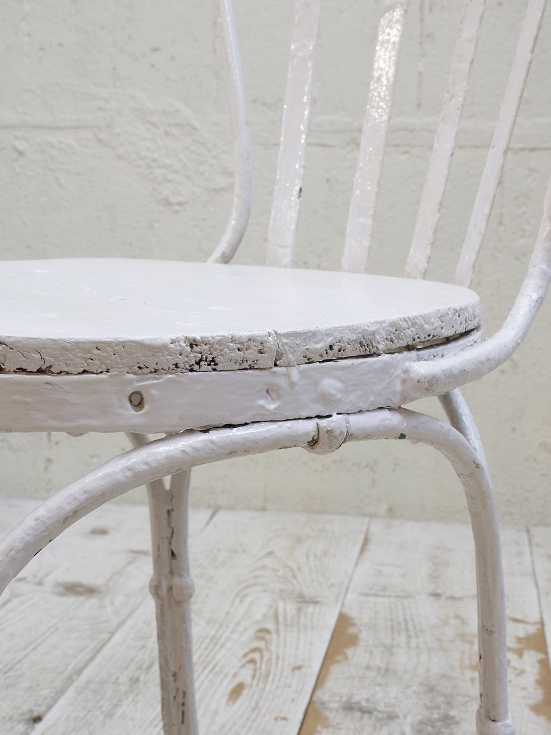 推定1950年代、ガーデンチェアです。アンティークならではのサビやペイントの剥がれが魅力的です。座面までの高さは40cmと弊社でお取り扱いしているチェアの中では低めです。。撮影は右(a)の椅子をしています。価格は1脚の値段です。その他ペイントチェアはこちらから。 b:SOLD