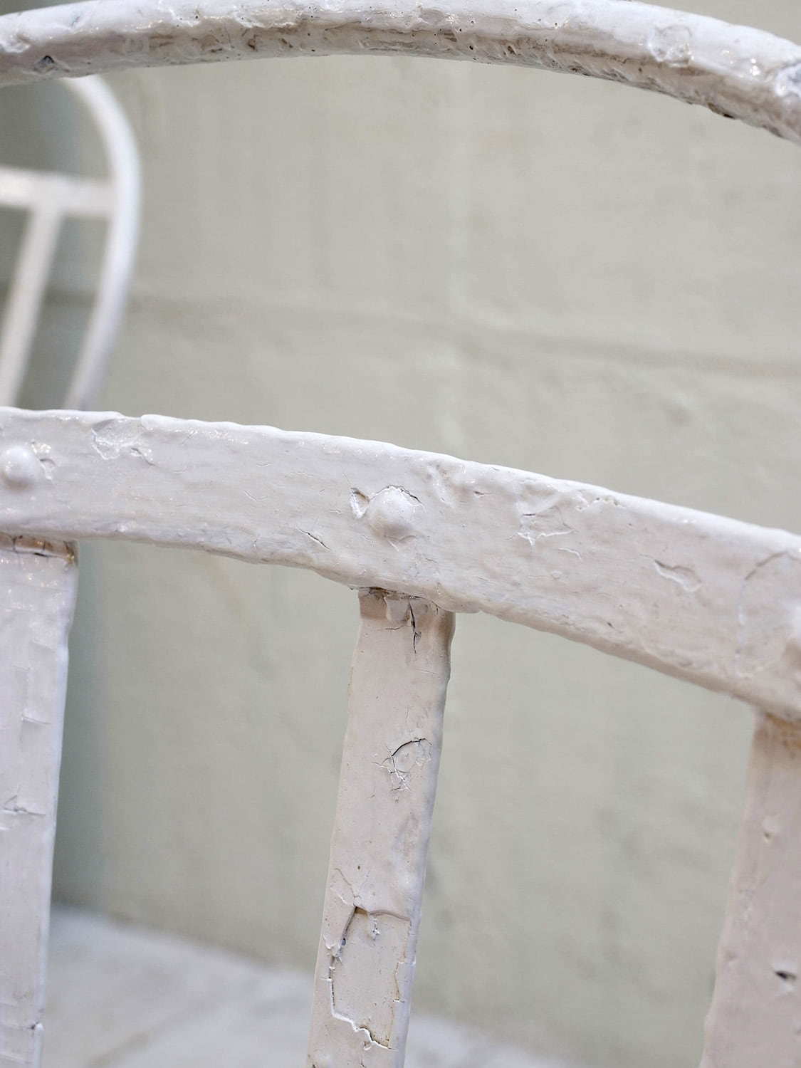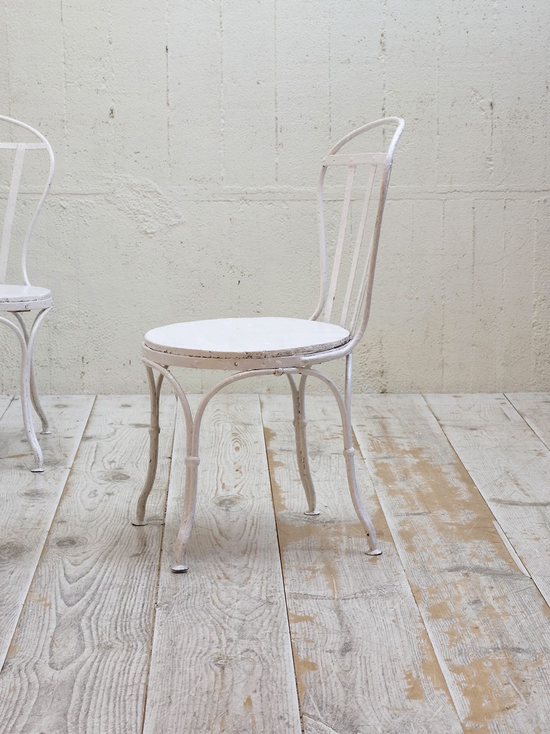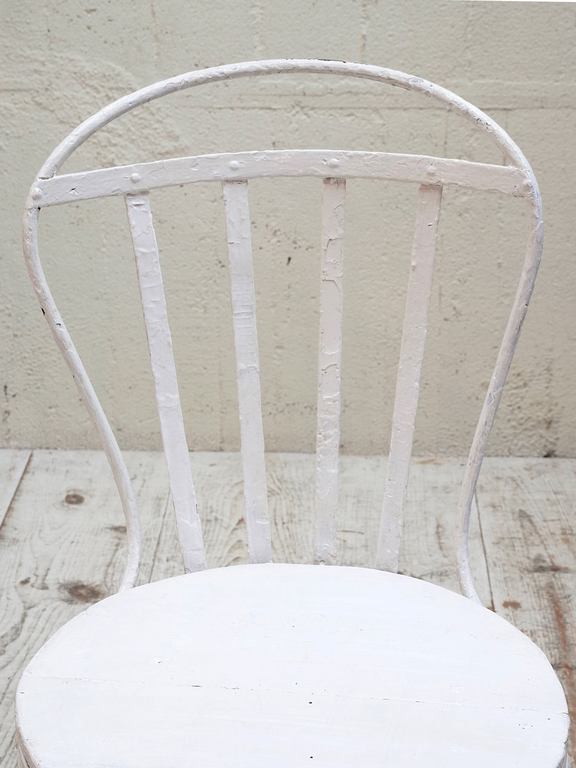 推定1950年代、ガーデンチェアです。アンティークならではのサビやペイントの剥がれが魅力的です。座面までの高さは40cmと弊社でお取り扱いしているチェアの中では低めです。。撮影は右(a)の椅子をしています。価格は1脚の値段です。その他ペイントチェアはこちらから。 b:SOLD