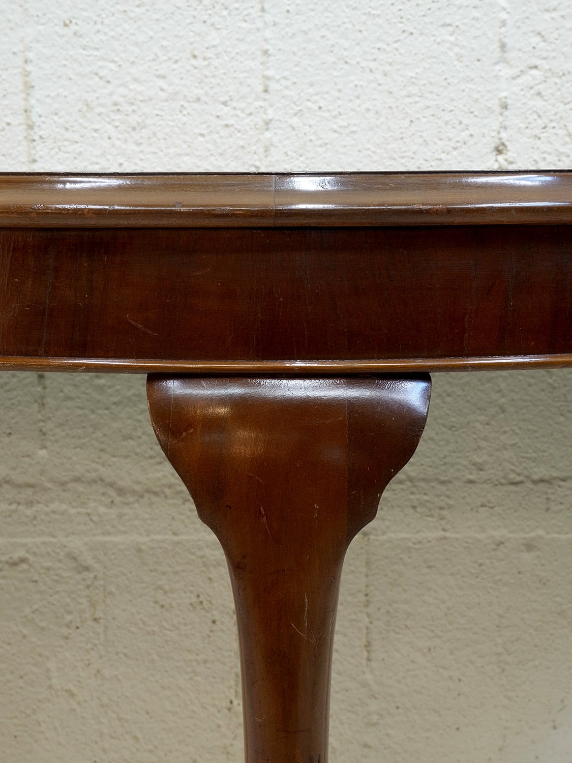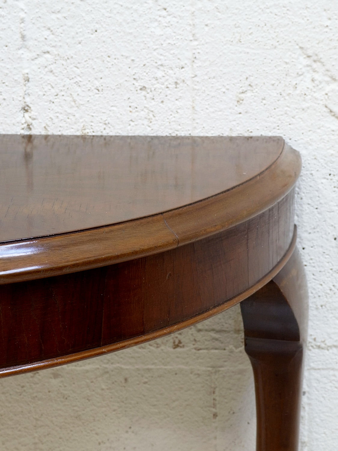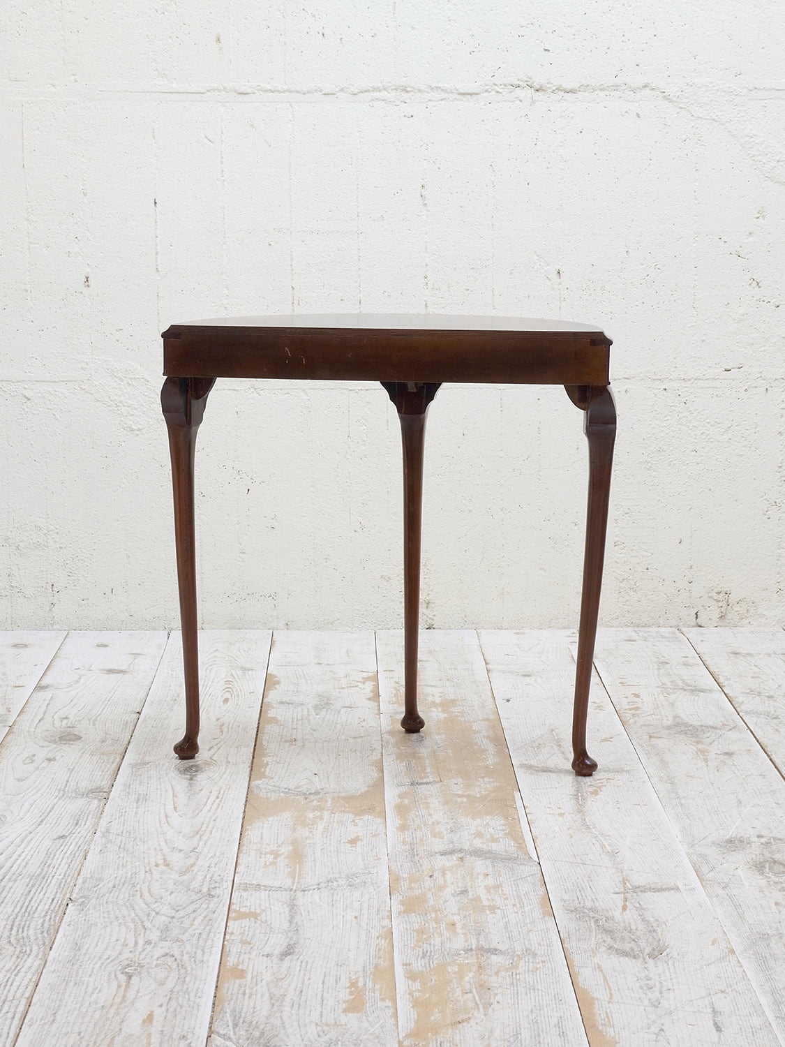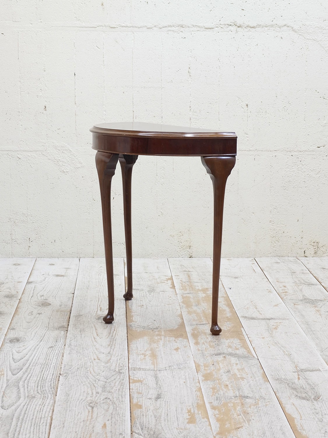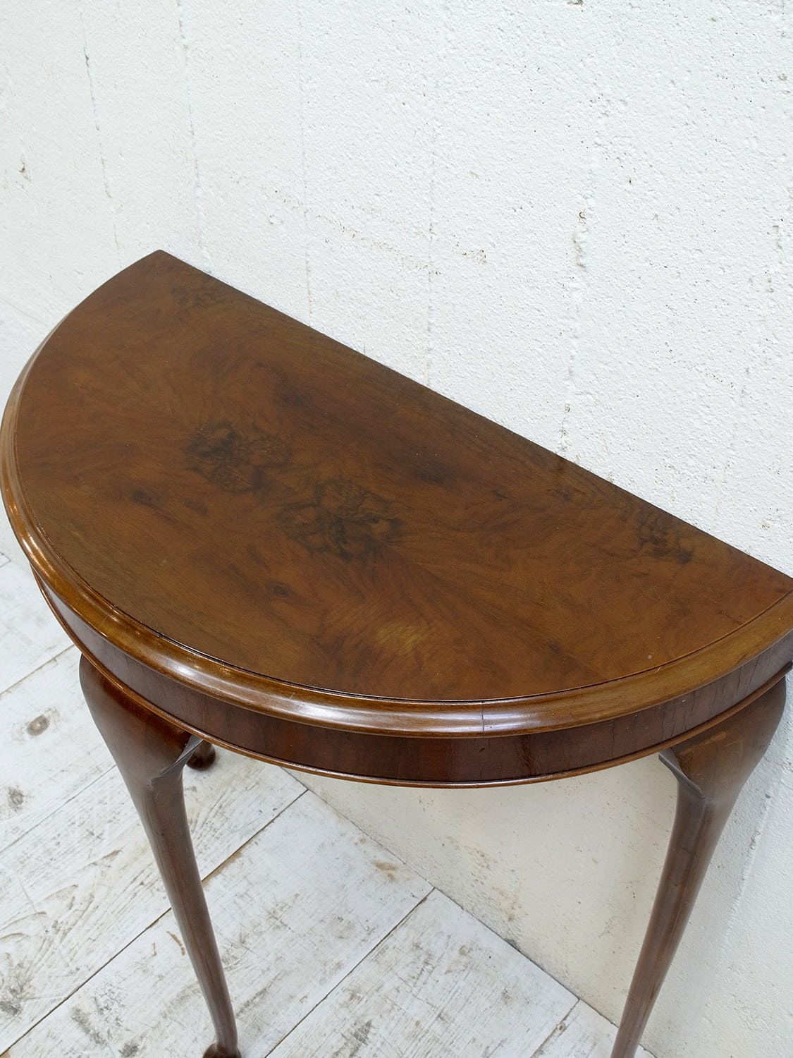 推定1930年代、イギリス製のアンティークウォルナットコンソールテーブルです。コンソールテーブルとは奥行が浅く壁に付けて使う、装飾用のテーブルのことです。もともとは肖像画や置き時計、花瓶などを乗せ壁の装飾を楽しむためのものでした。シンプルなデザインでお部屋に取り入れやすいです。その他コンソールテーブルの一覧はこちらから。