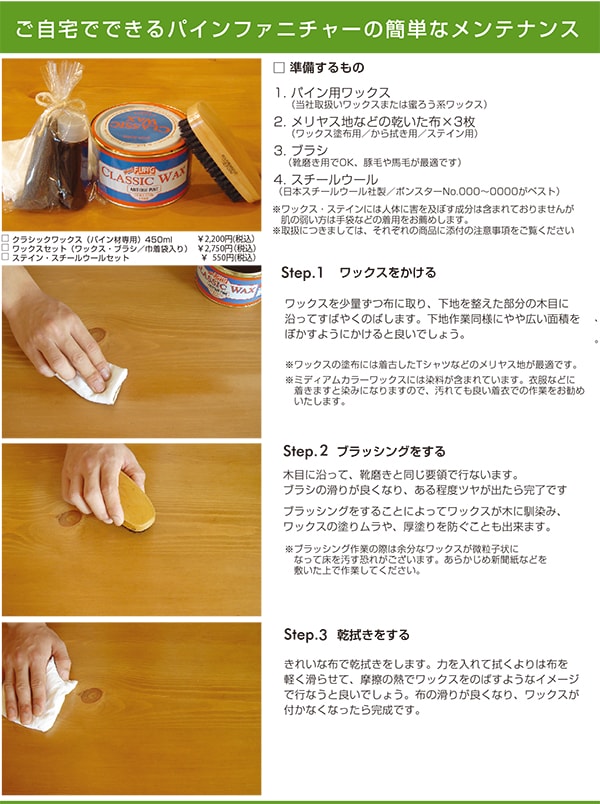 (左)クラシックワックス(アンティークパイン)は弊社オンラインショップでも購入が可能です。