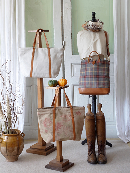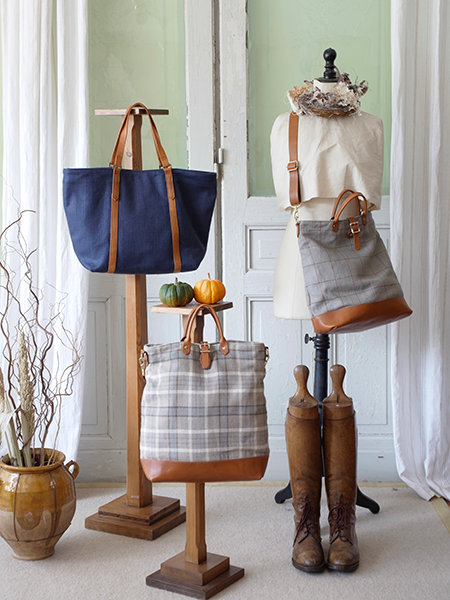 リネンファーストバッグ(左写真 右、左写真 真ん中、右)はショルダー部分の長さ調整が