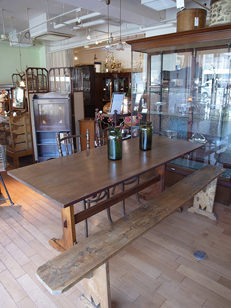 シンプルなデザインのダイニングテーブルとエルムのベンチも入荷しました。