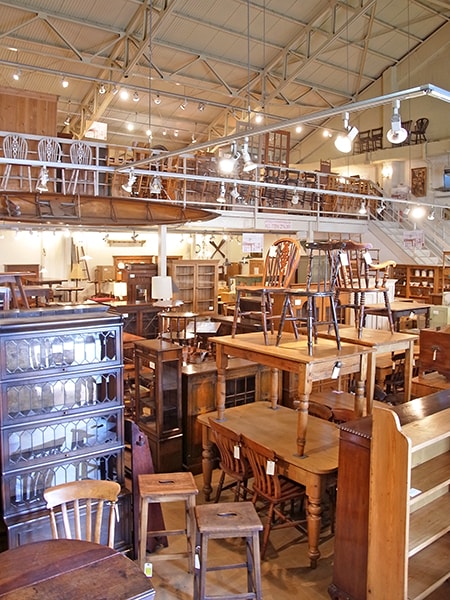 店内には所狭しと家具が積み上がっています。