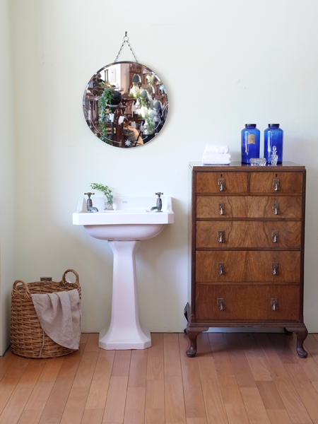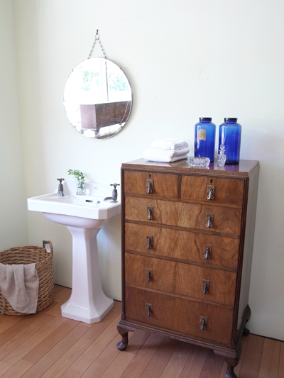 先日入荷したばかりのチェストとミラーでアールデコスタイルのサニタリー