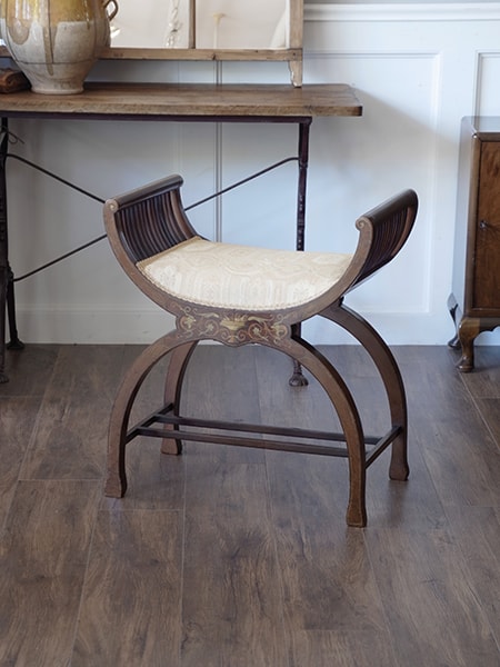 先日入荷したアイテムよりインレイ(象嵌加工)が施されている素敵な椅子3点をご紹介します。