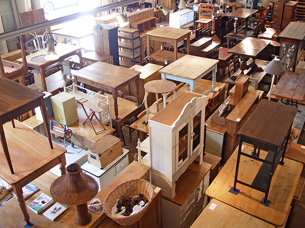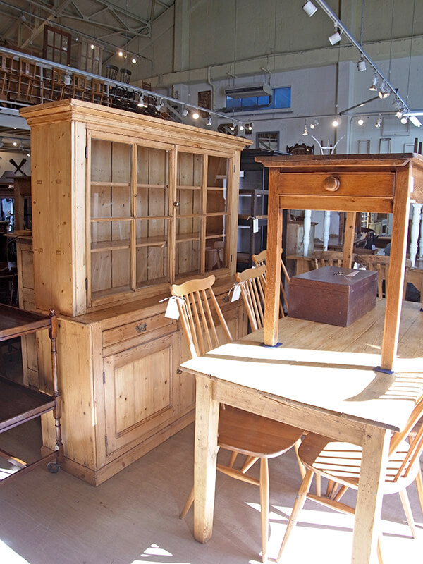 オーク材などのダークカラーの家具とアンティークパインを中心としたライトカラーの家具が約半分づつ、多種多様な家具が揃いました。