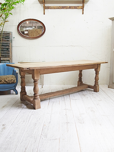 テーブルもチェアのどちらももともとはダークカラーだったものをストリップ(剥離)してオーク材の木目を生かし、ライトカラーで仕上げています。