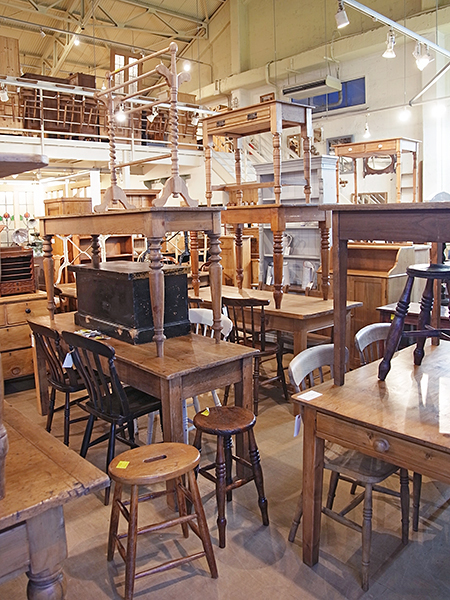 今回は、大小様々なサイズのオールドパインテーブルや、