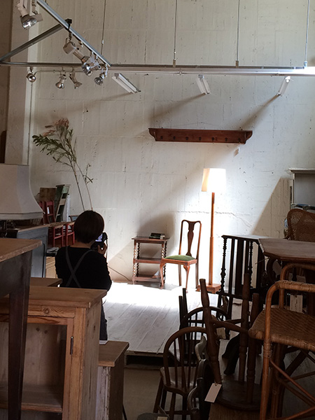 サイズ感がわかるように他の家具と組み合わせたり、小物をディスプレイしてホームページ上で詳細がわかるよう撮影を工夫している時もあります。